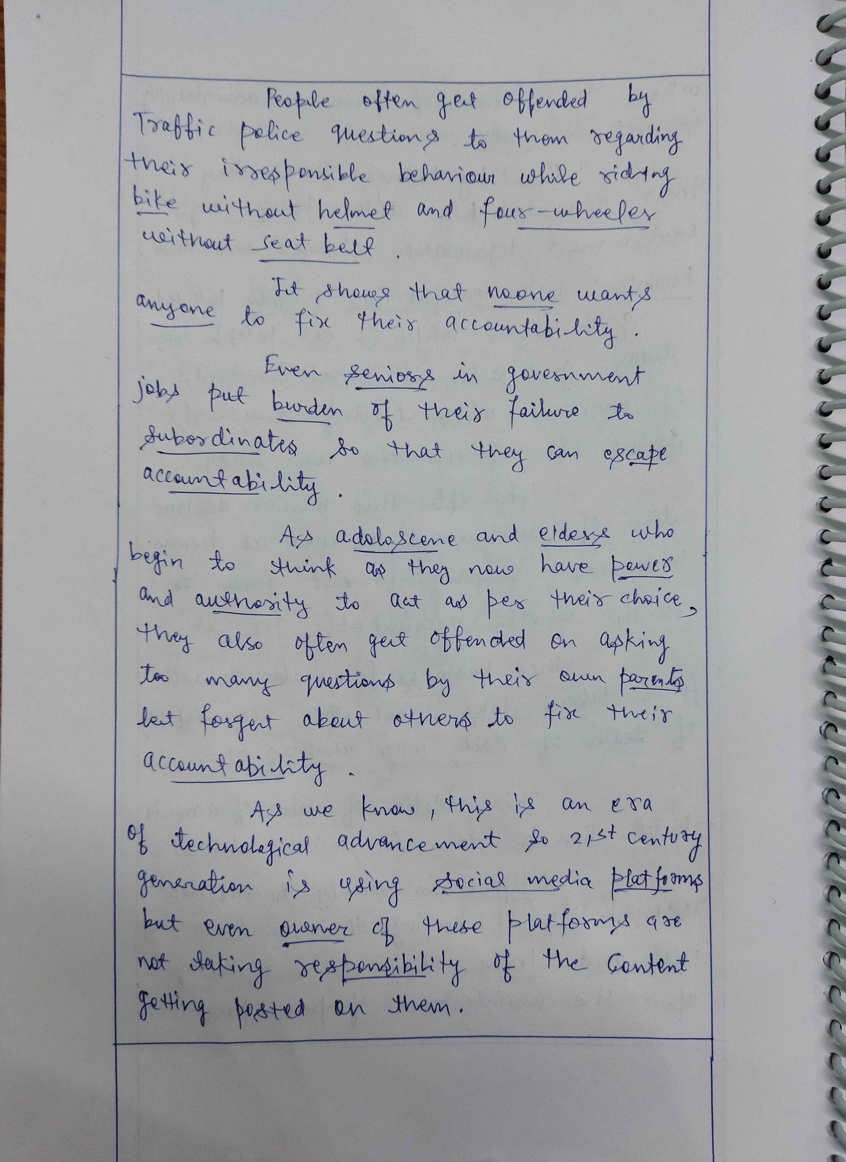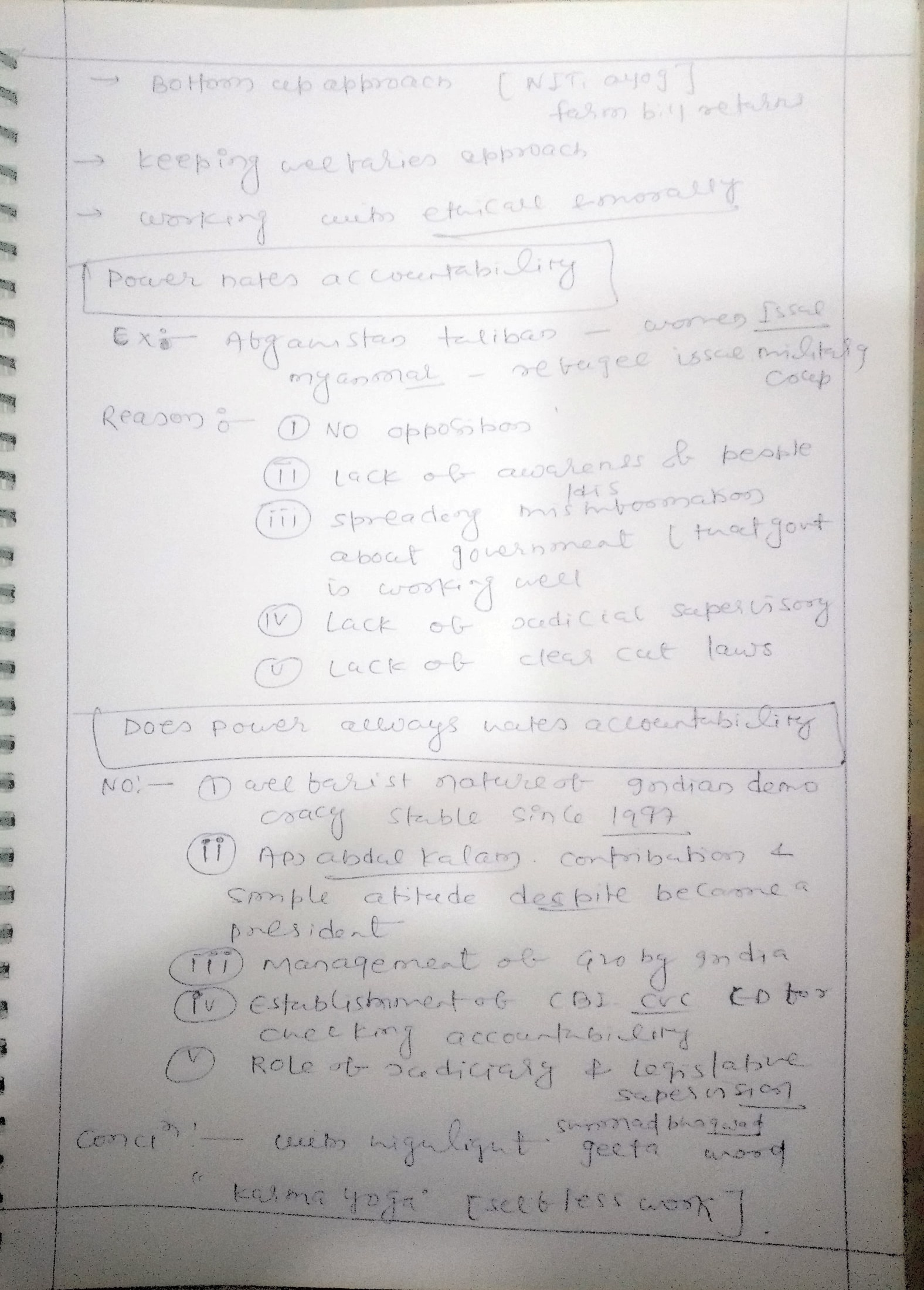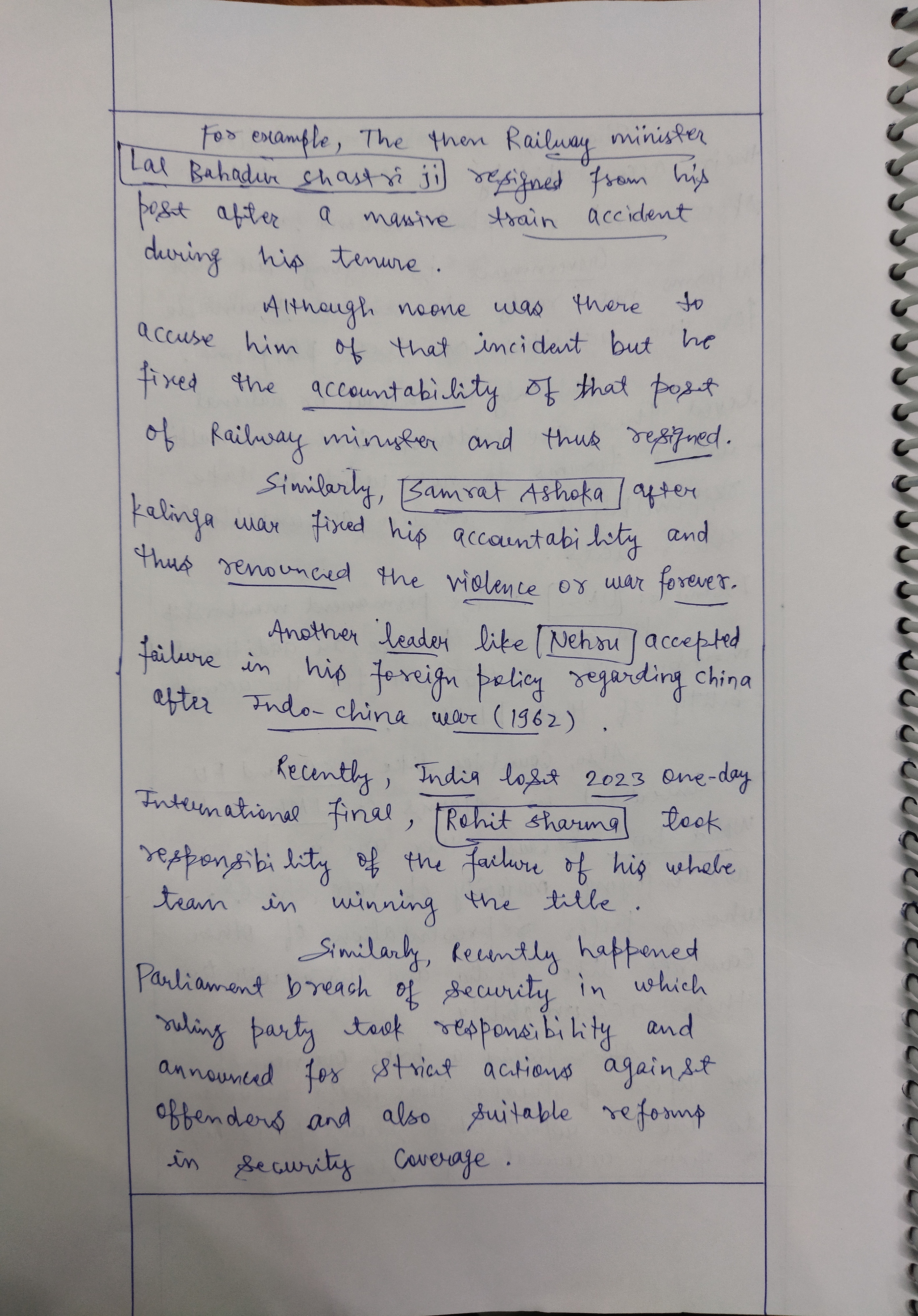 Accountability provides leaders with an opportunity for growth and improvement by encouraging reflection, rectifying mistakes, and adapting approaches. In India, initiatives like the Swachh Bharat Abhiyan, the Right to Information Act, and the implementation of the Goods and Services Tax showcase how accountability drives positive change. These examples demonstrate how leaders accepting responsibility contribute to personal growth, strengthen governance structures, and bring tangible improvements to areas such as sanitation, transparency, and economic governance. Embracing accountability empowers leaders to learn from experiences, rectify shortcomings, and ultimately ensure better outcomes for society.