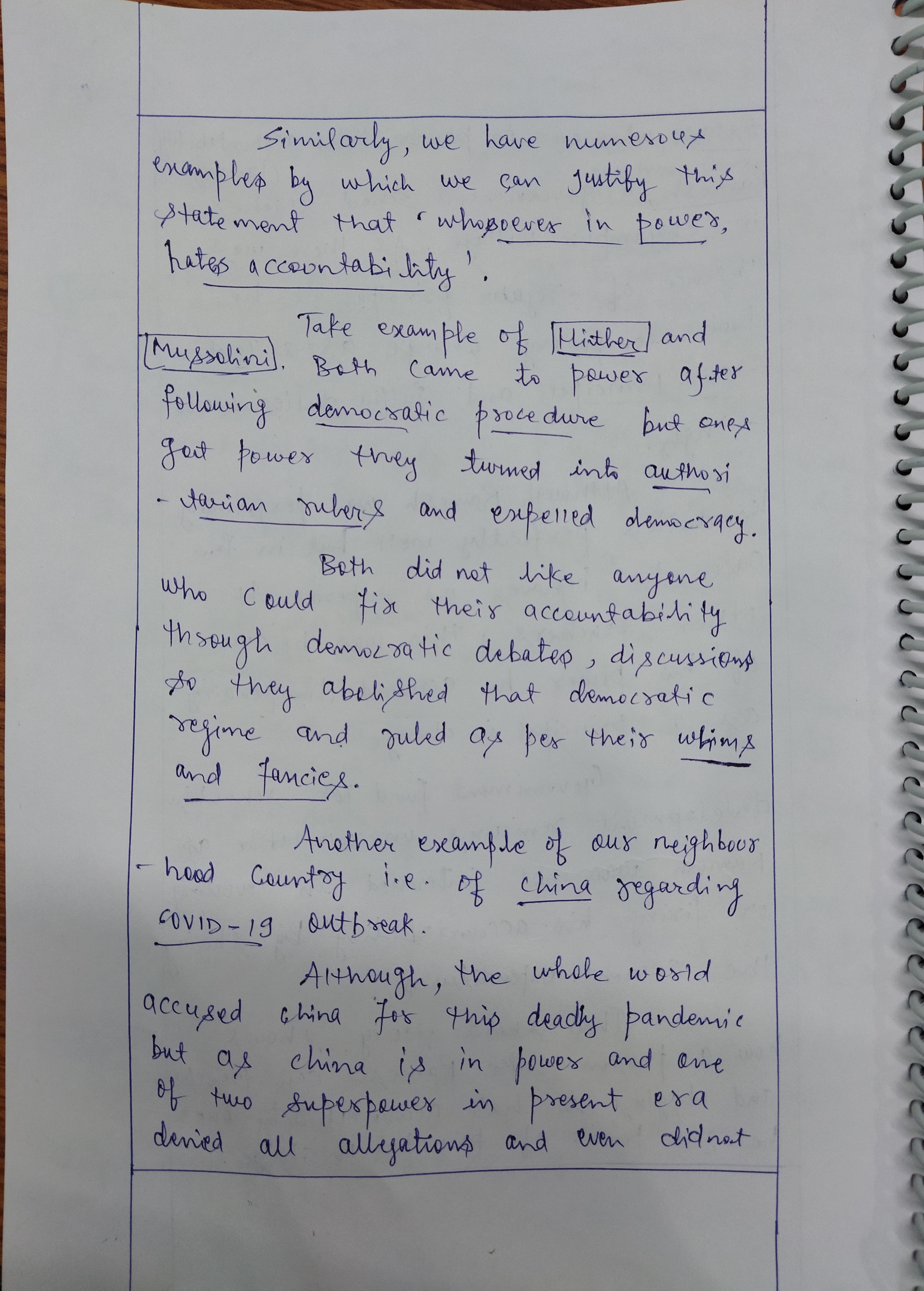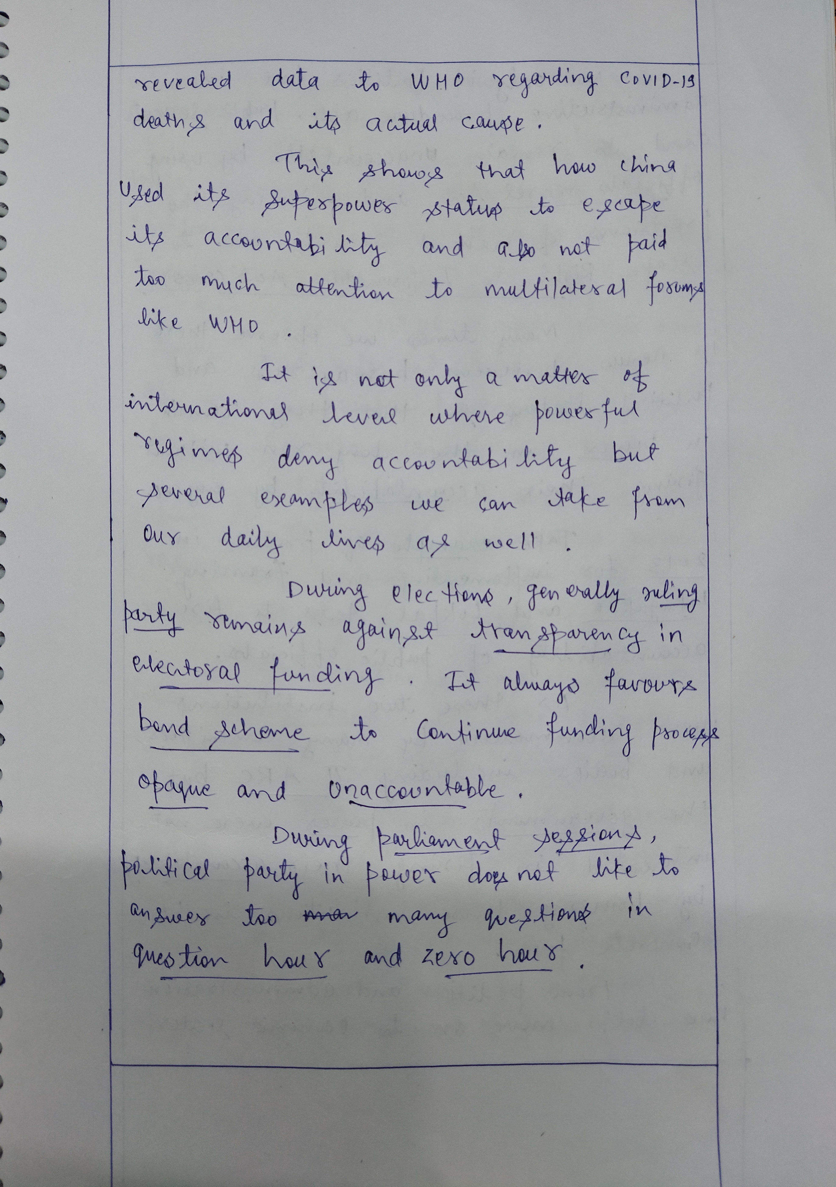 When leaders are held accountable for their actions, it fosters transparency and provides assurance to the public that their interests are being represented and protected. For example, the Right to Information (RTI) Act. enacted in 2005, empowered citizens to request information from public authorities, promoting transparency and holding leaders accountable. RTI has enabled citizens to uncover details about governmental decisions, expenditures, and policies. This transparency has ensured that leaders are accountable for their actions and decisions, fostering public trust by demonstrating a commitment to openness and accountability in governance, ultimately strengthening democracy in India.