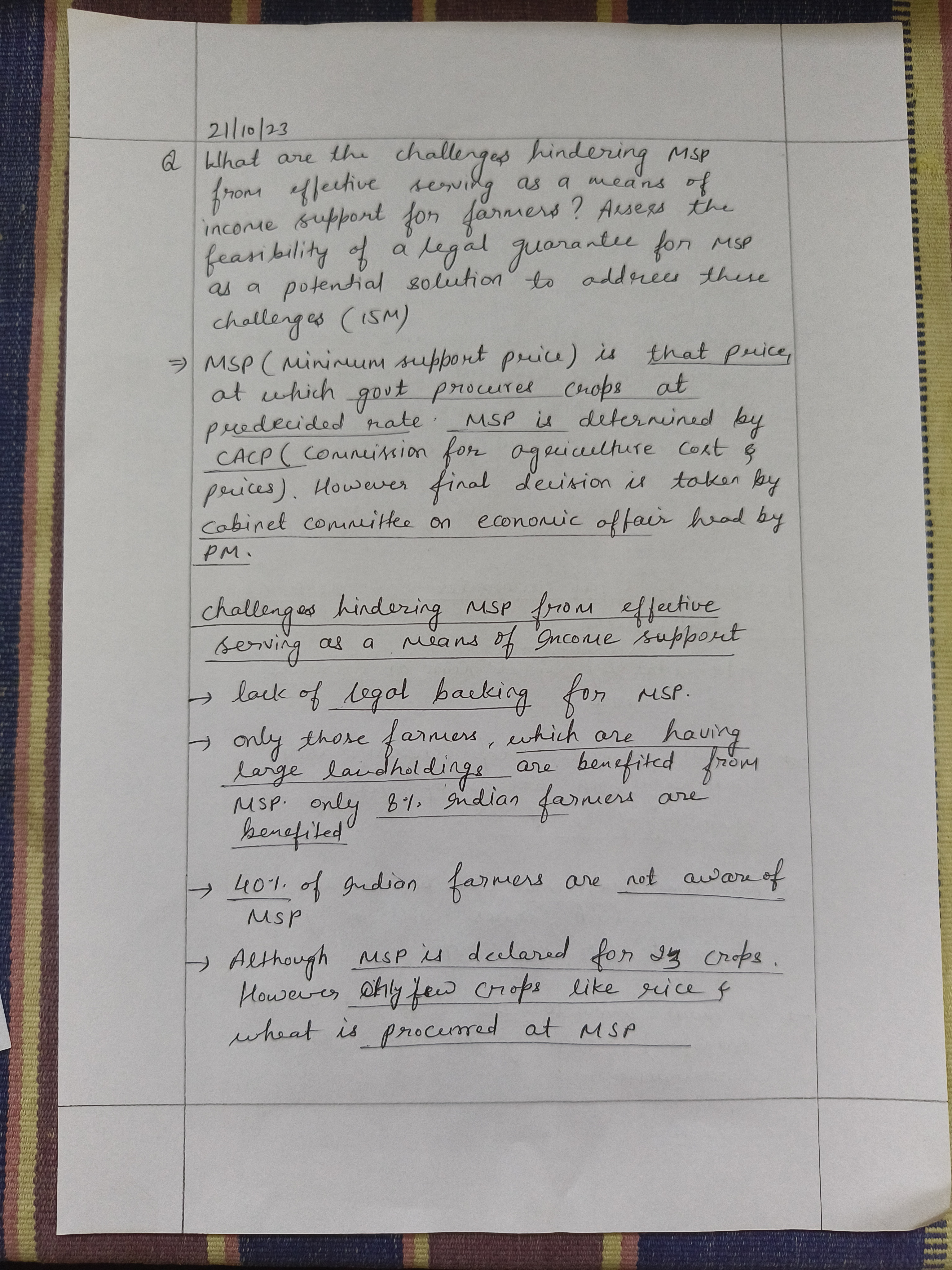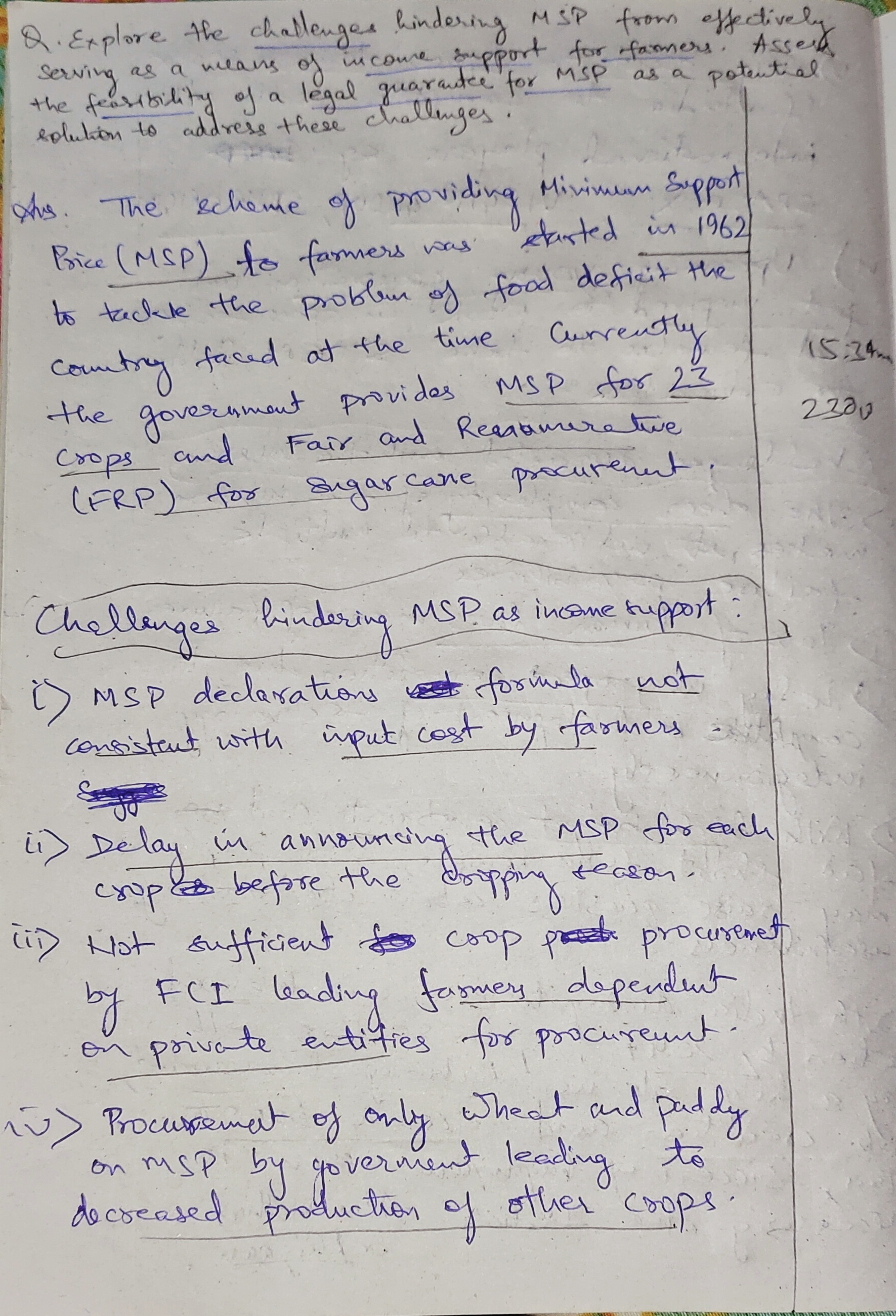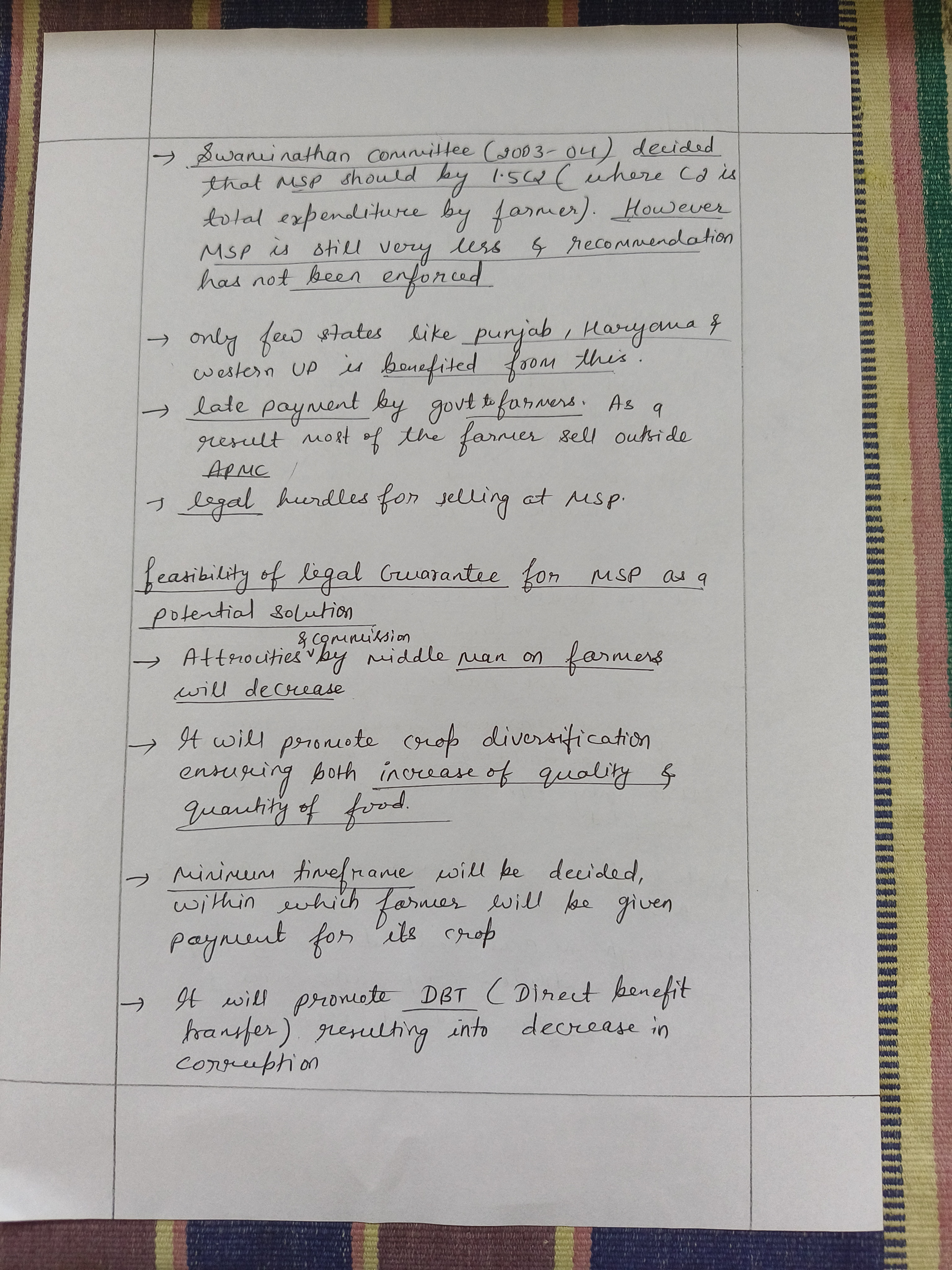 - Introduction: Brief explanation of MSP’s role in Indian agriculture. Mention of the current predicaments leading to the demand for its legal guarantee.