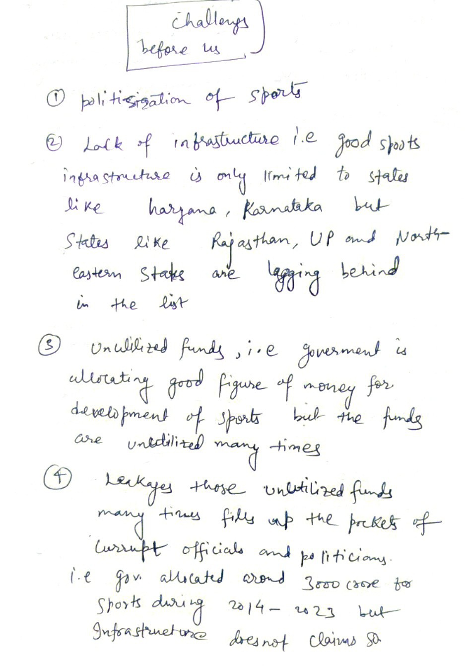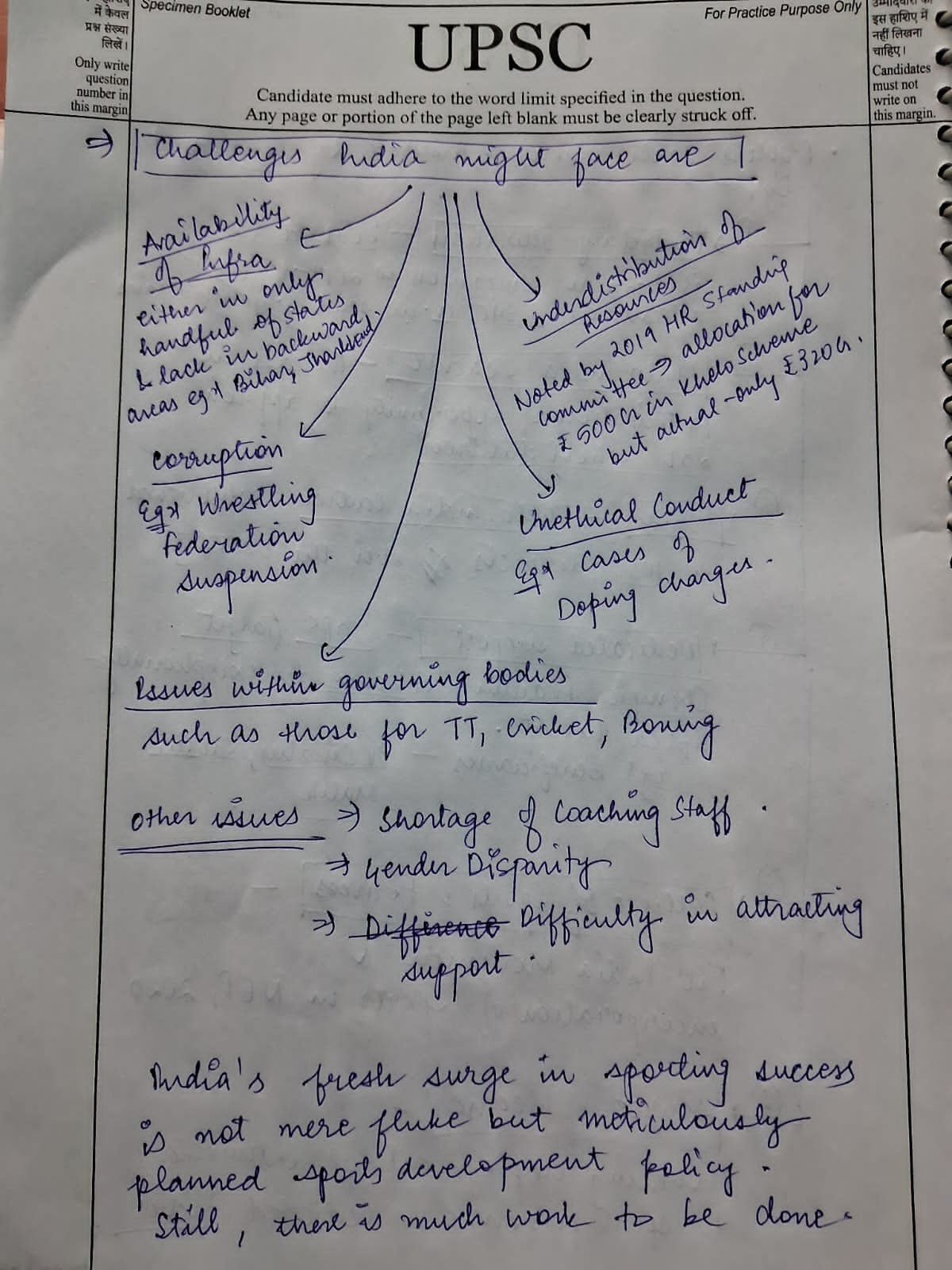 - Issues like bureaucratic red-tapism, lack of transparency, and political interference in sports bodies can impede growth.