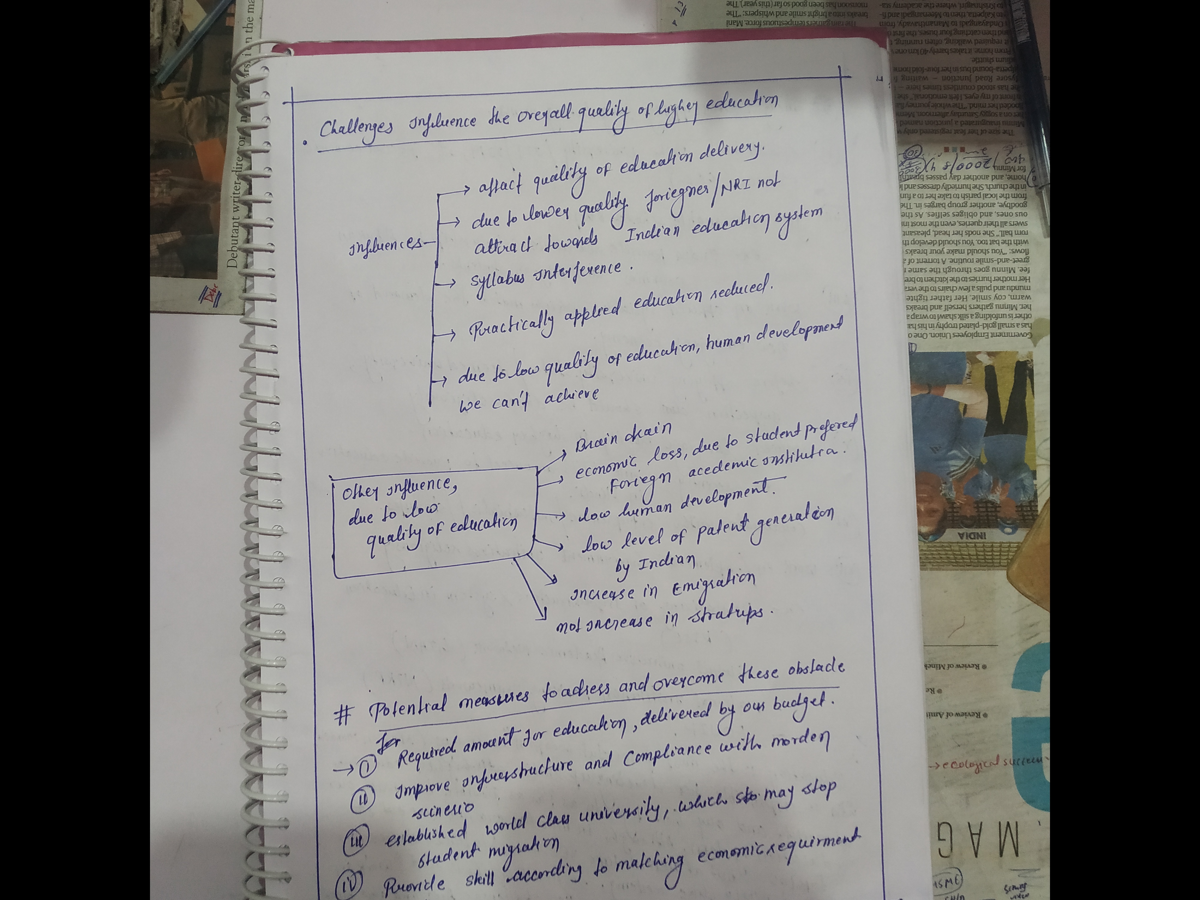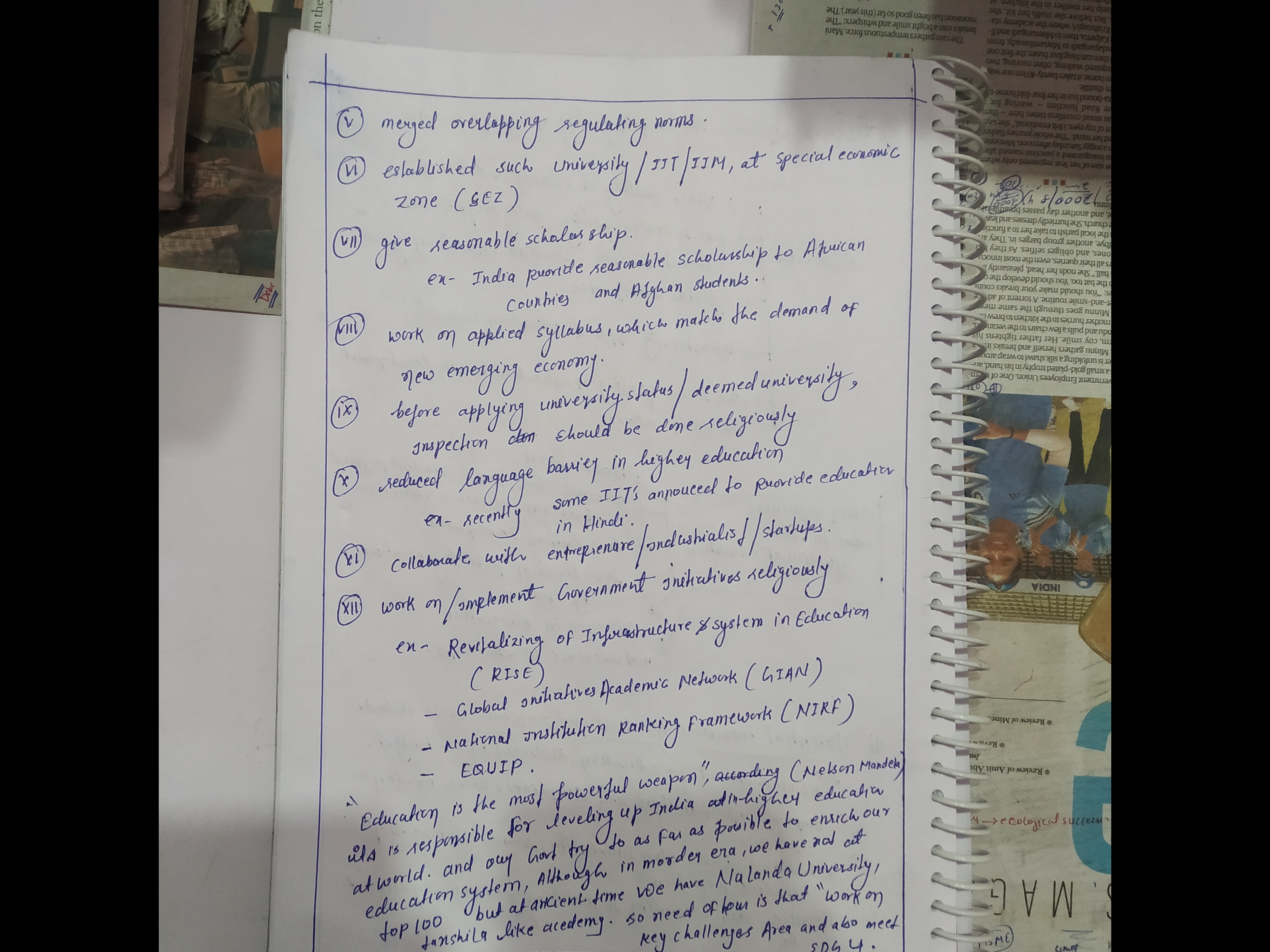 - Suggest solutions like infrastructure enhancement, faculty development, curriculum revamp, research promotion, and ensuring access and equity.