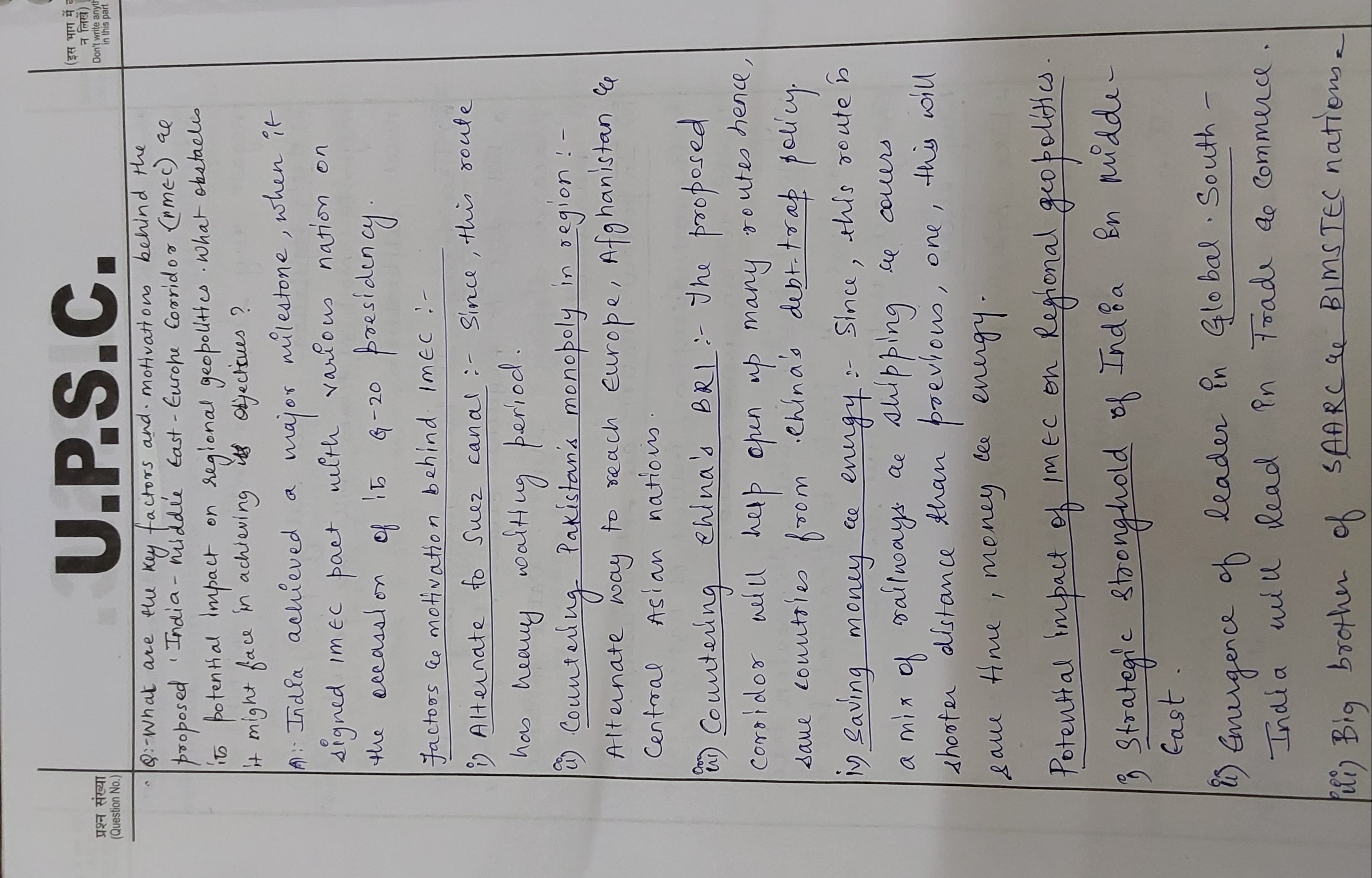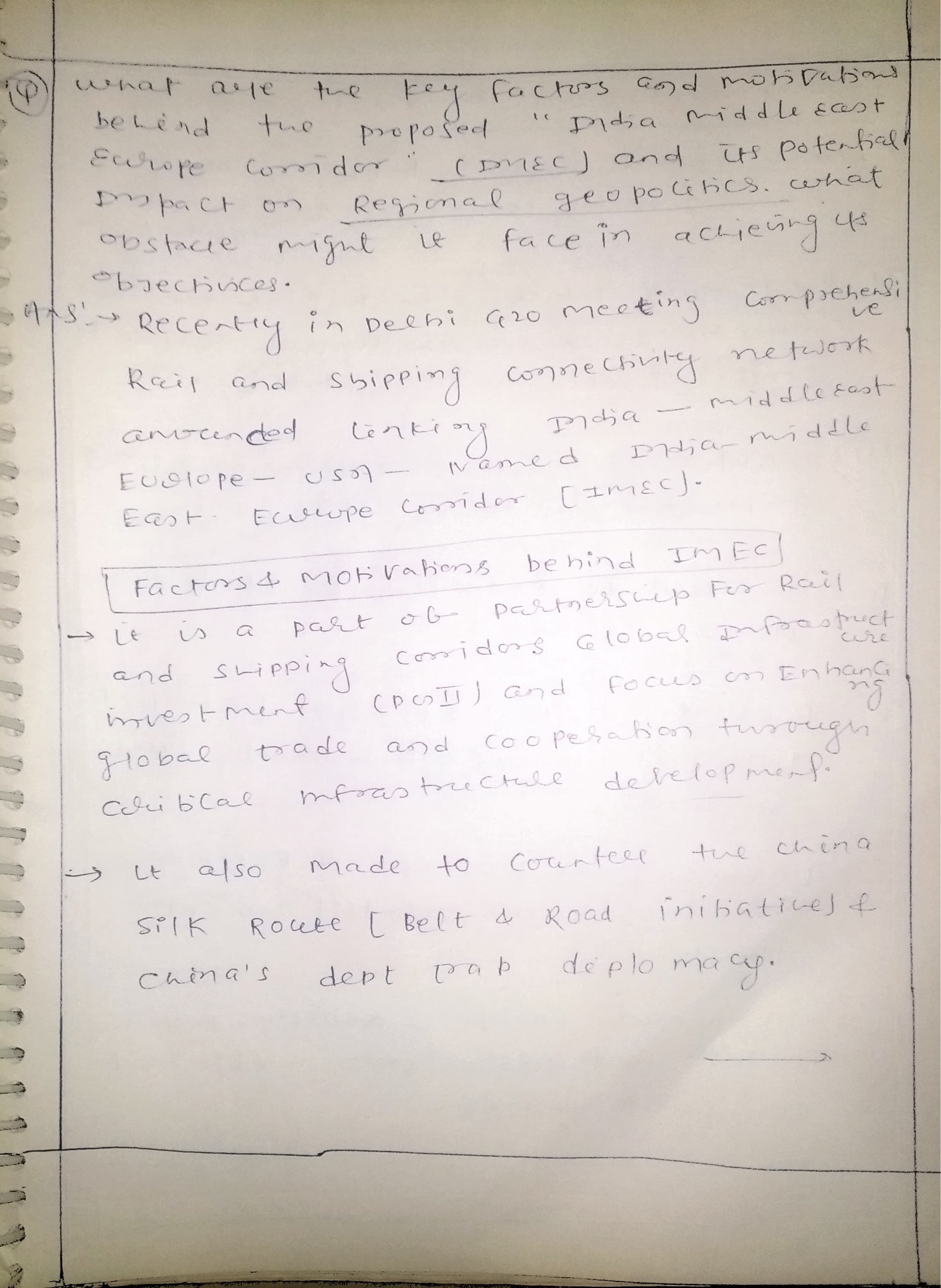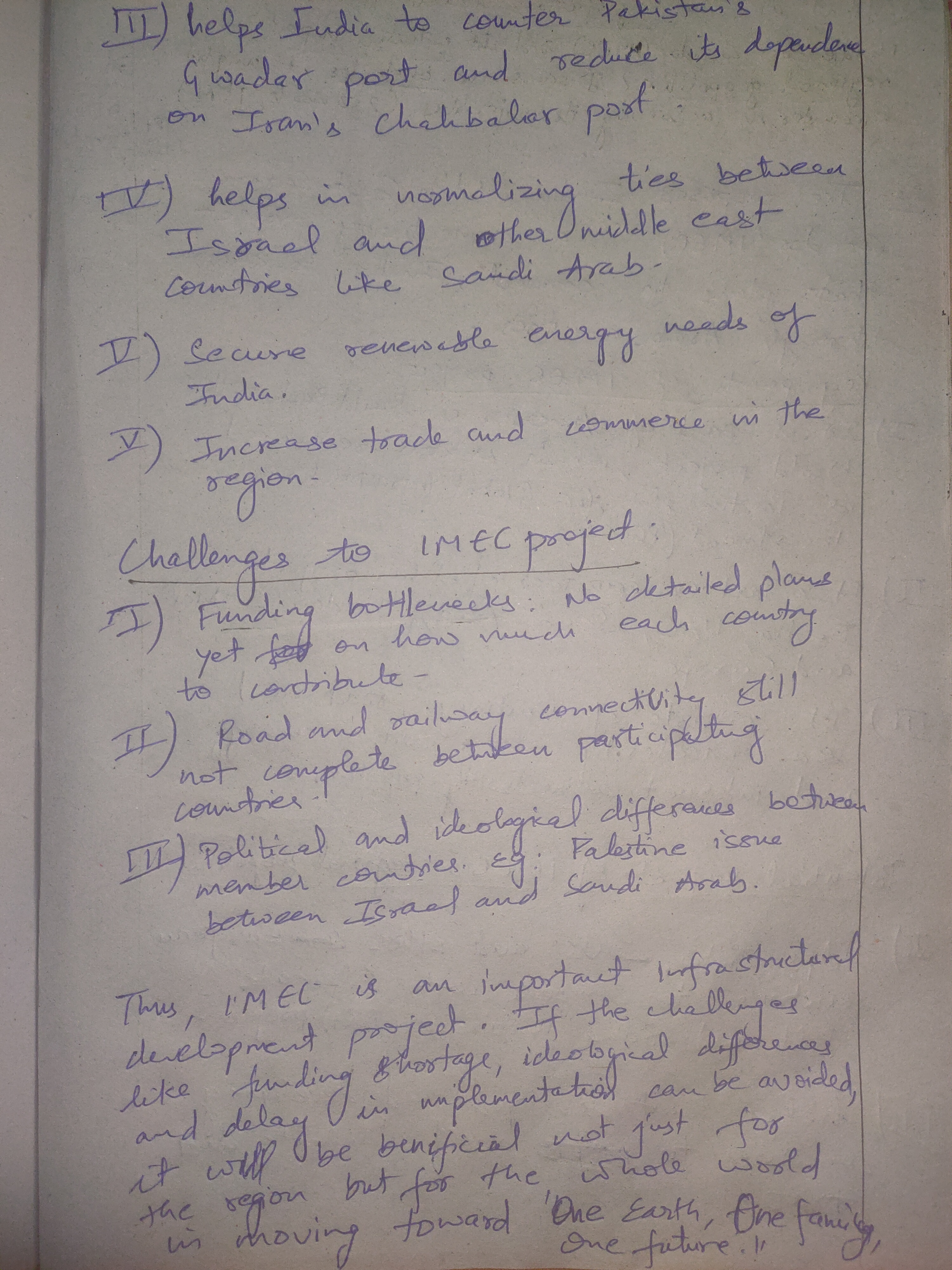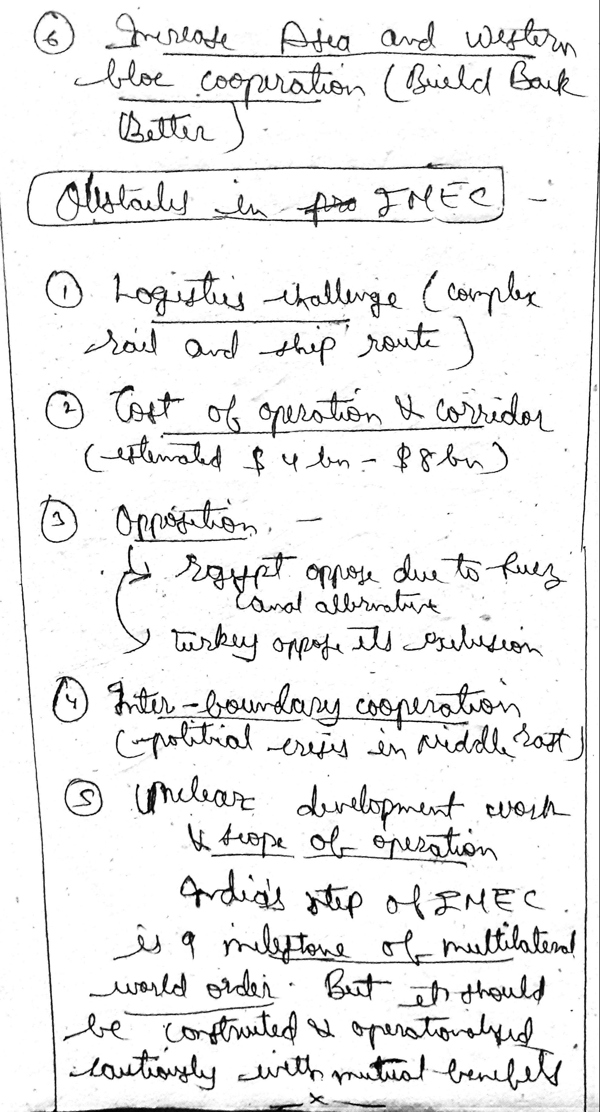 - Discuss on how IMEC alters the geopolitical dynamics, strengthens India’s strategic ties, and potentially counters China’s dominance.