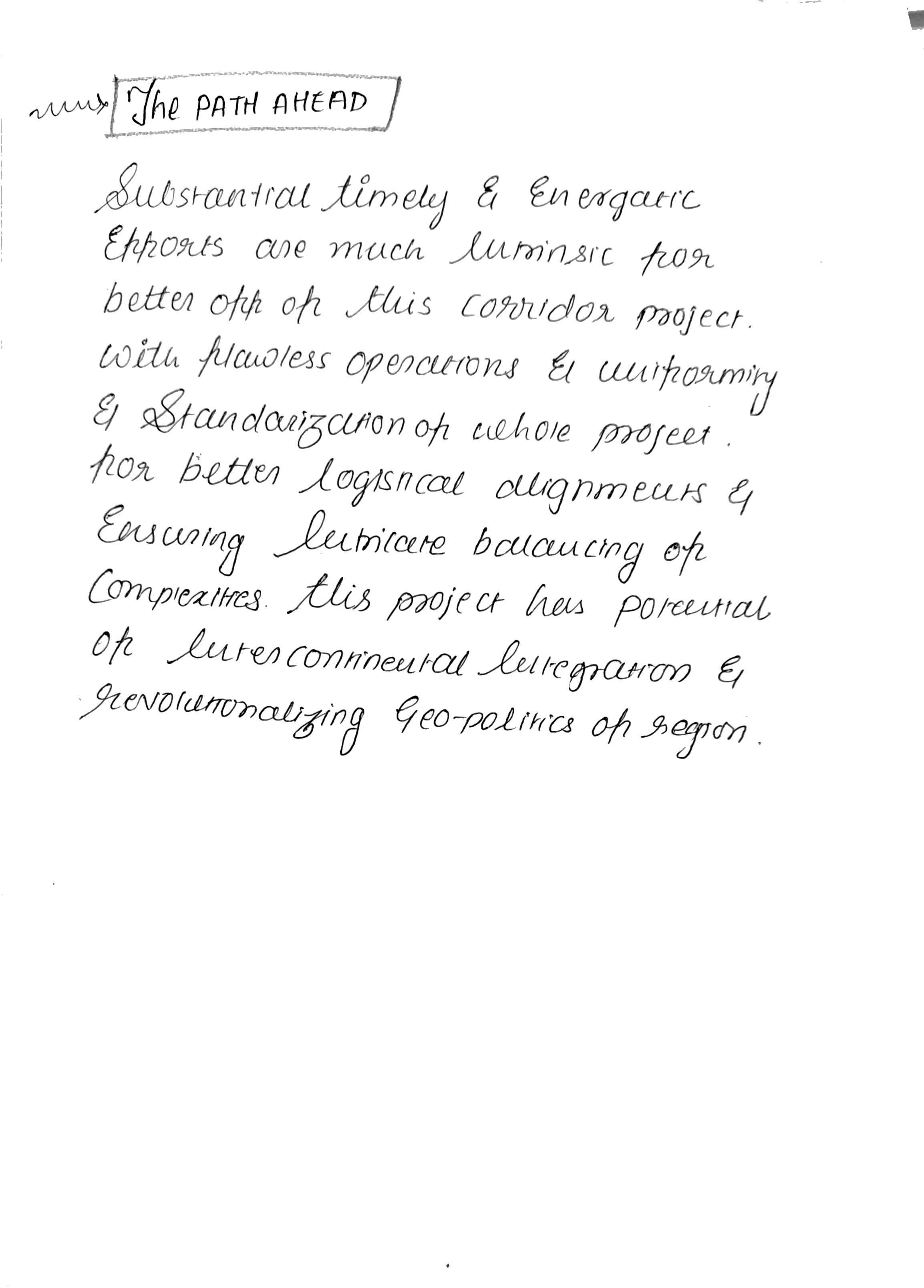 - For instance, the harmonization of infrastructural goals and timelines among the involved nations remains crucial to prevent bottlenecks and inefficiencies.