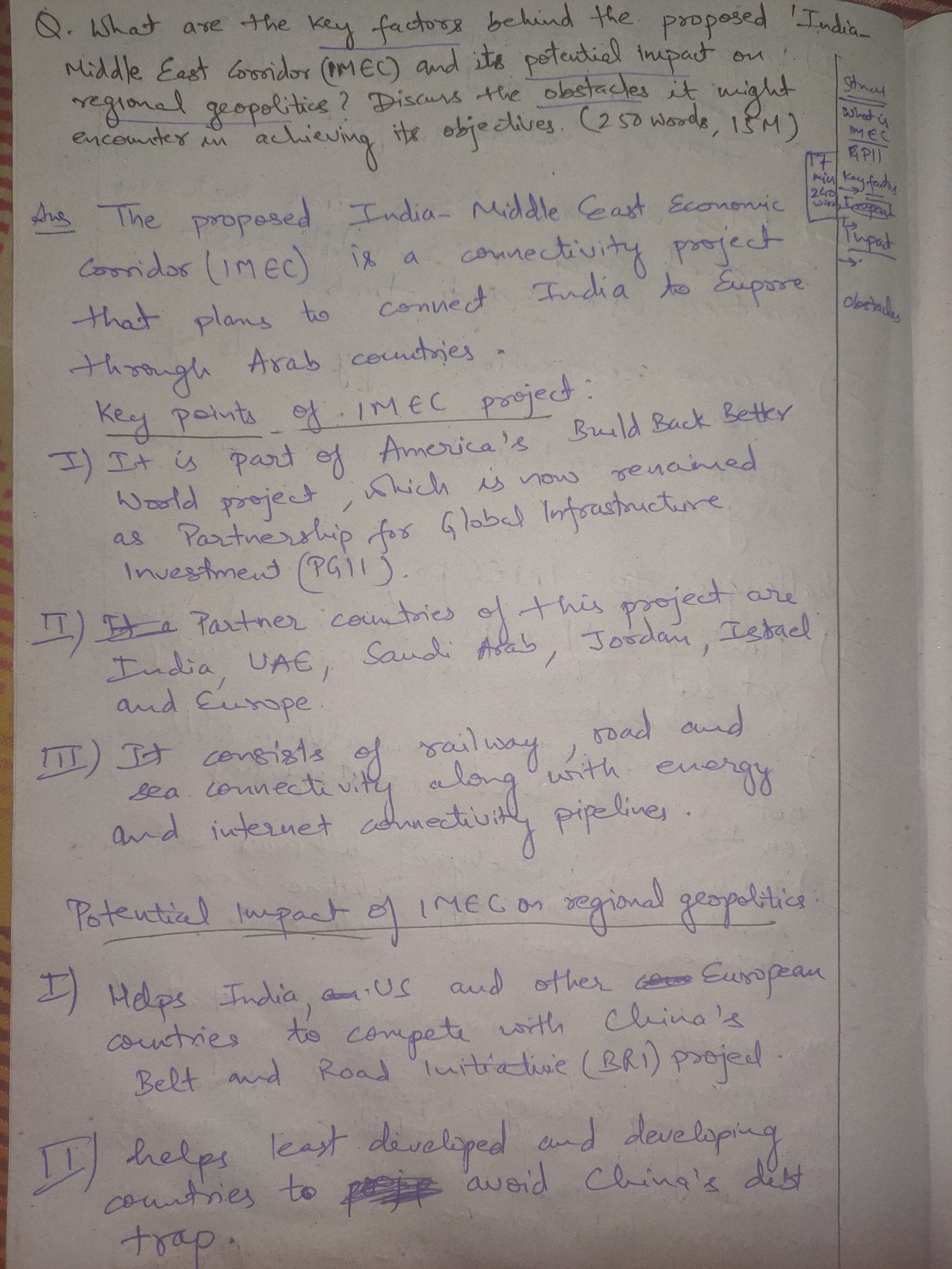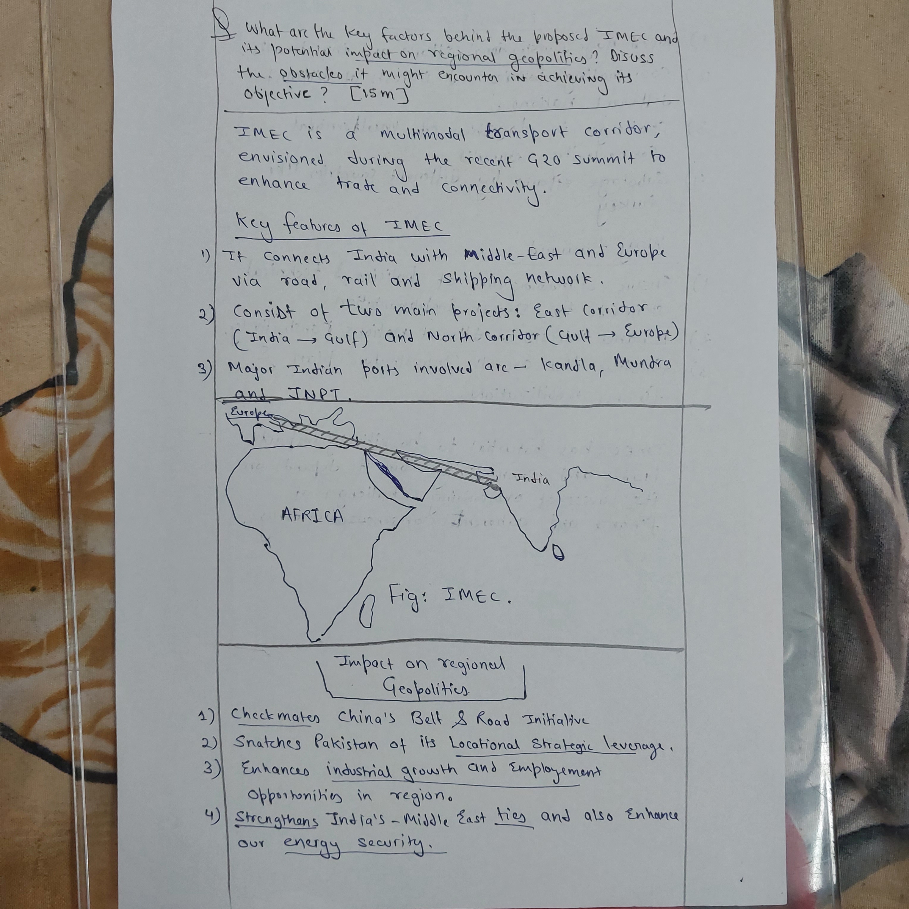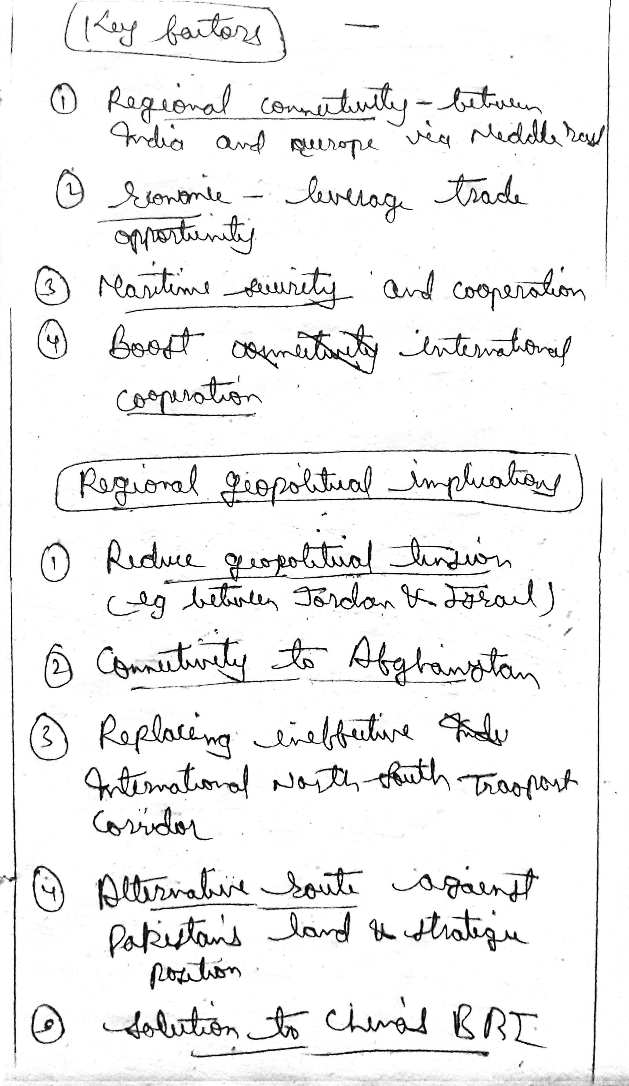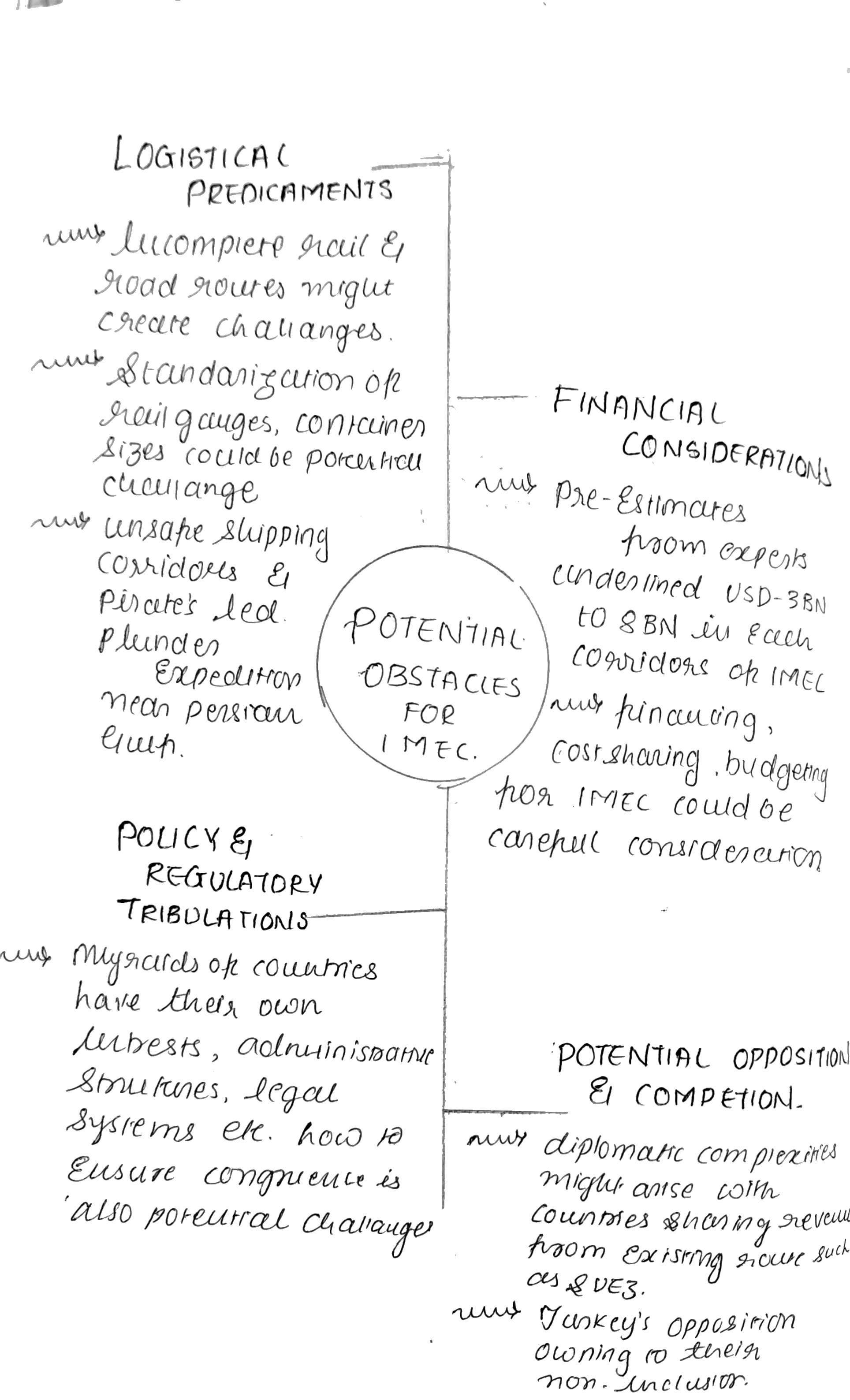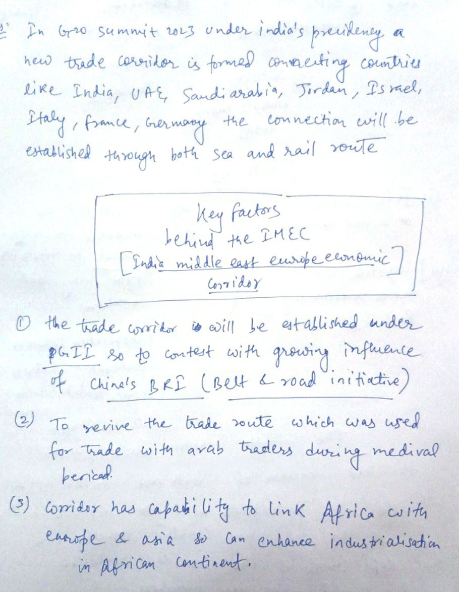 - Introduction: Begin by introducing the India-Middle East-Europe Corridor (IMEC) as a significant geo-economic initiative, highlighting its unveiling at the G20 Summit in New Delhi.
