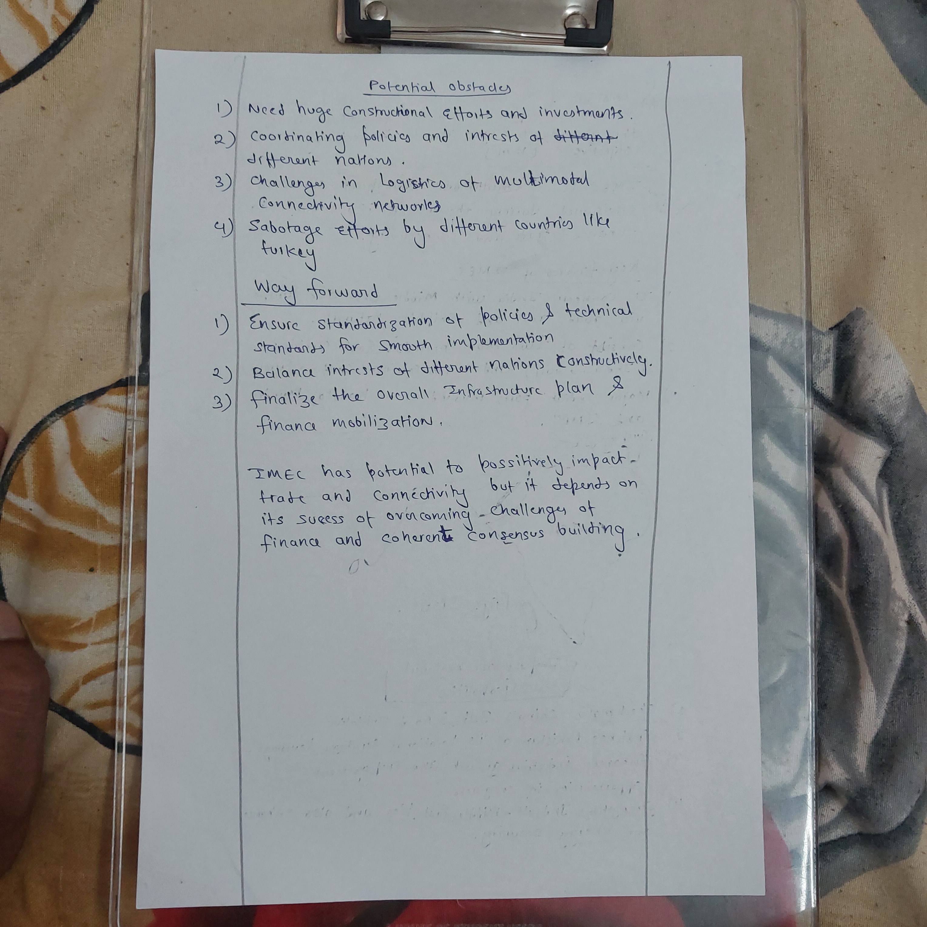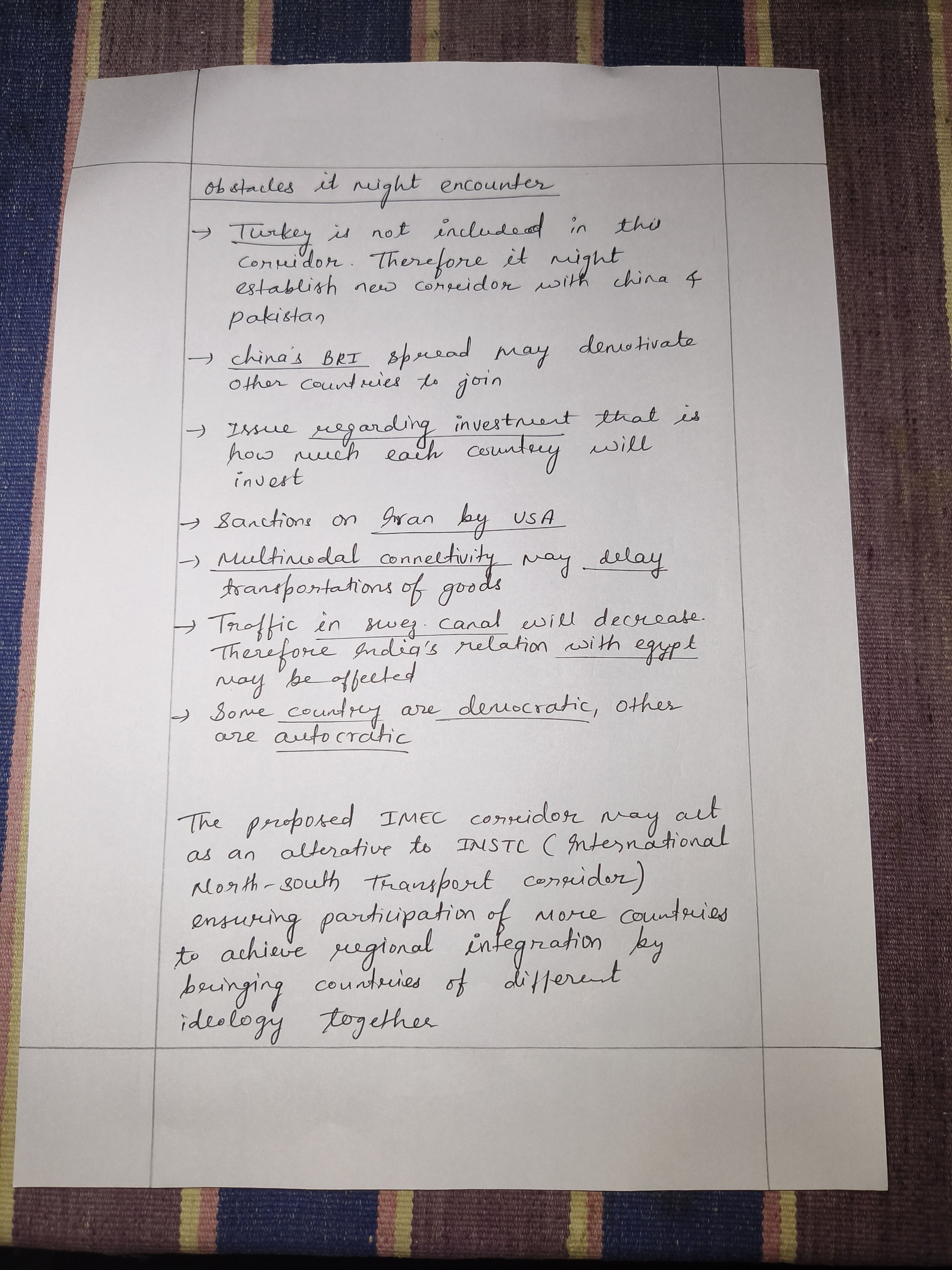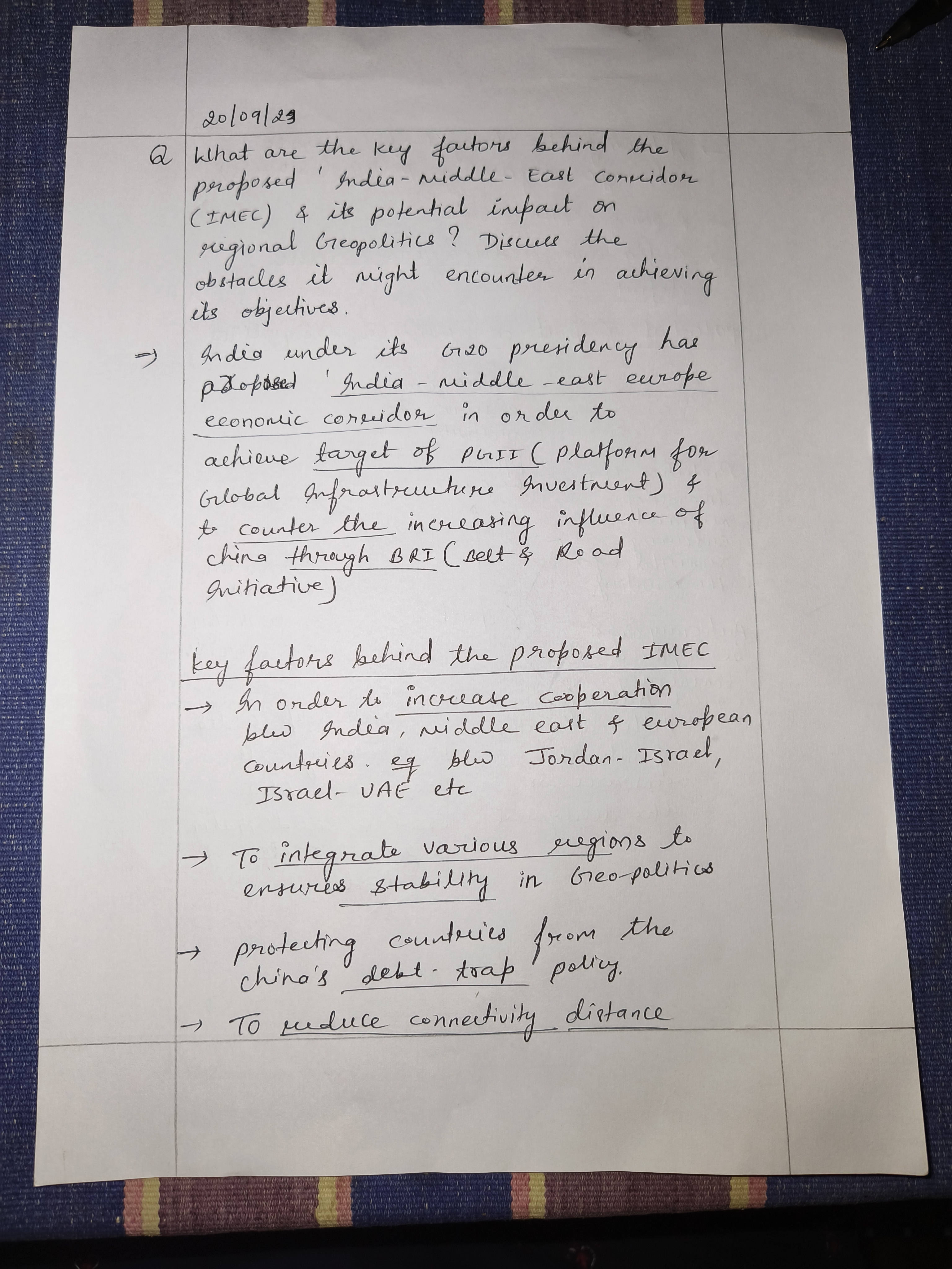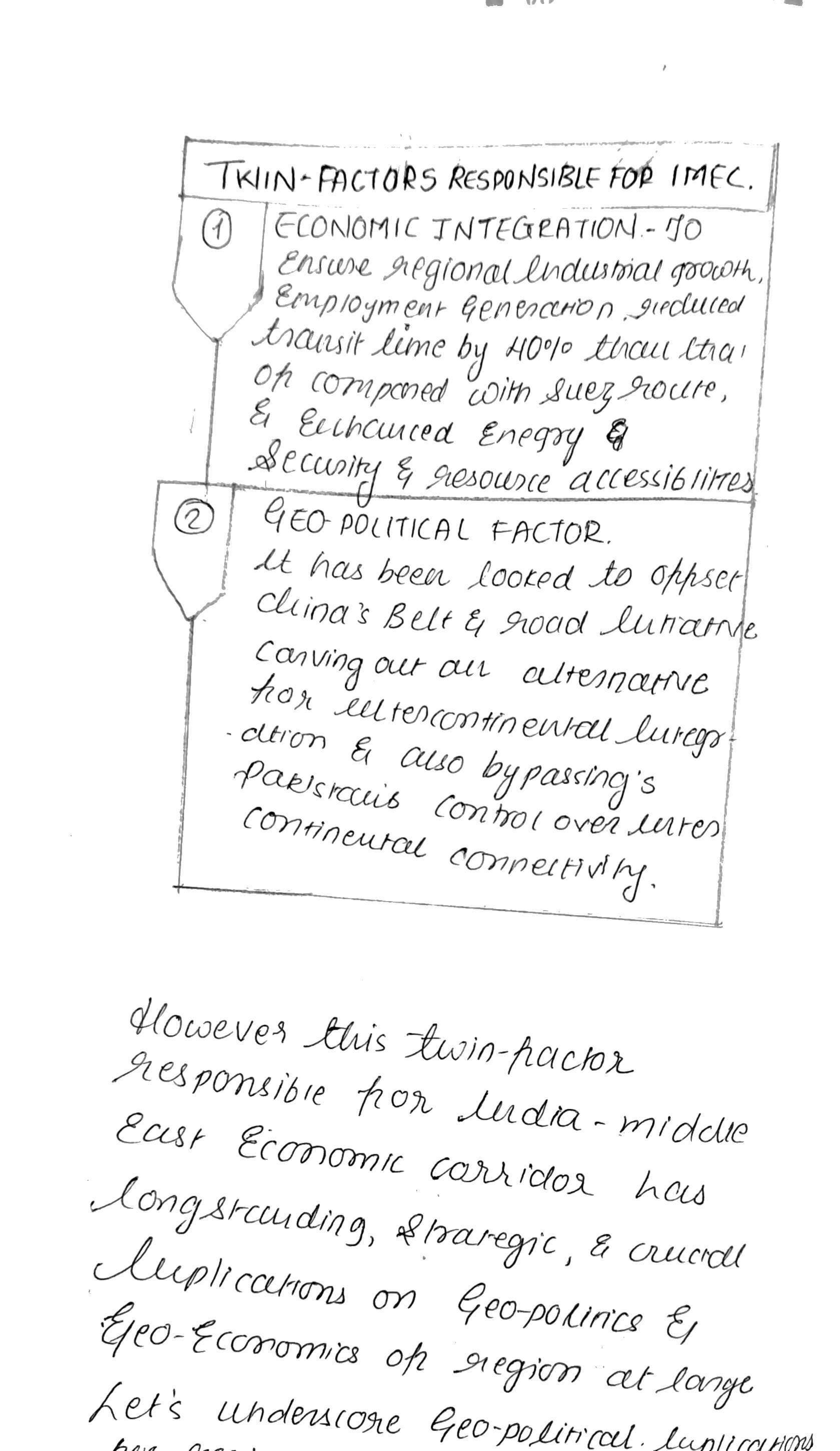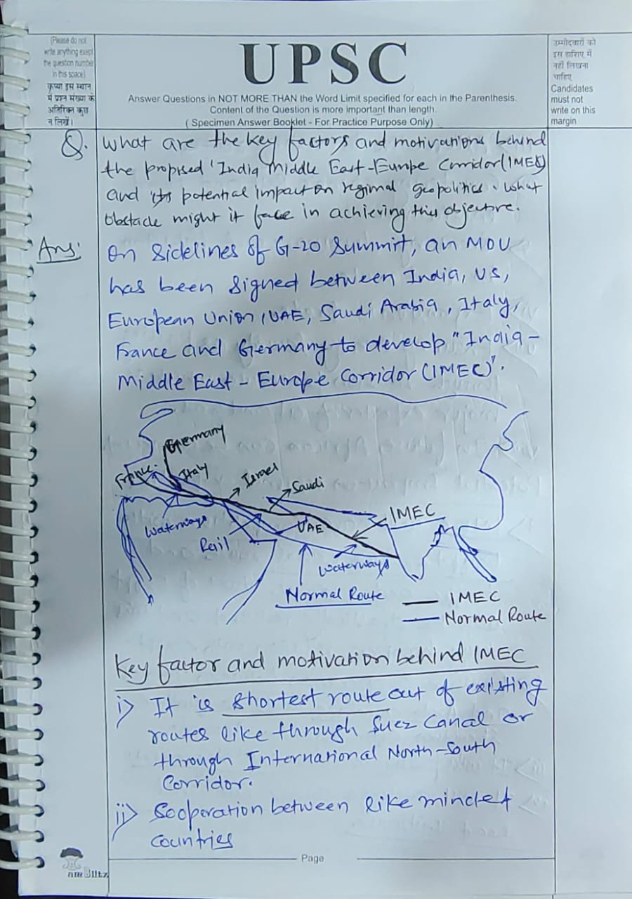 - Introduction: Begin by introducing the India-Middle East-Europe Corridor (IMEC) as a significant geo-economic initiative, highlighting its unveiling at the G20 Summit in New Delhi.