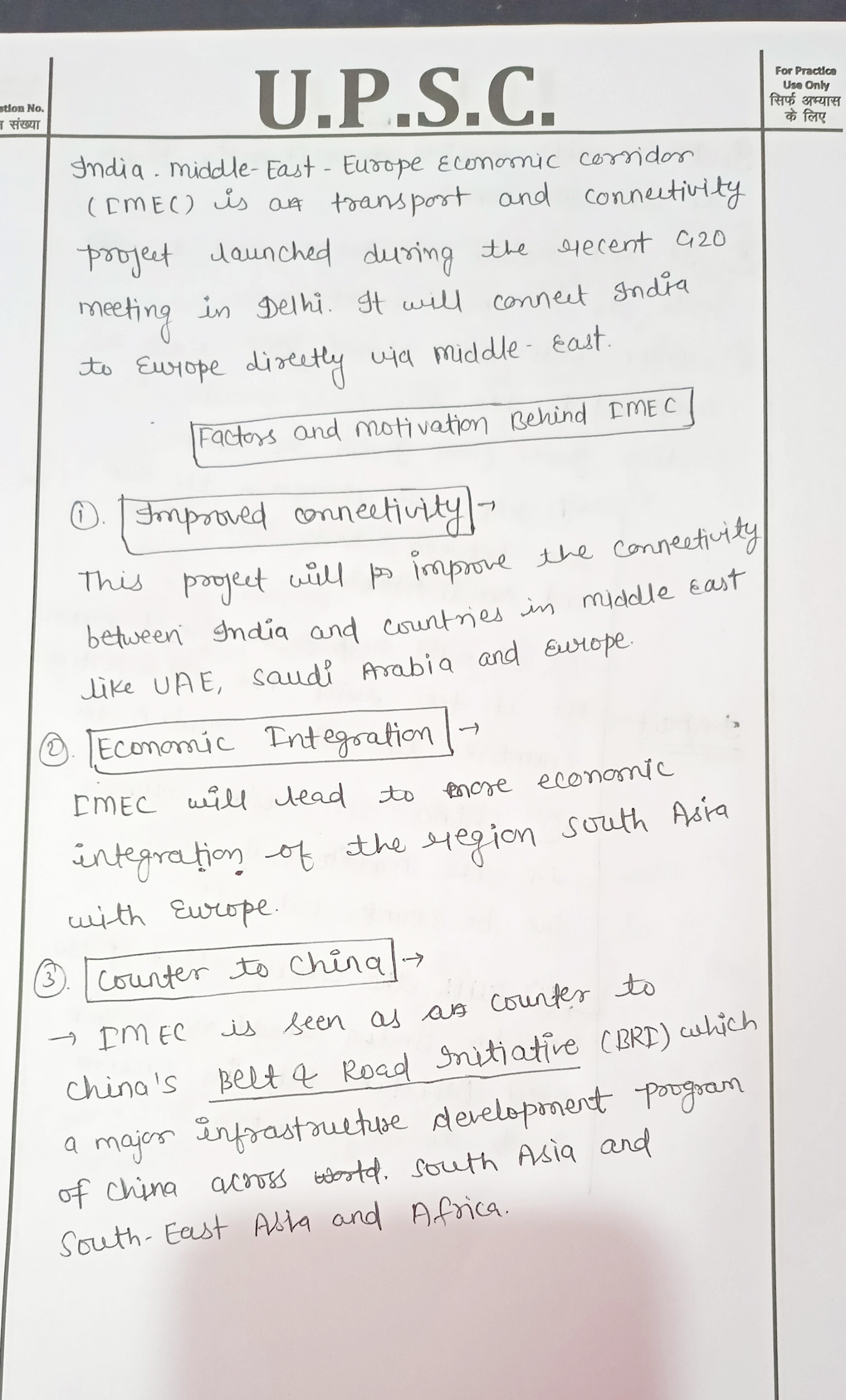 - Explain the economic and strategic advantages IMEC promises for India and its distinction from China’s BRI.