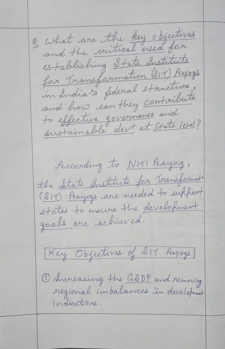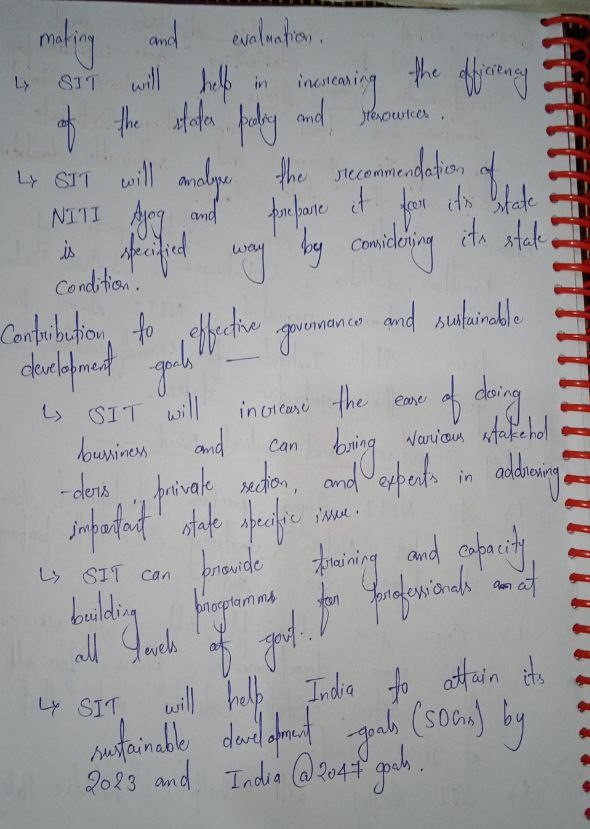 - Policy Recommendations: By bringing in professionals through lateral entry, the SIT aims to enhance the quality of analytical work and offer insightful policy recommendations to meet state-specific challenges.
