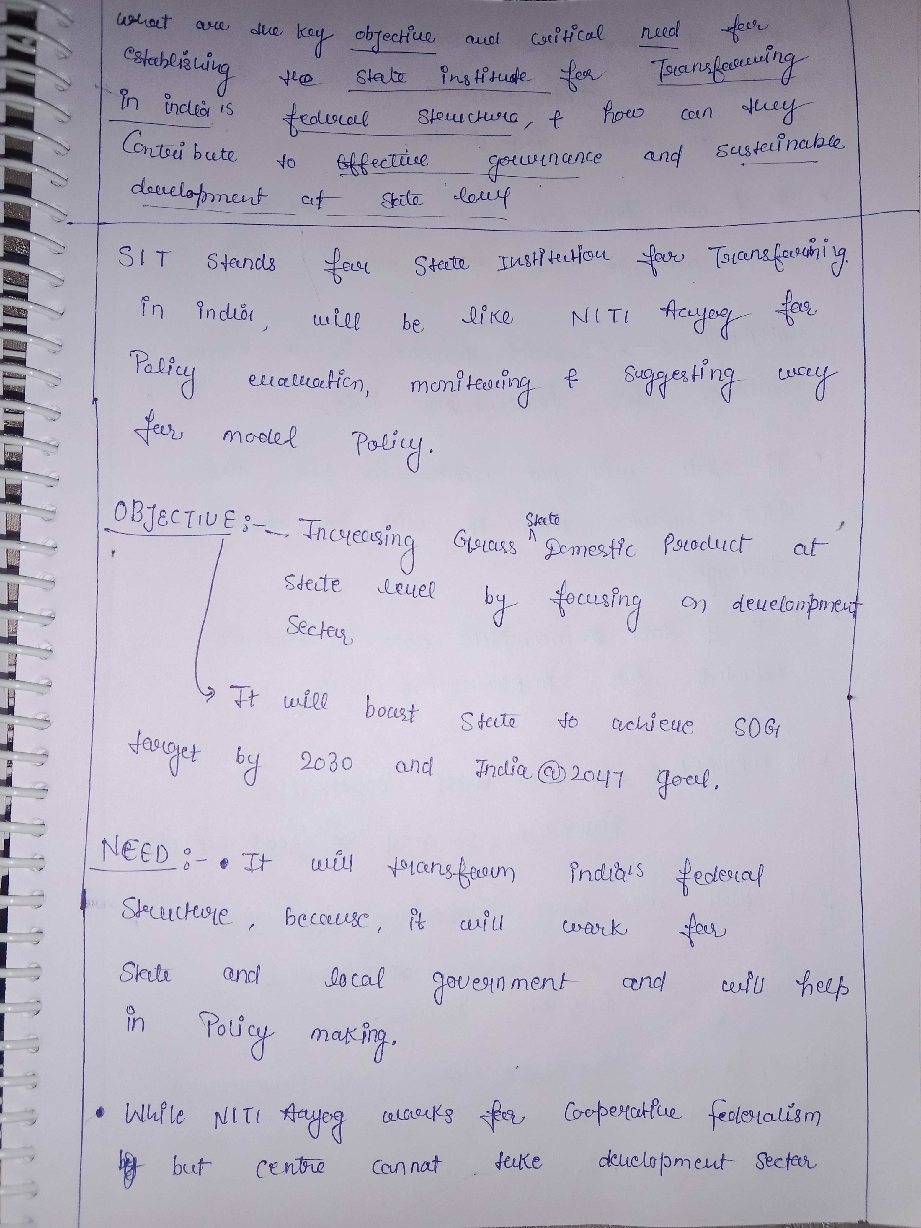 - Improved Coordination: With NITI Aayog and SITs working in tandem, there can be better coordination between the central and state governments in policy formulation and execution.