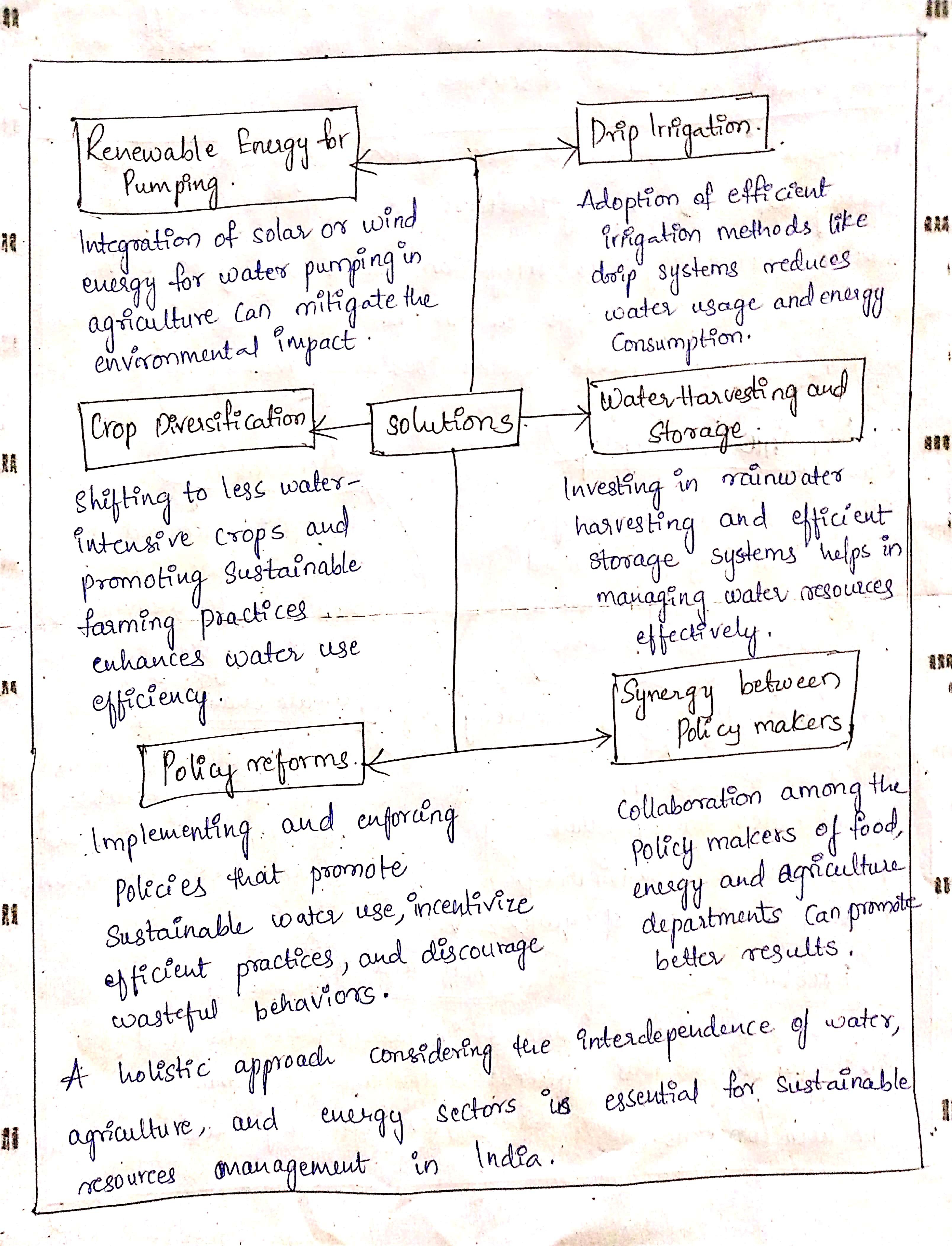 - Energy and Agriculture: The provision of subsidized power for agricultural purposes has led to the over-extraction of groundwater. This not only depletes water resources but also increases energy consumption, creating a cycle of dependence that threatens both water and energy security.