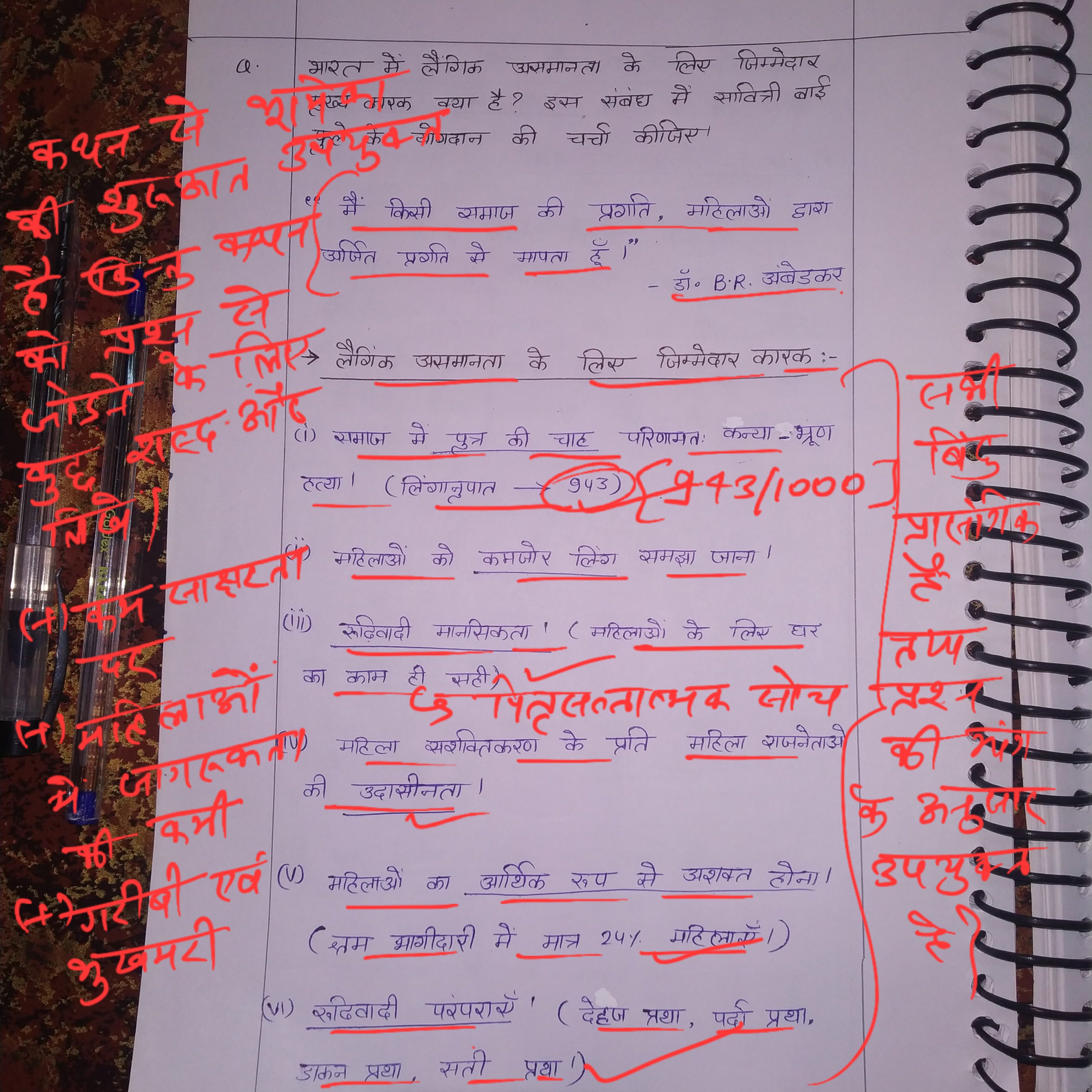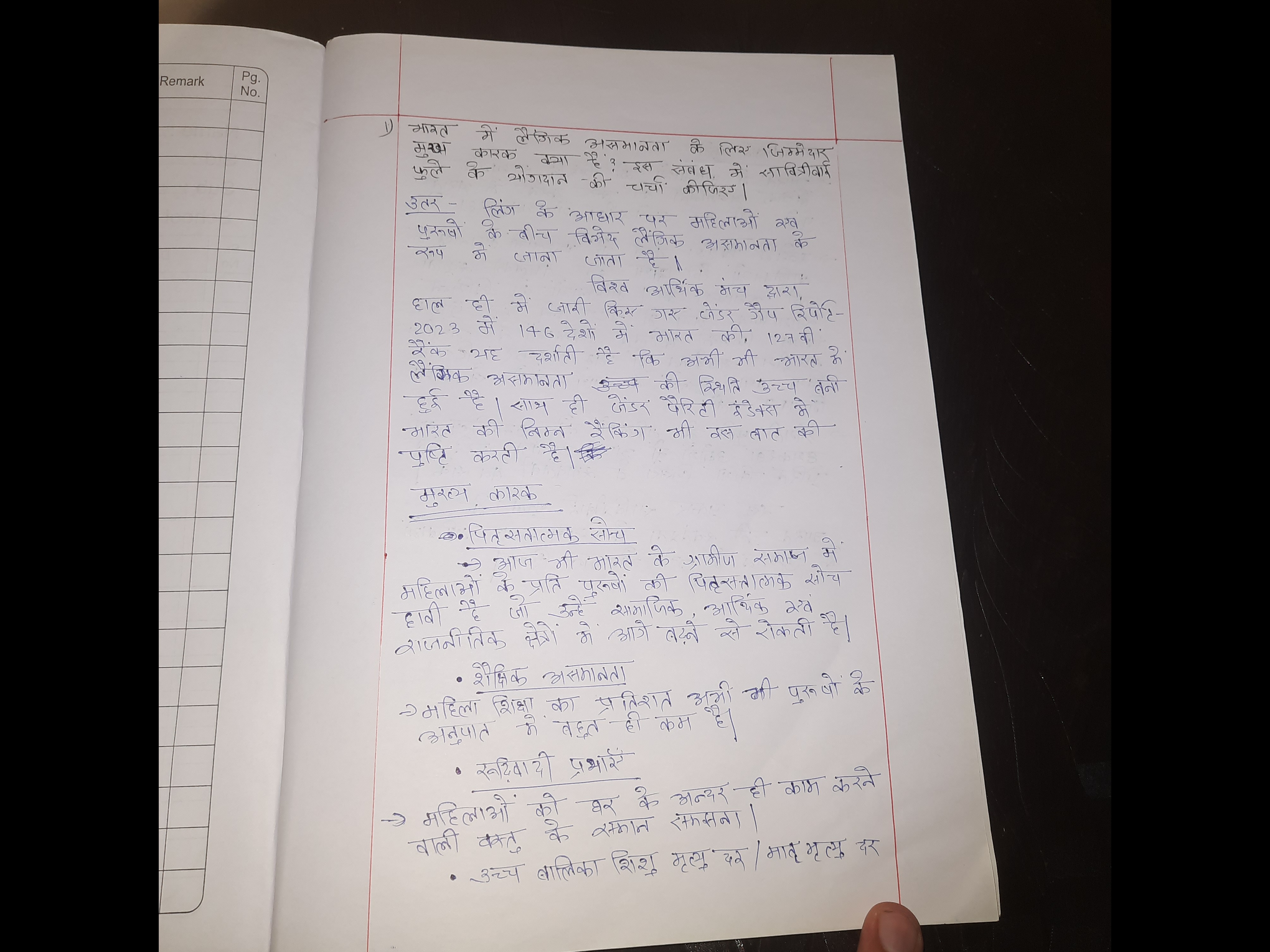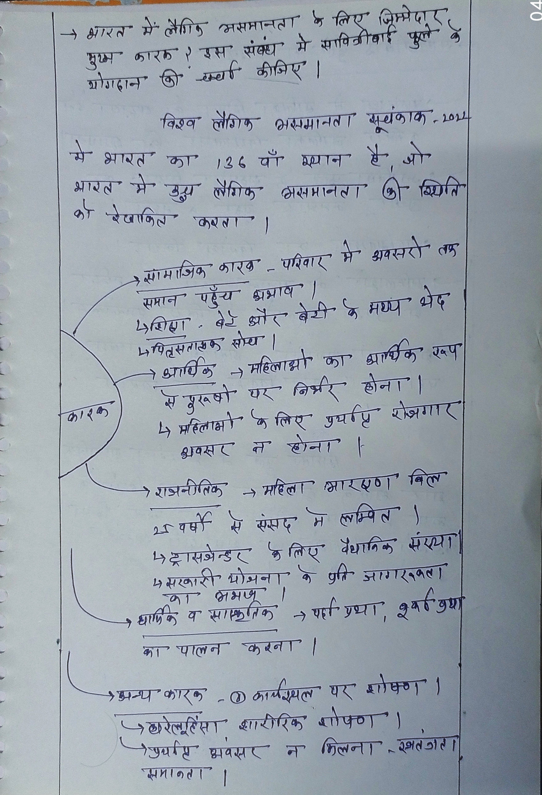 भारत में लैंगिक असमानता के लिए जिम्मेदार कुछ मुख्य कारक हैं: