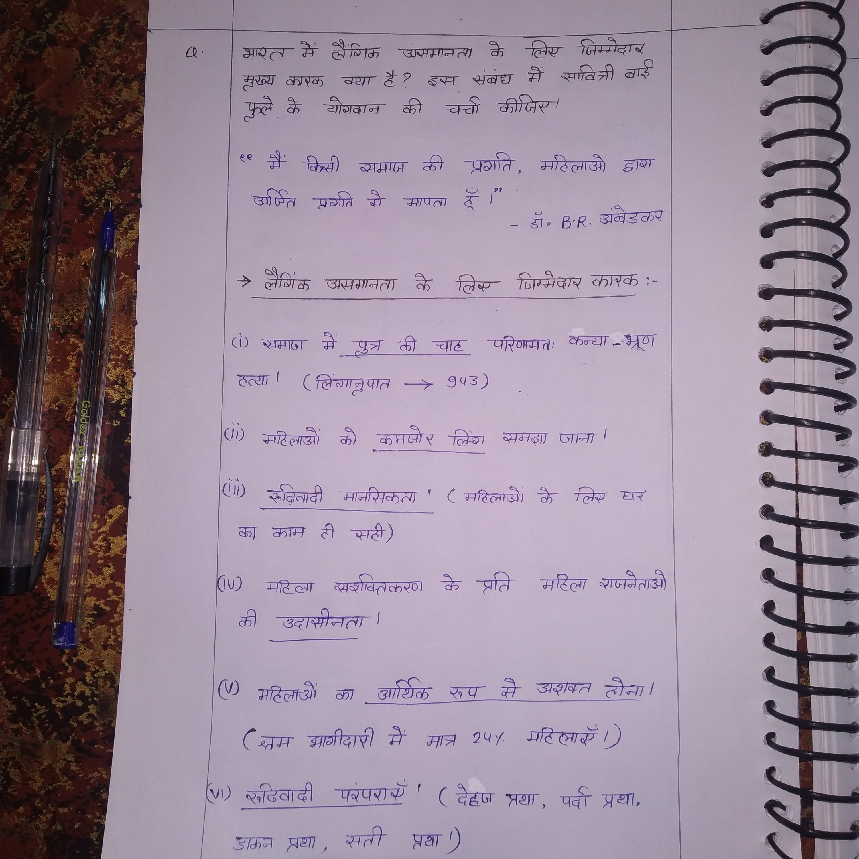 - भारत में लैंगिक असमानता के लिए उत्तरदायी मुख्य कारकों का उल्लेख कीजिये