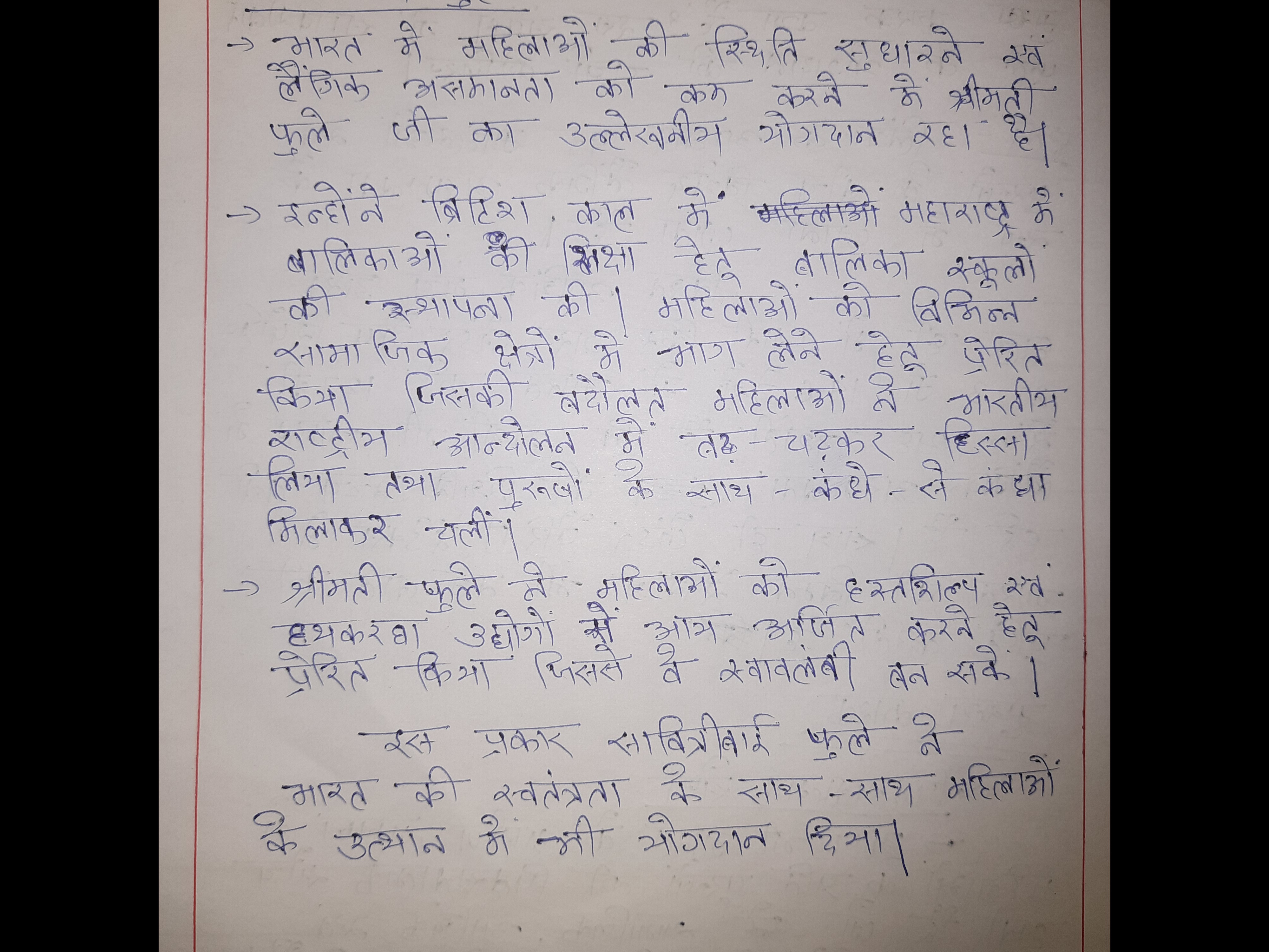 - सावित्रीबाई फुले के योगदान पर कुछ बिंदु लिखें।