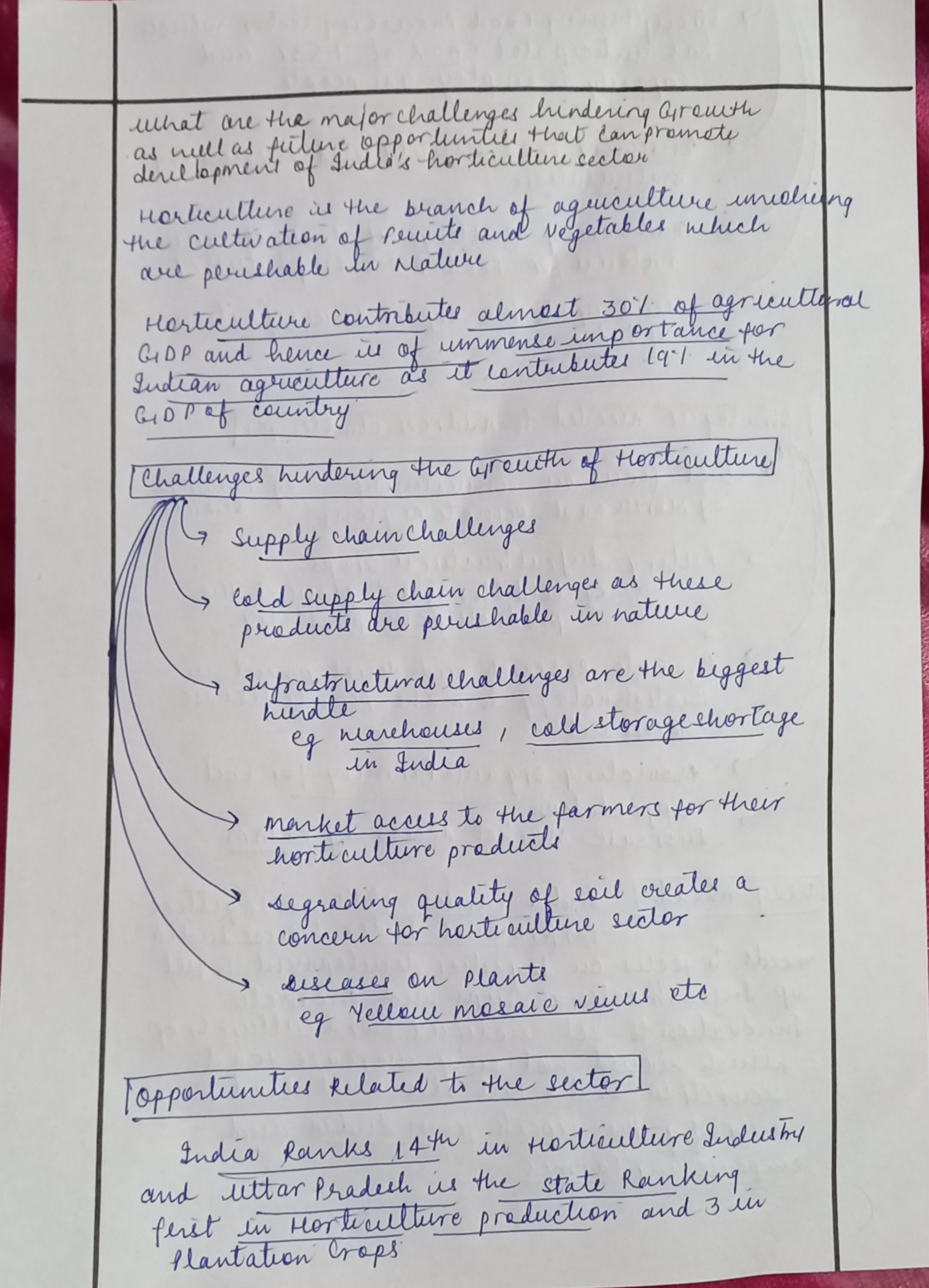- Conclusion: Summarize by emphasizing the potential of the horticulture sector in India’s economic growth and the need for integrated efforts to overcome challenges and leverage opportunities for development.