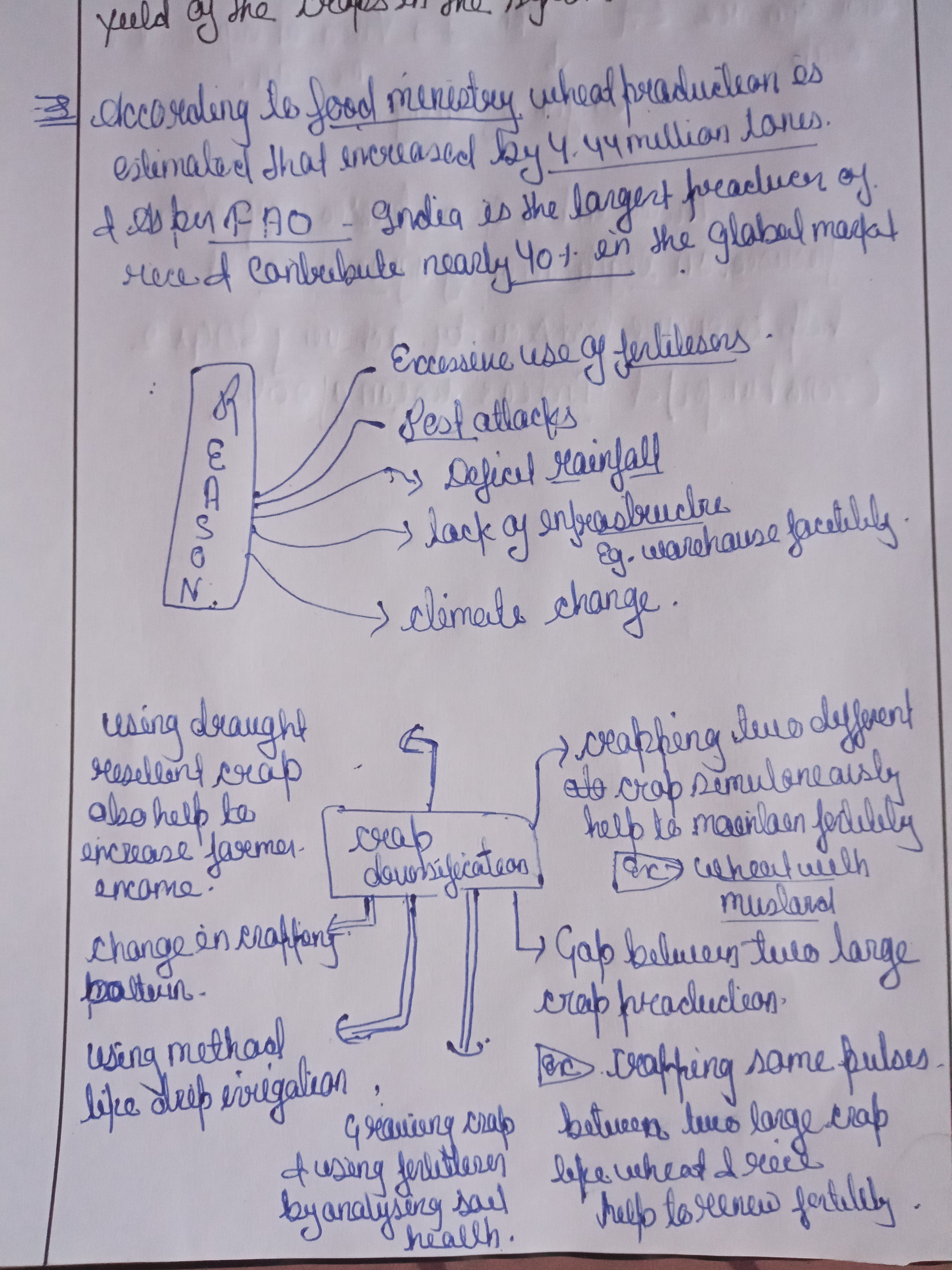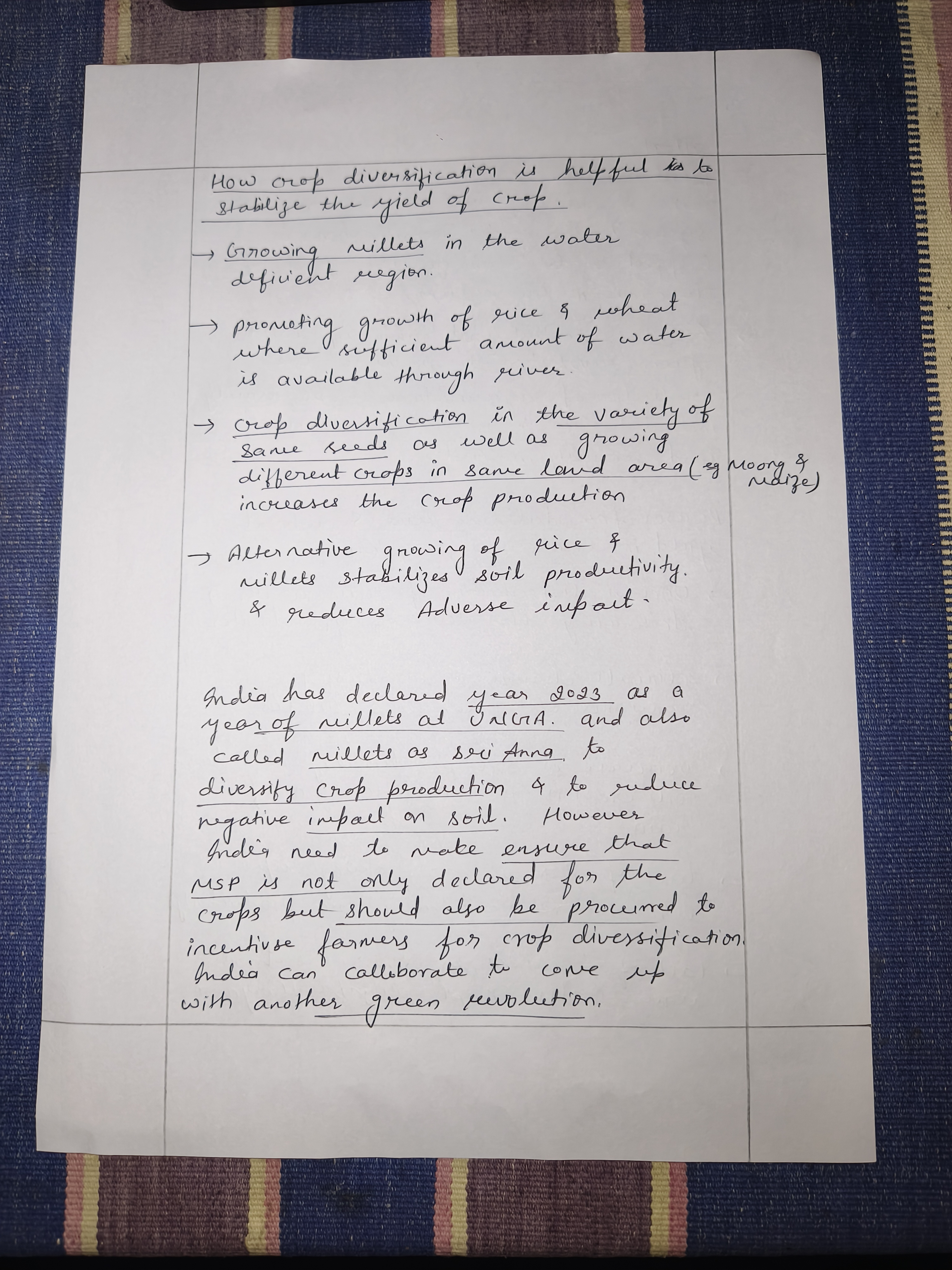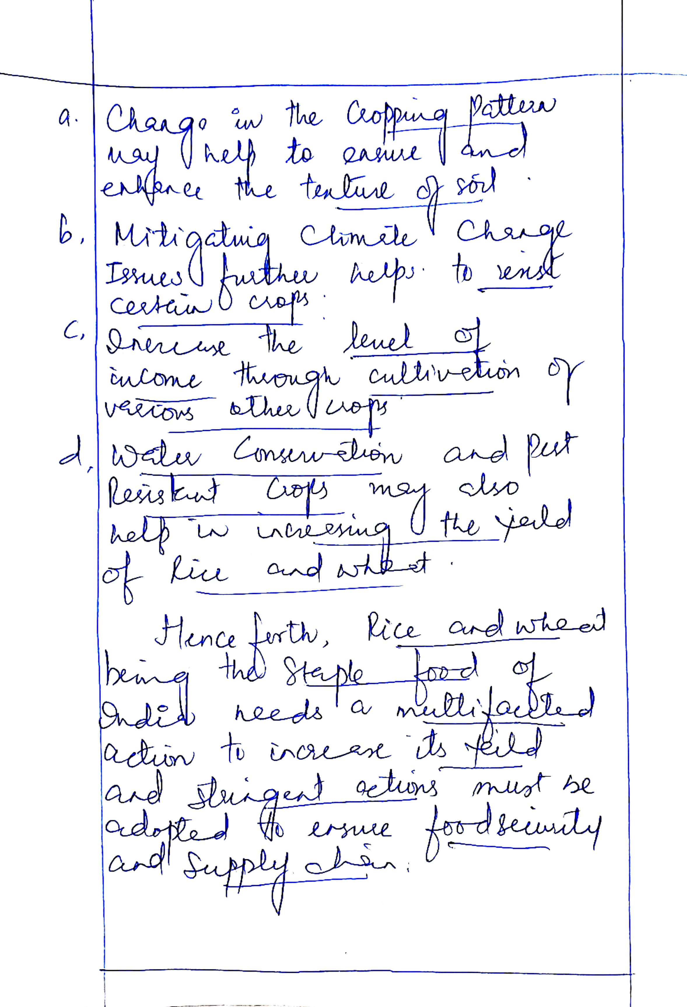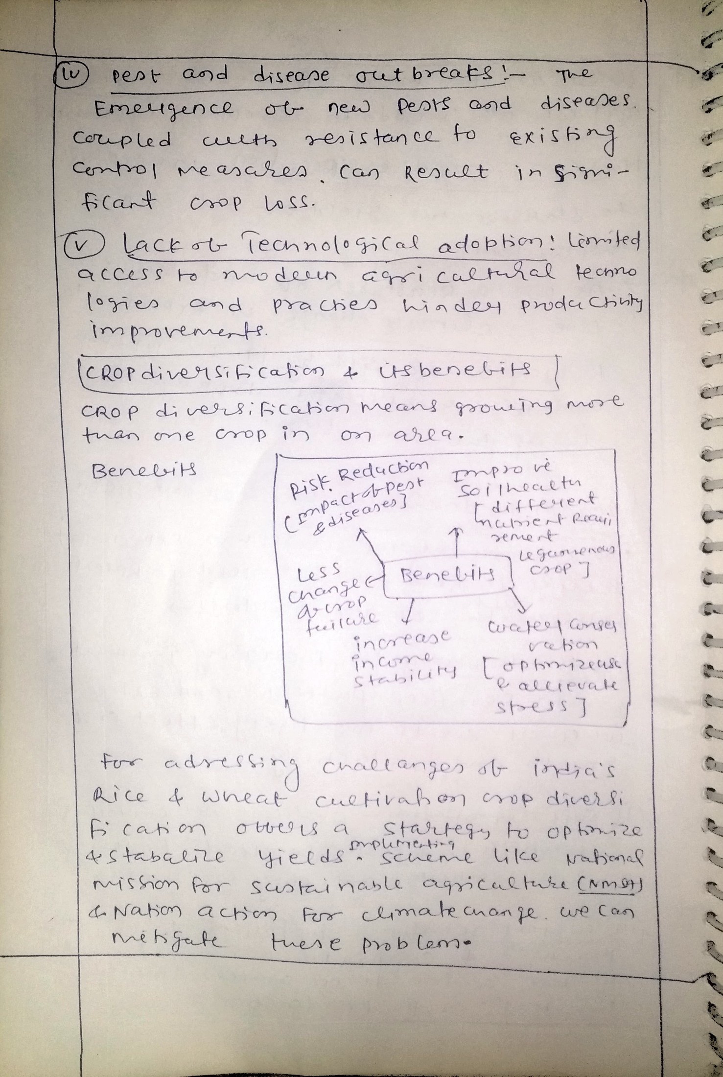Q. What are the major reasons for declining rice and wheat yield in the cropping system? How crop diversification is helpful is to stabilize the yield of the crops in the system? (150 Words. 10 Marks)
