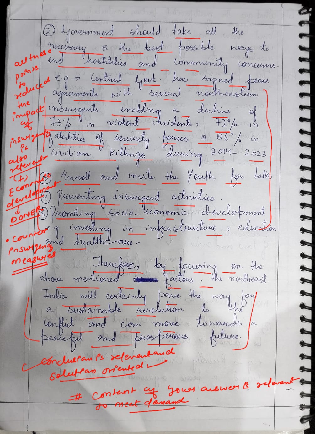 - Highlight the decline in insurgency, government initiatives, structural changes, economic development, dialogue, and counter-insurgency measures.