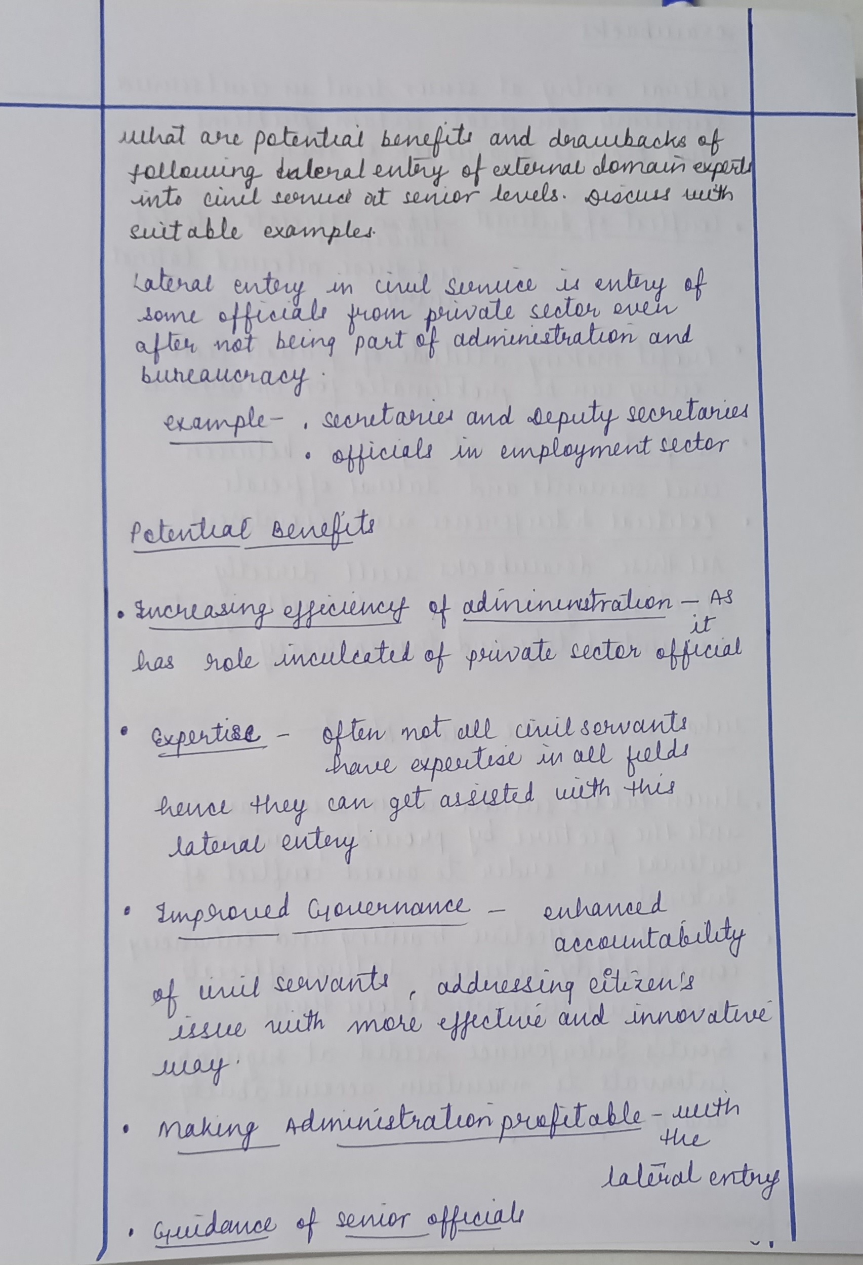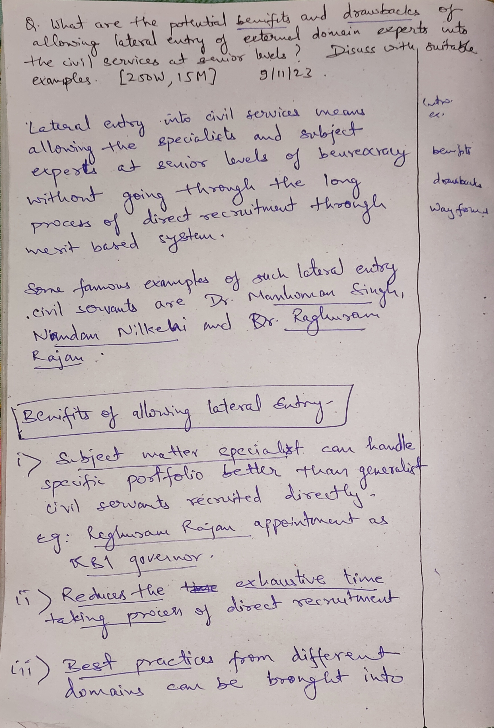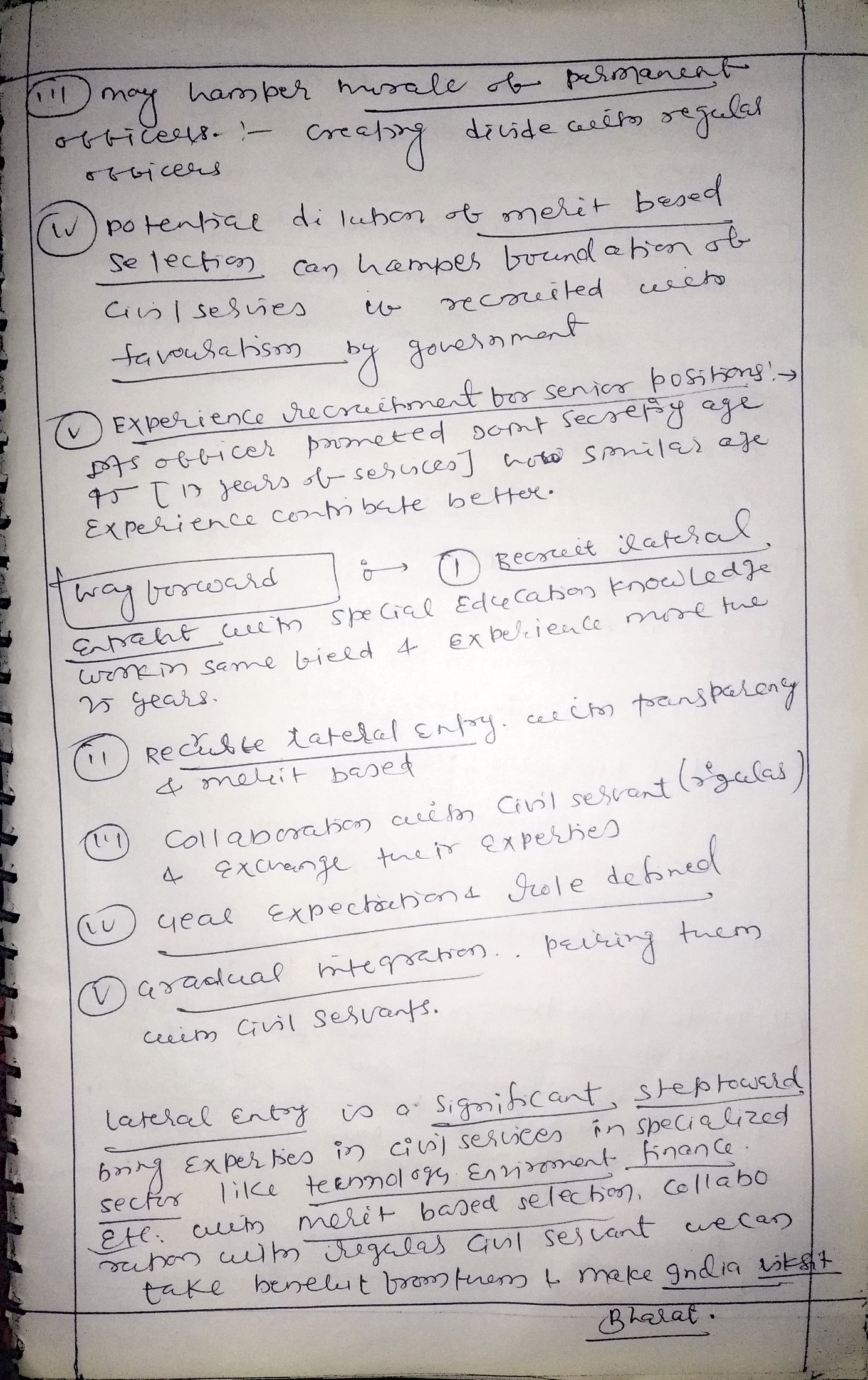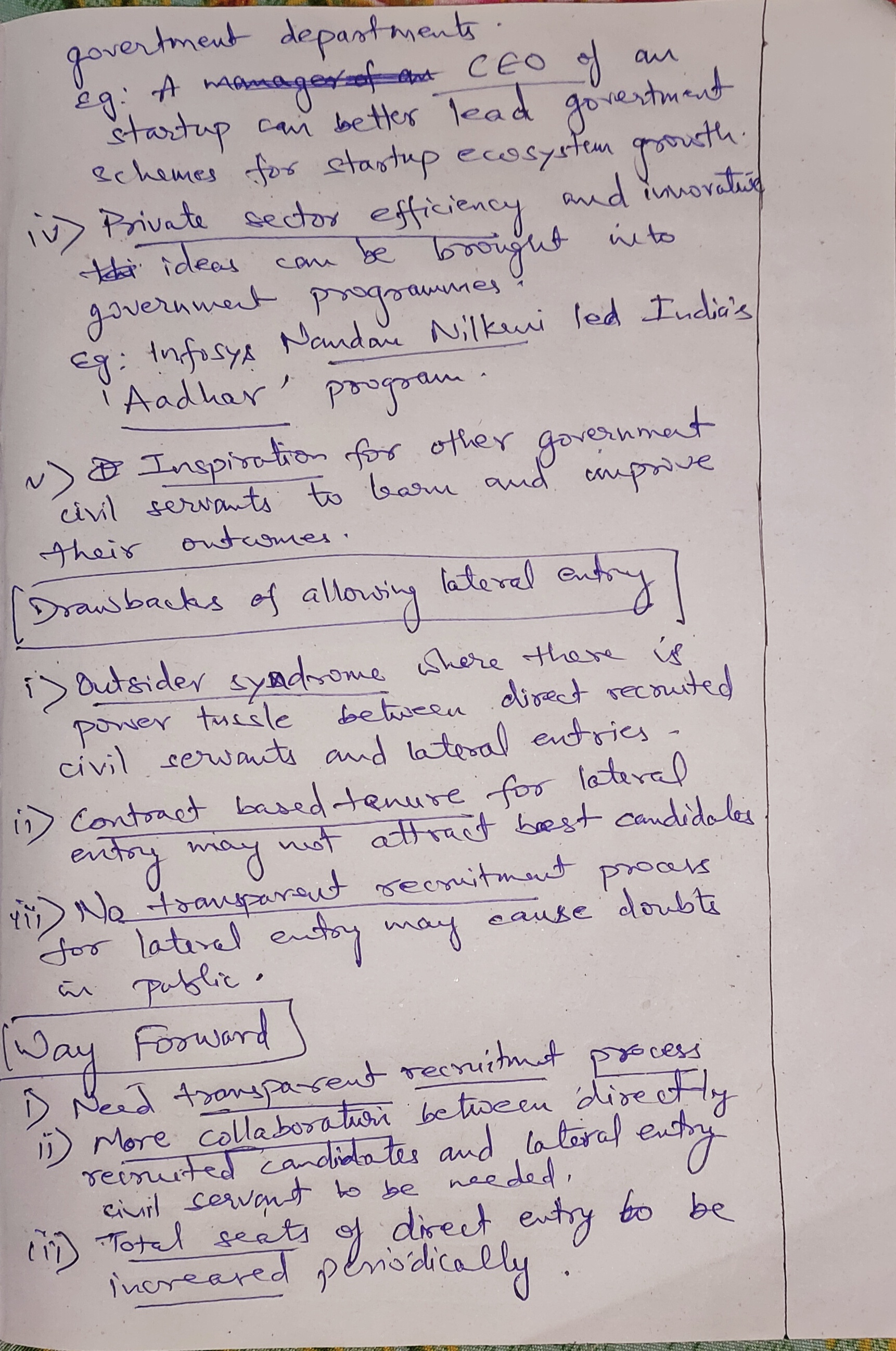 - Conclusion: Conclude by emphasizing the need for a nuanced approach to lateral entry, ensuring transparency, meritocracy, and clear accountability, while also preparing the existing bureaucracy for this change.