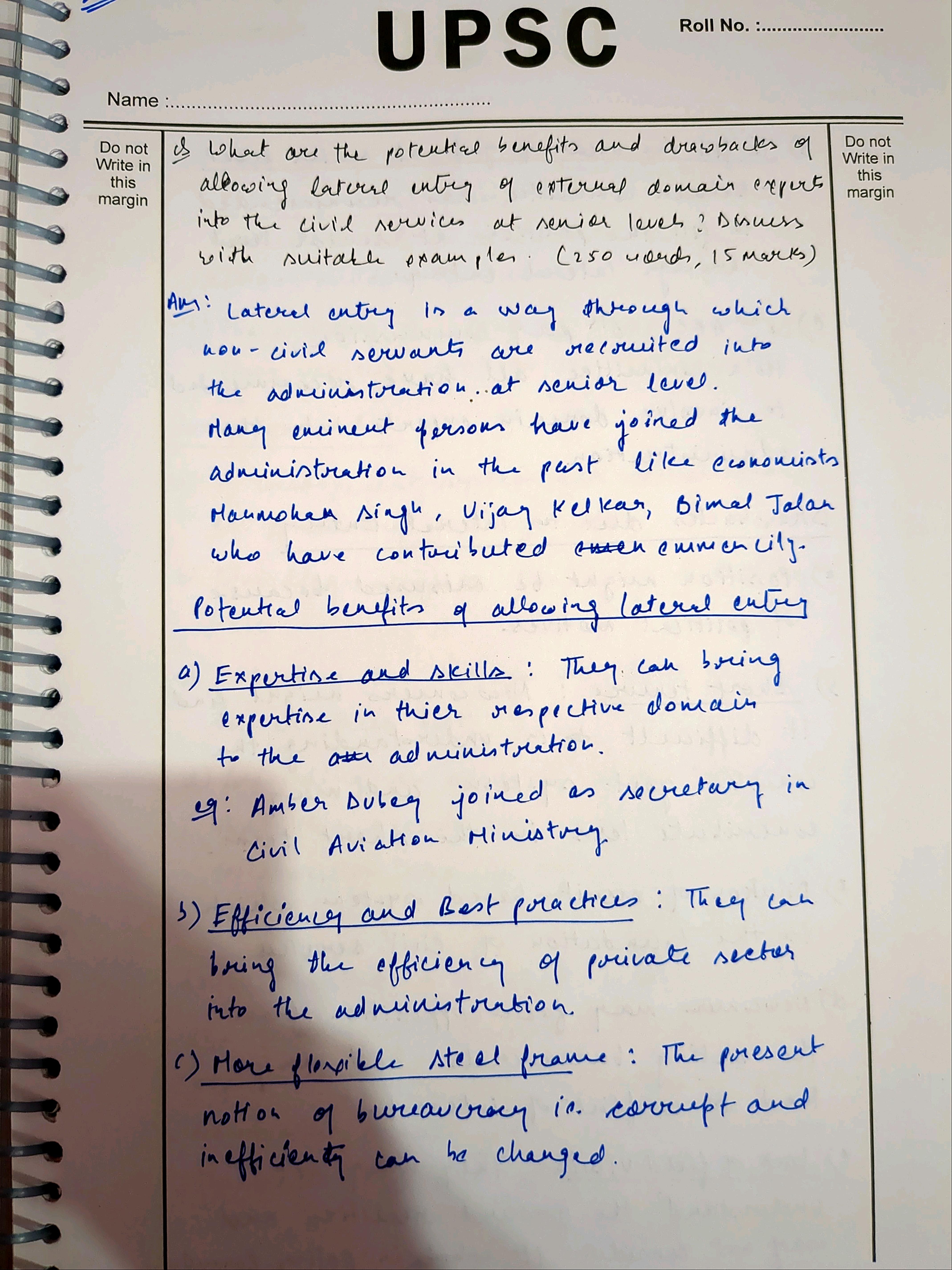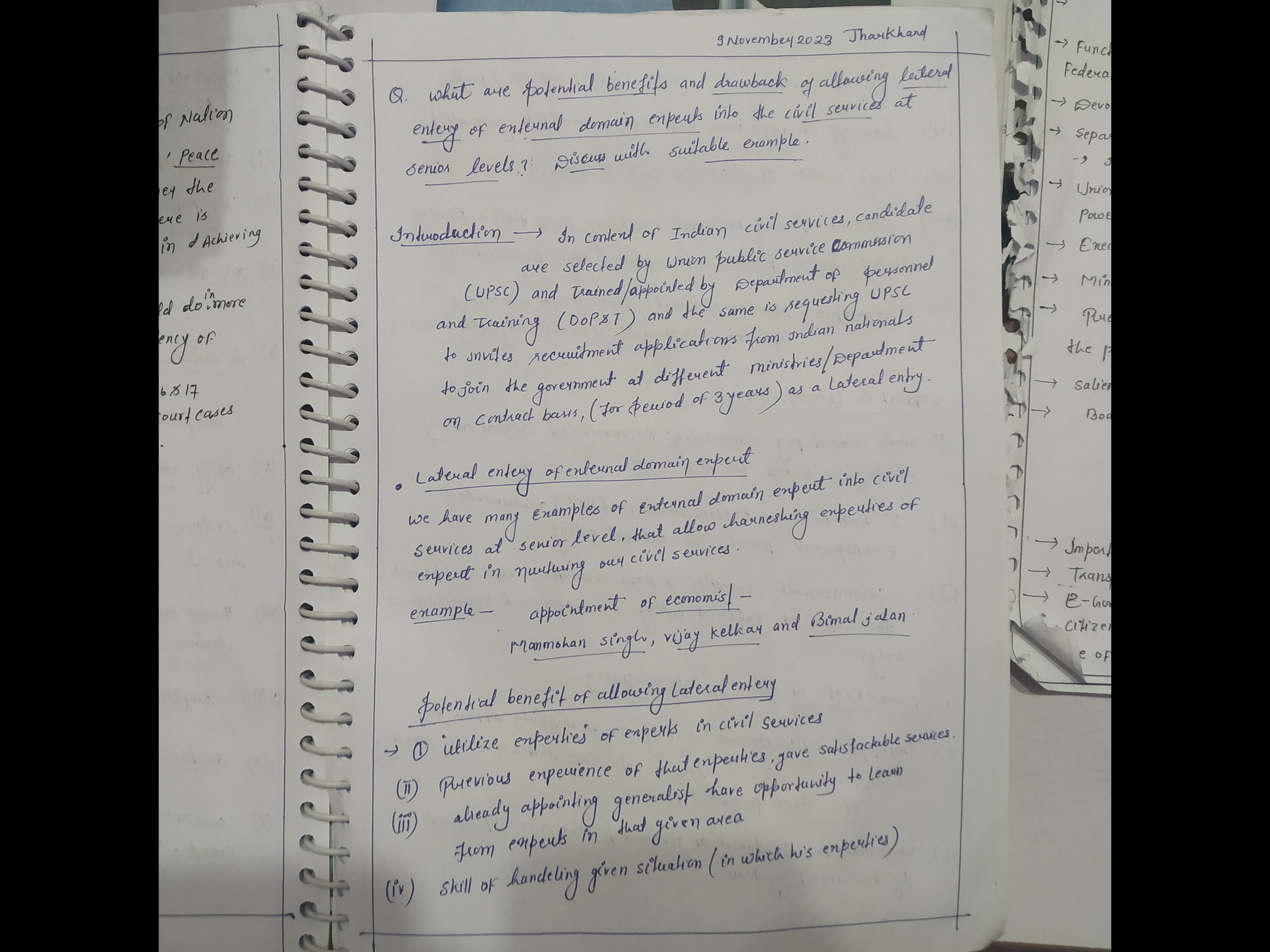- Introduction: Begin with an explanation of lateral entry in the civil services context, highlighting its intent to infuse specialized knowledge and skills at senior levels of bureaucracy.