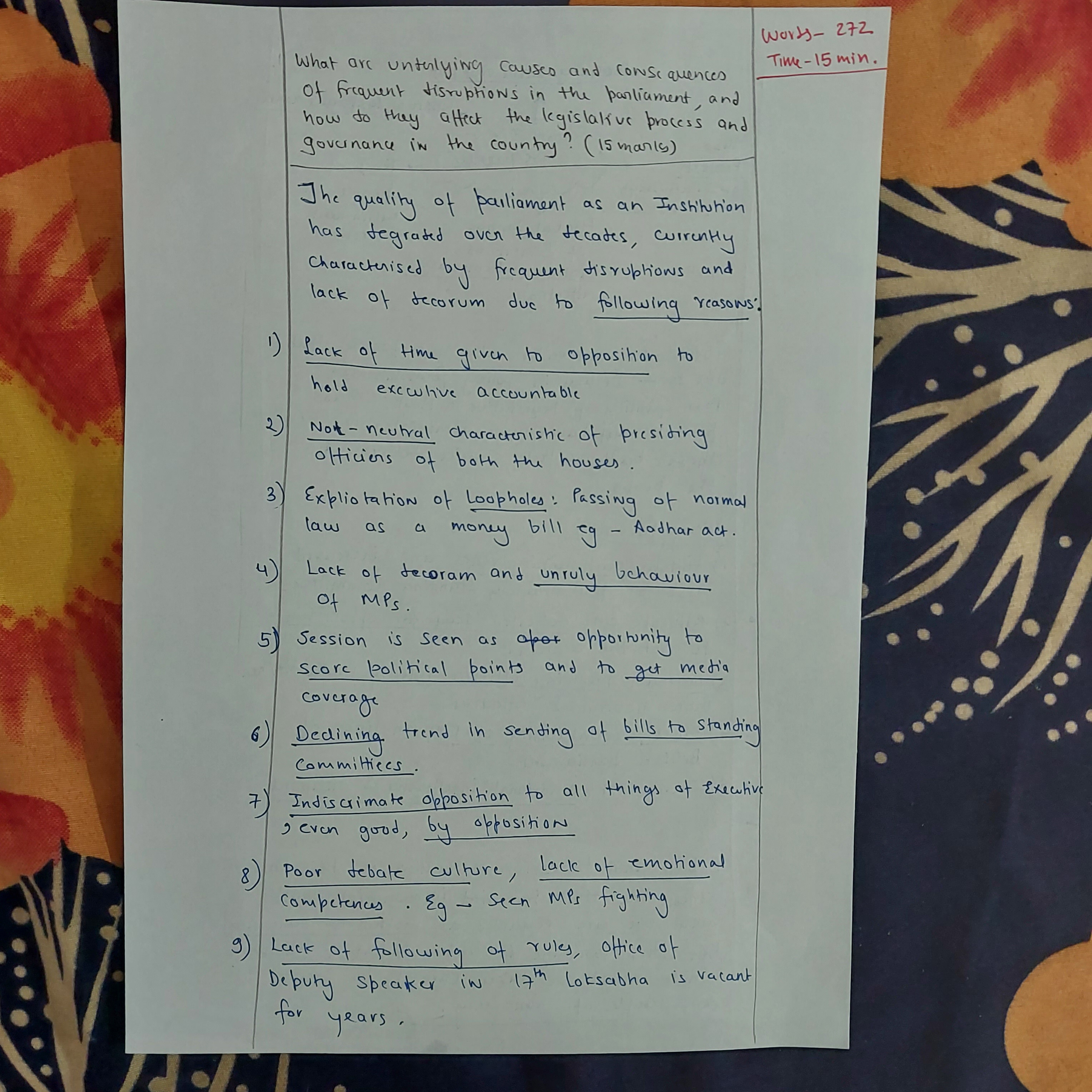 - Examine how these disturbances influence the overall law-making process and the quality of governance in the country.