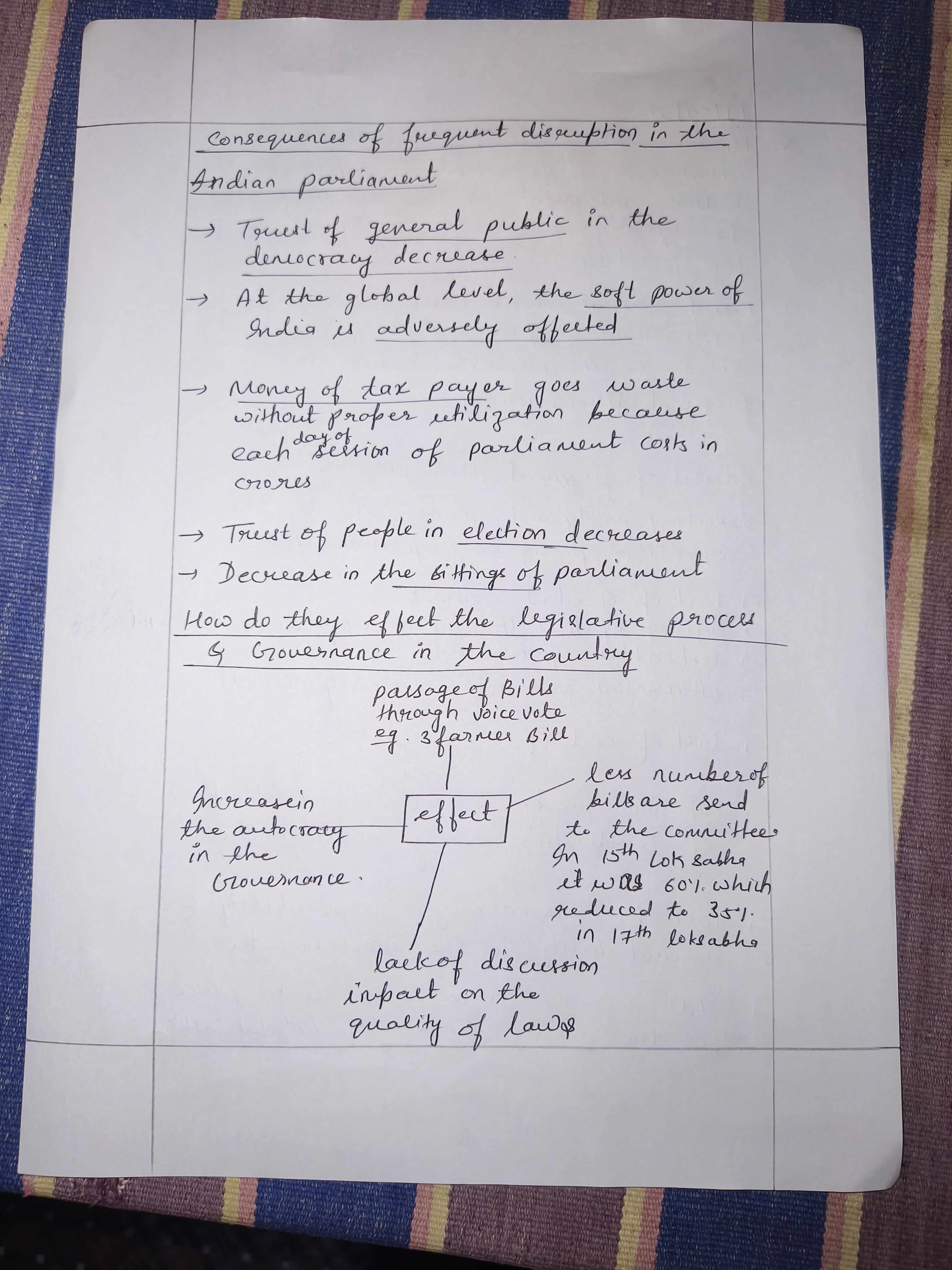 - Decline in Deliberative Politics: Disruptions prevent constructive debates, reducing the chance of refining bills through diverse inputs, potentially leading to suboptimal legislation.