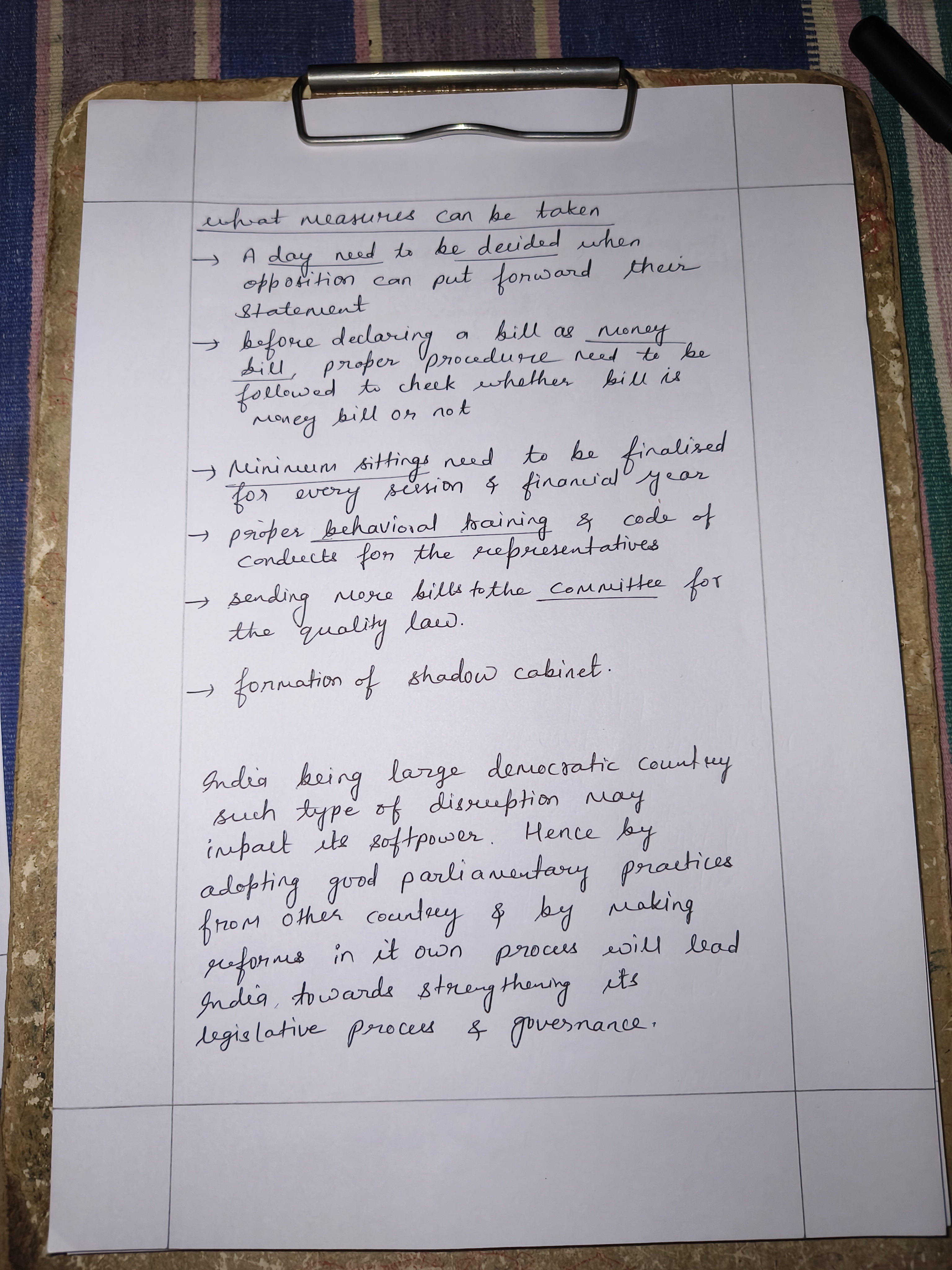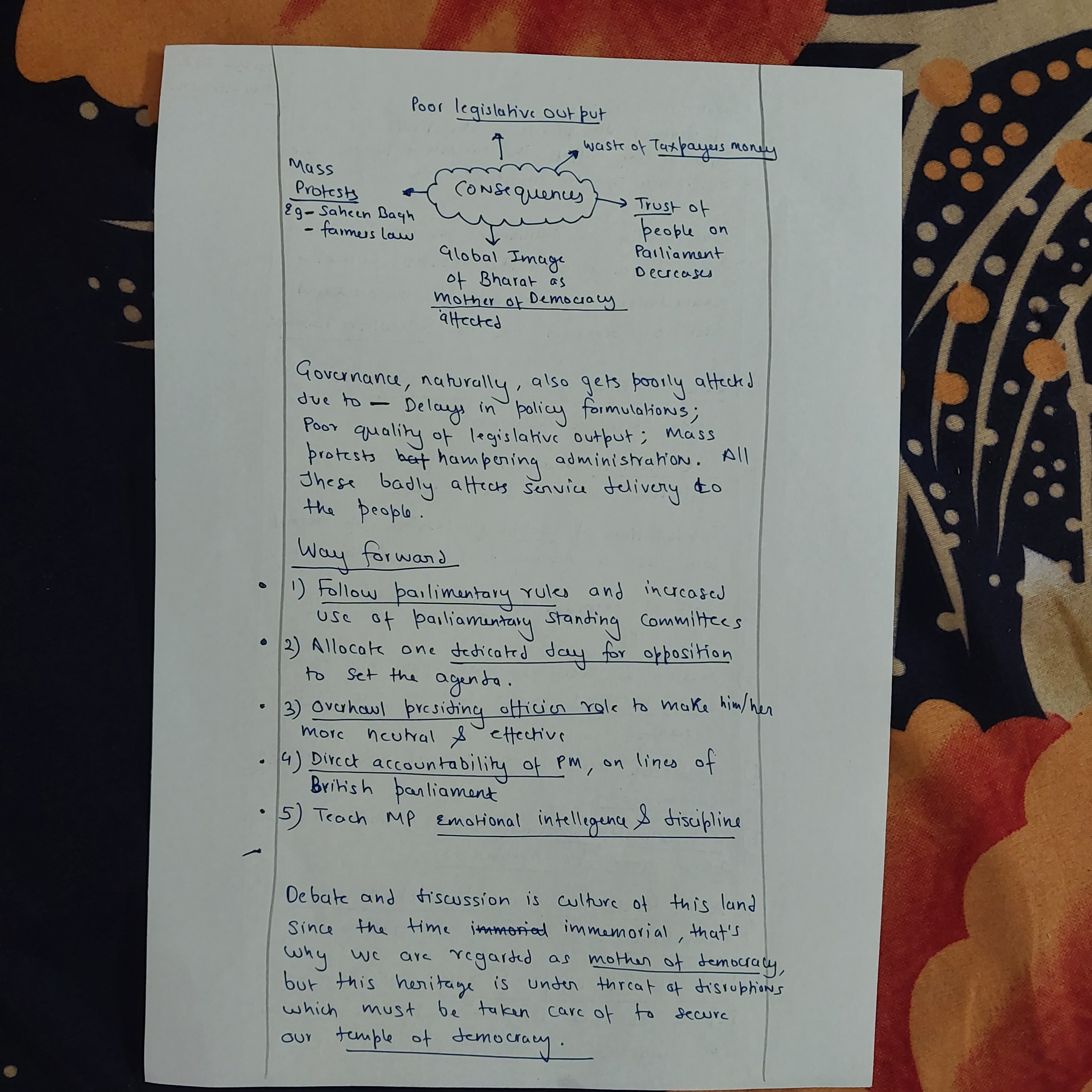 - Conclusion: Conclude, reinforcing the indispensability of a smoothly functioning Parliament for India’s democracy.