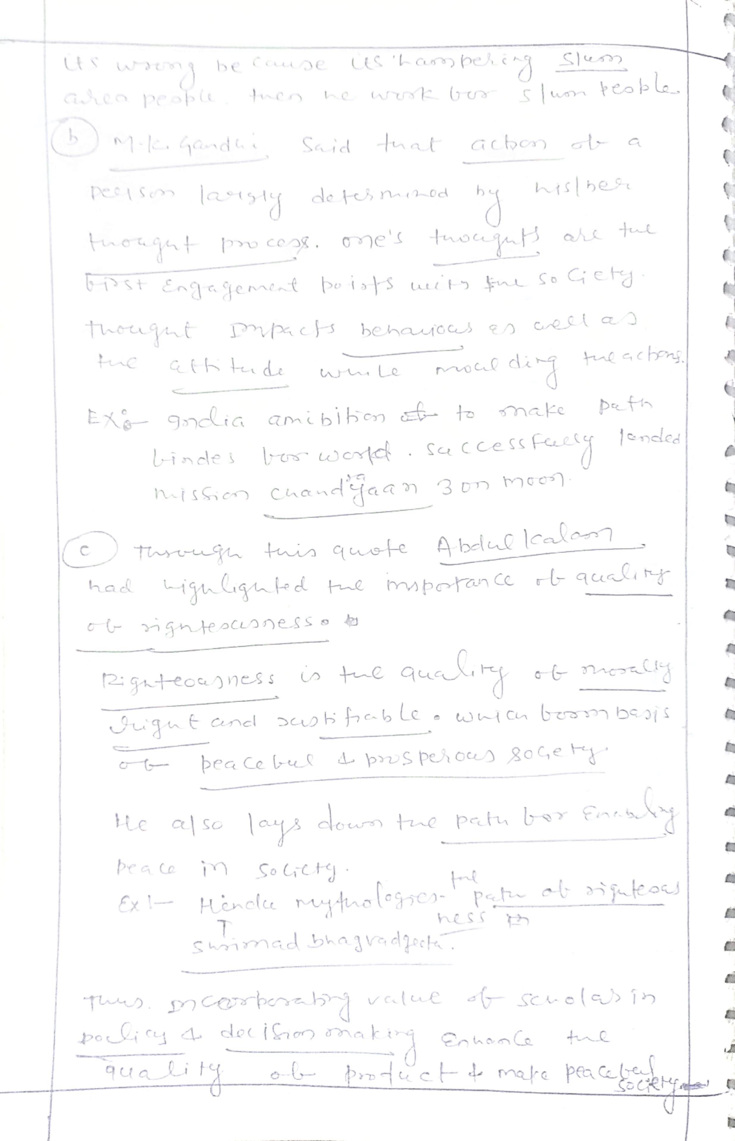 c. “Where there is righteousness in the heart, there is beauty in the character. When there is beauty in the character, there is harmony in the home. When there is harmony in the home, there is order in the nation. When there is order in the nation, there is peace in the world” – A.P.J. Abdul Kalam
