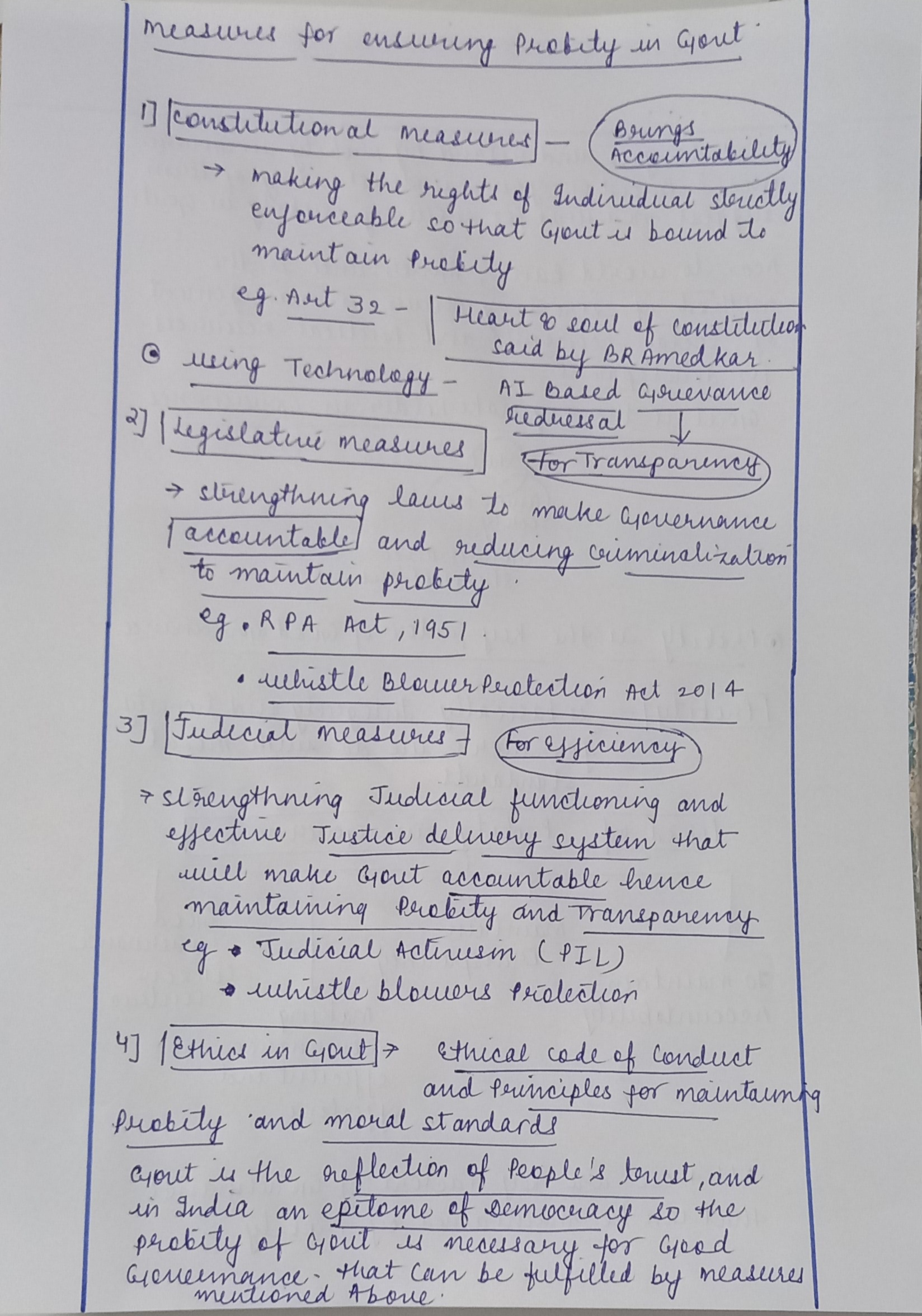 Measures for ensuring probity in government in India: