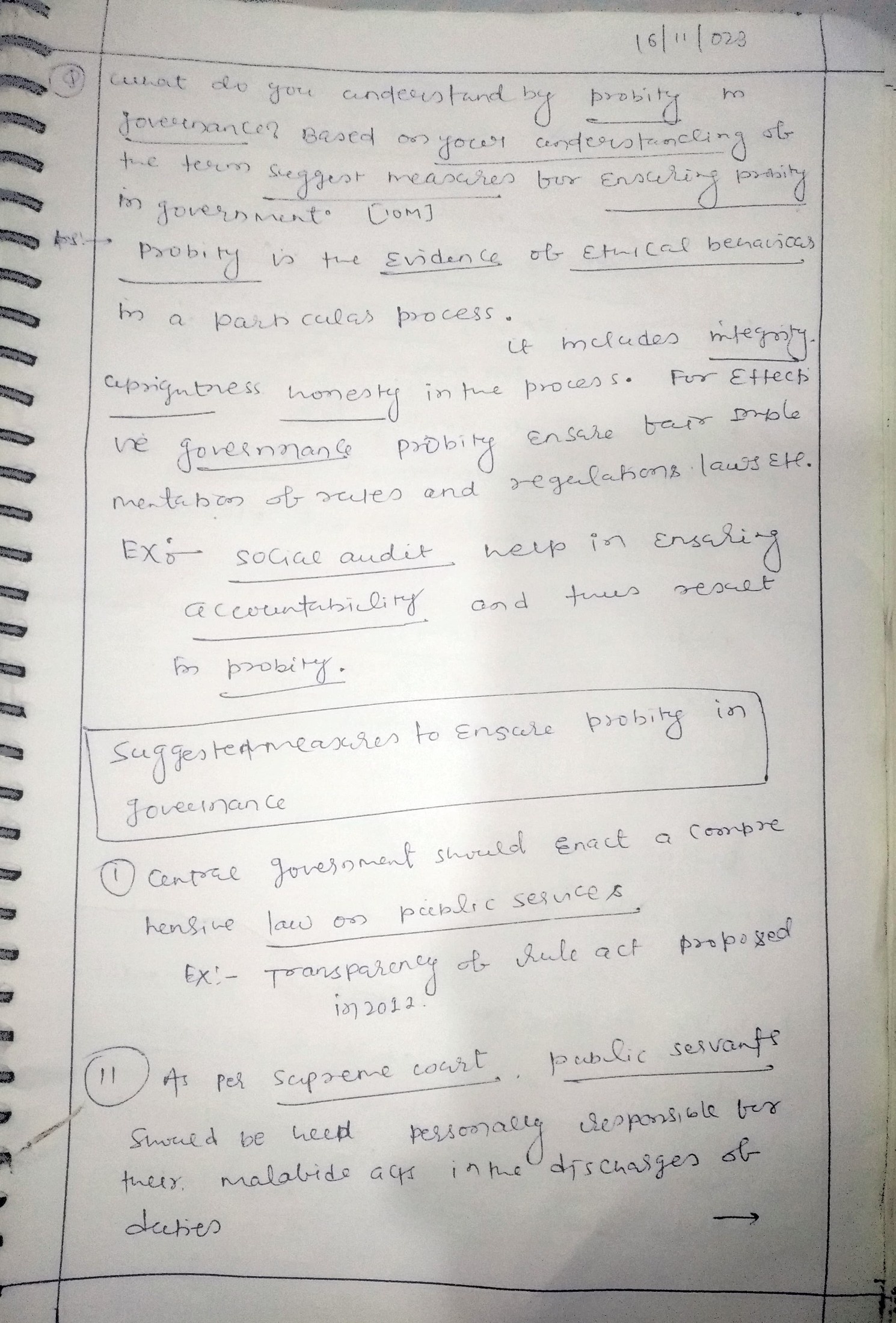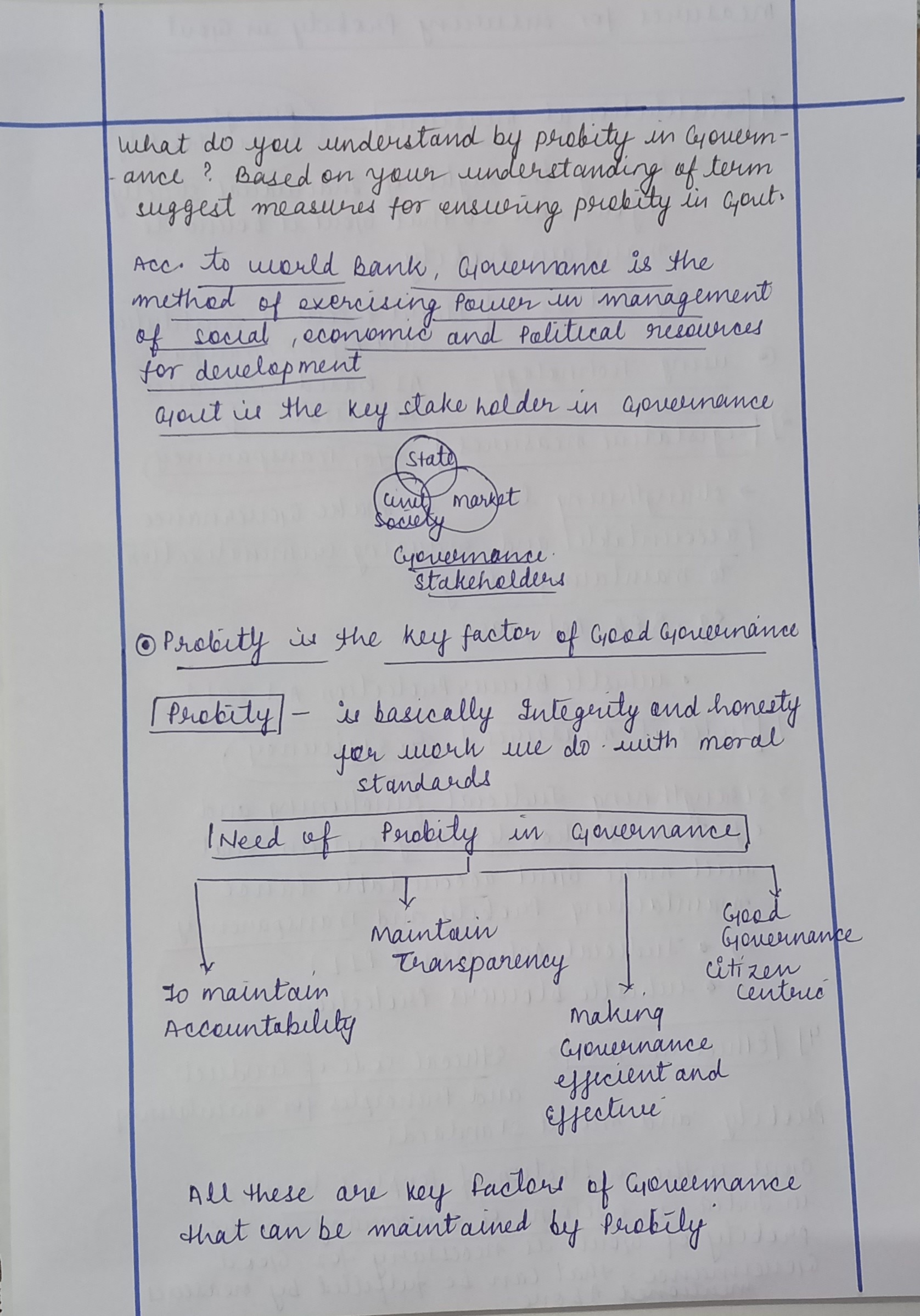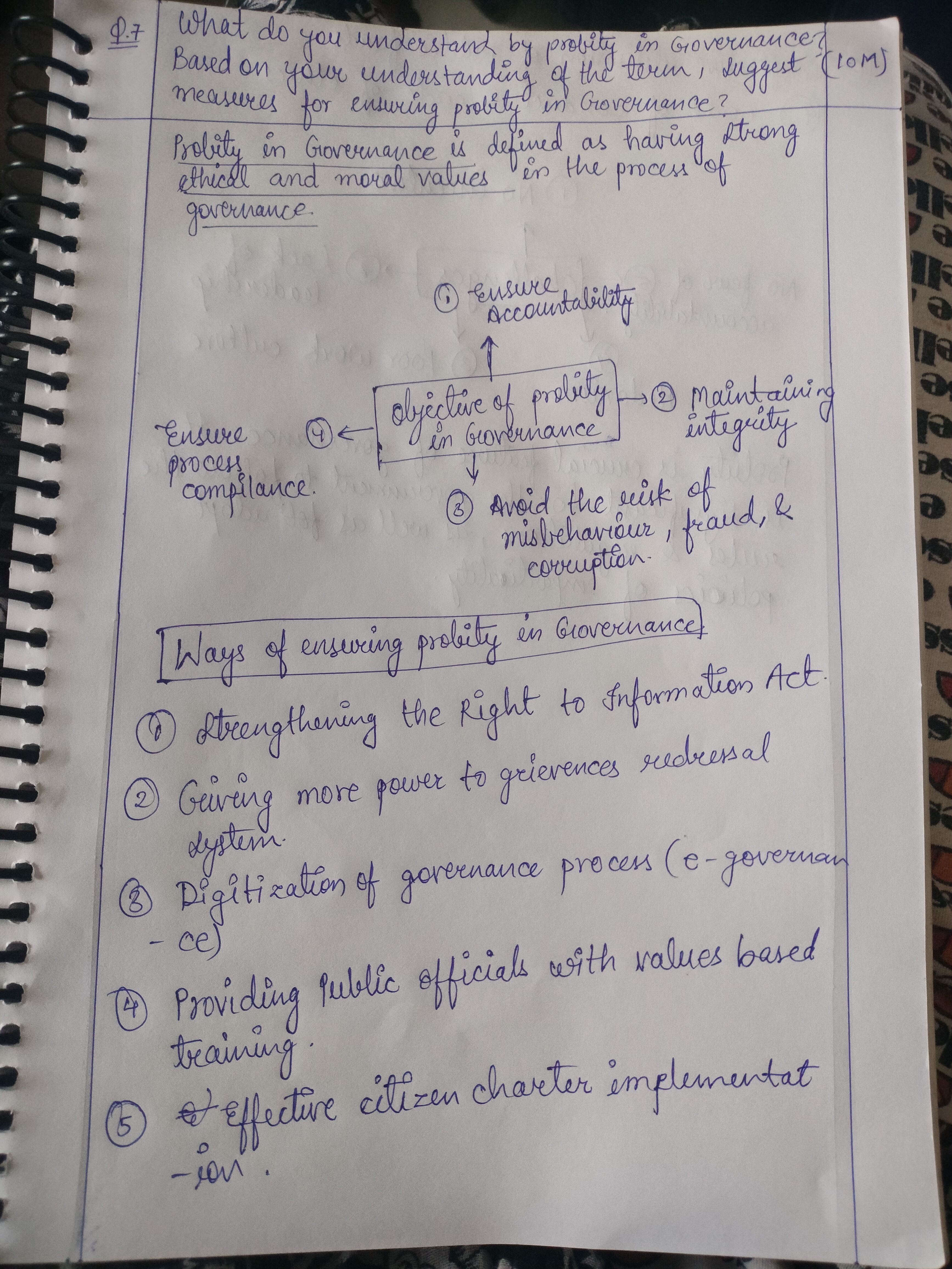 Q. What do you understand by probity in governance? Based on your understanding of the term, suggest measures for ensuring probity in government. (150 words, 10 Marks)
