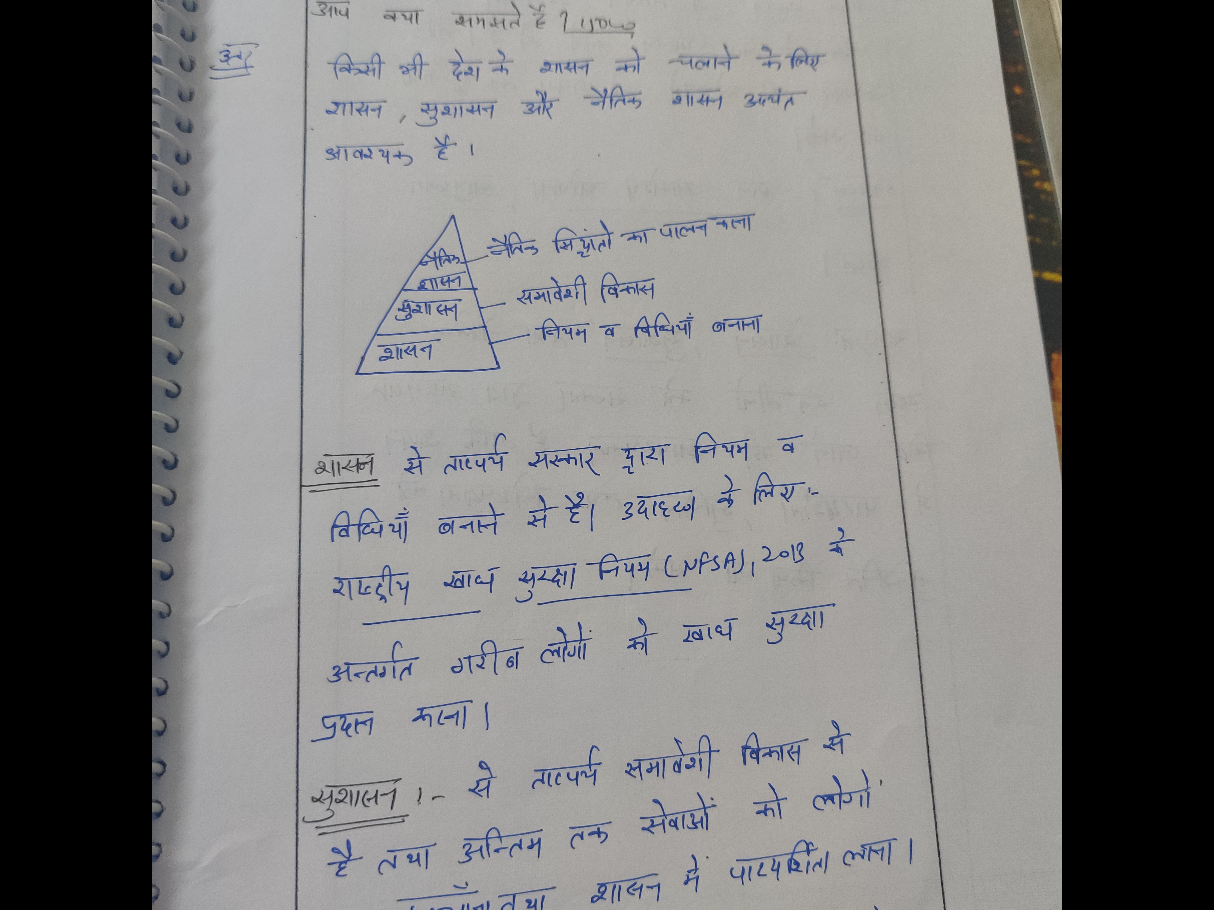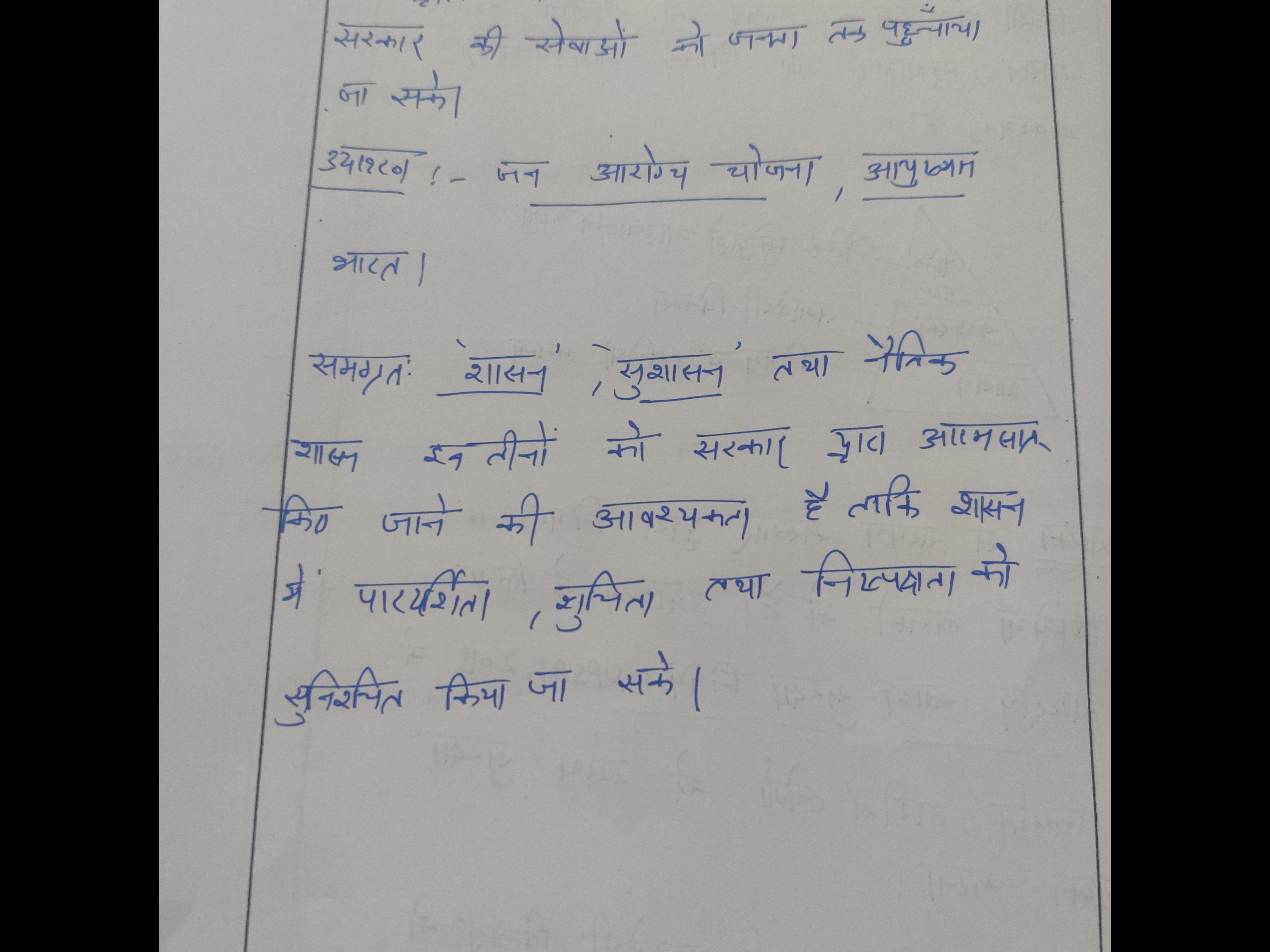 Q. 'शासन', 'सुशासन' और 'नैतिक शासन' शब्दों से आप क्या समझते हैं? (150 शब्द, 10 अंक)