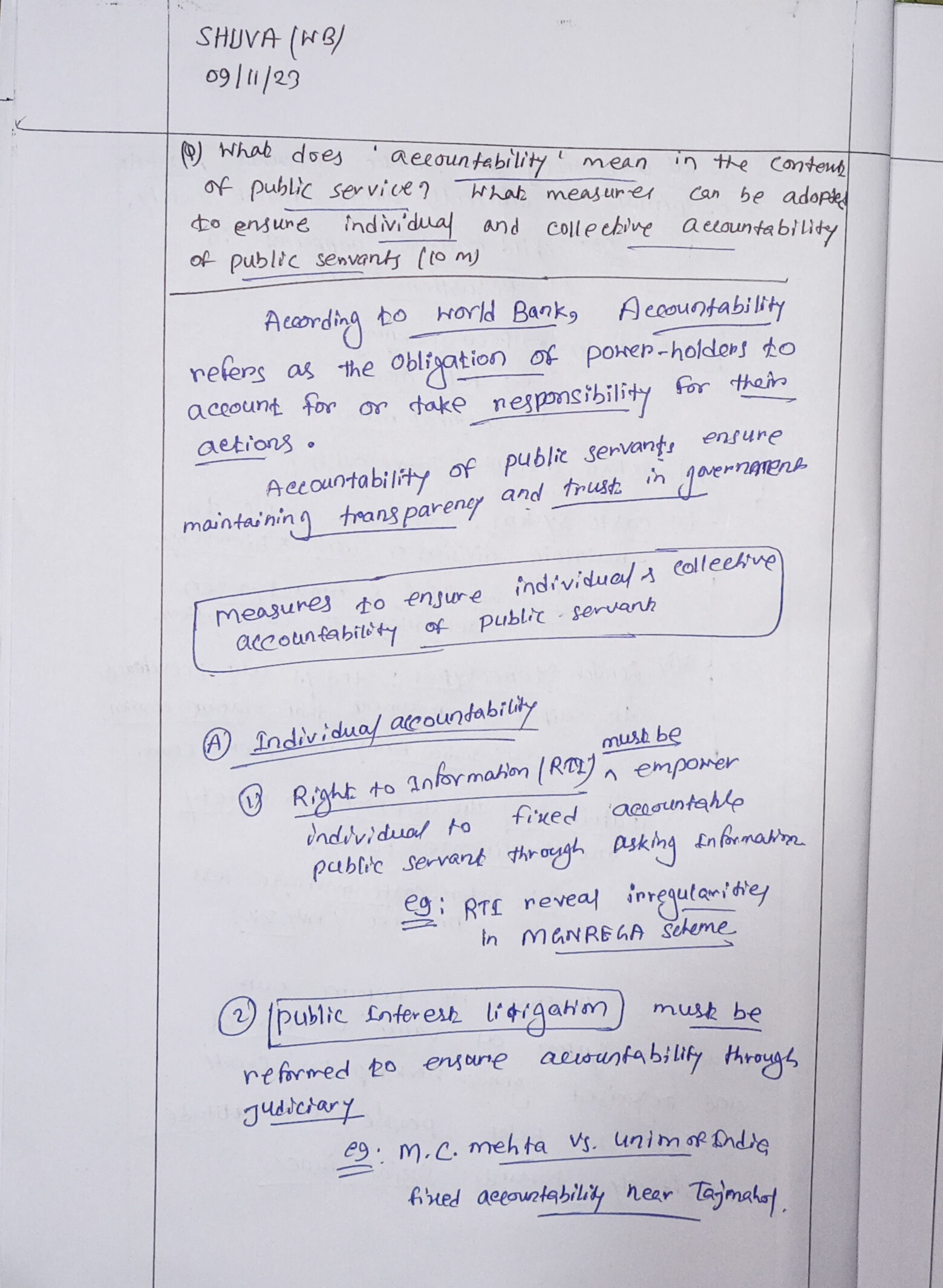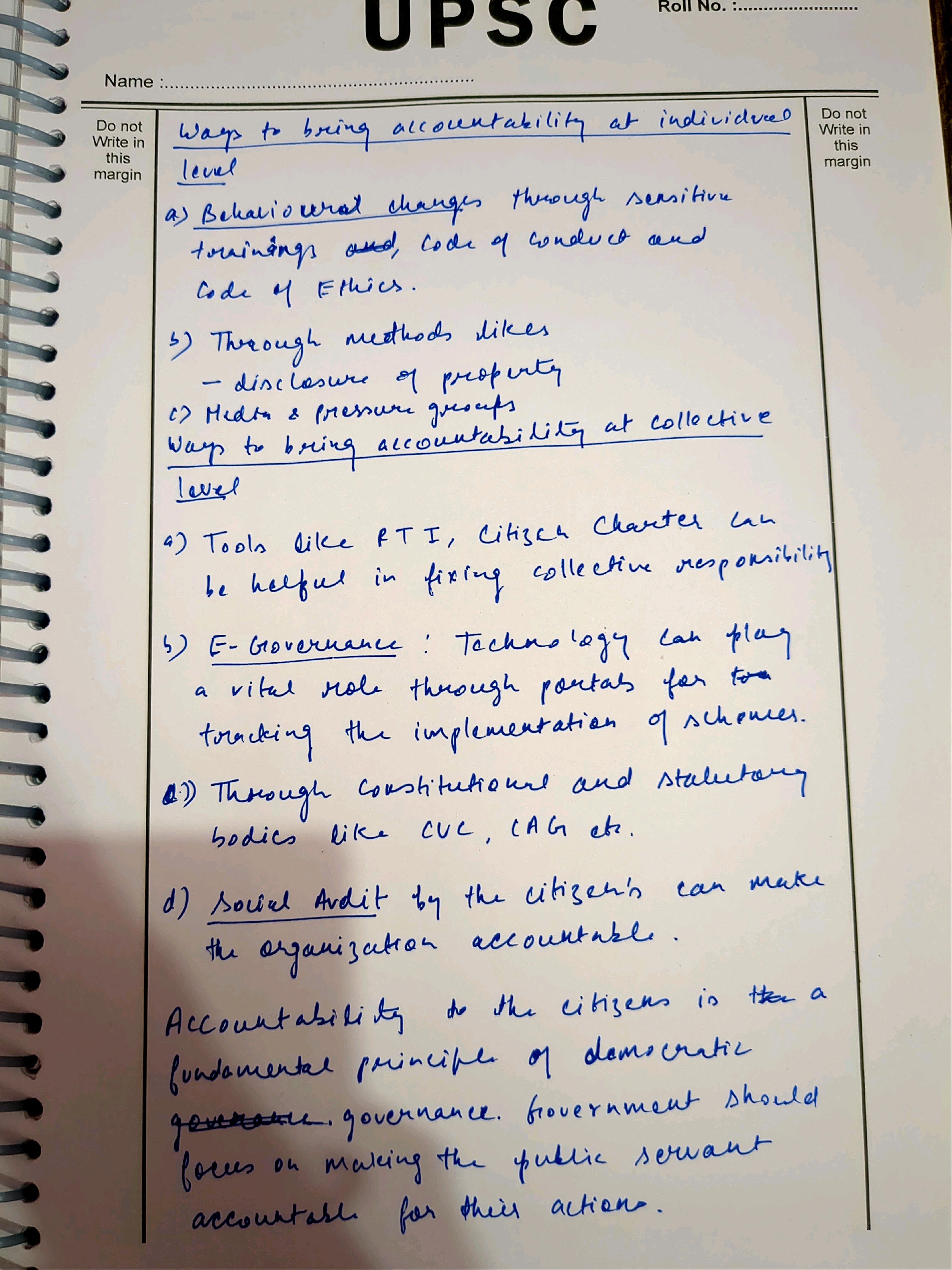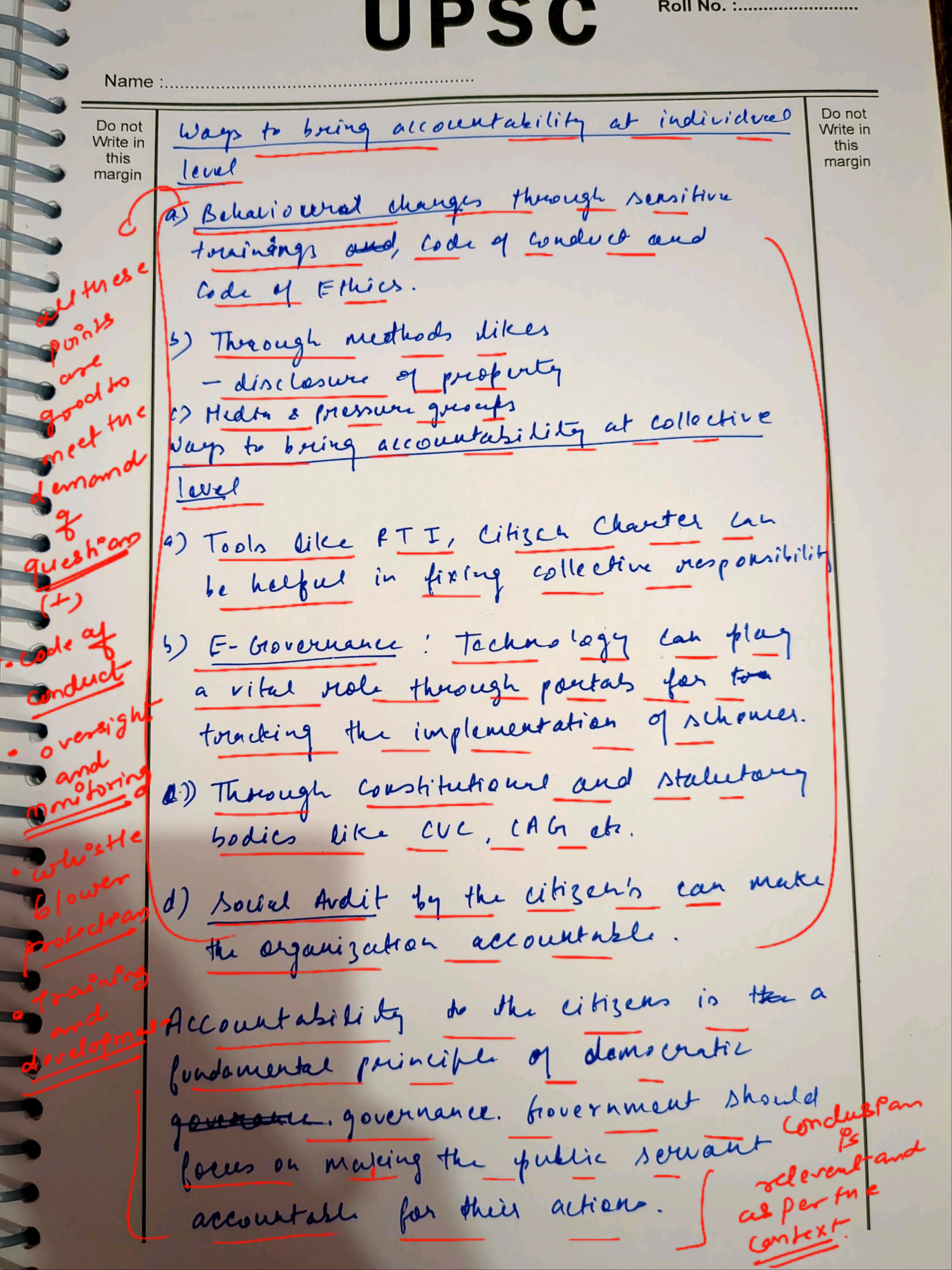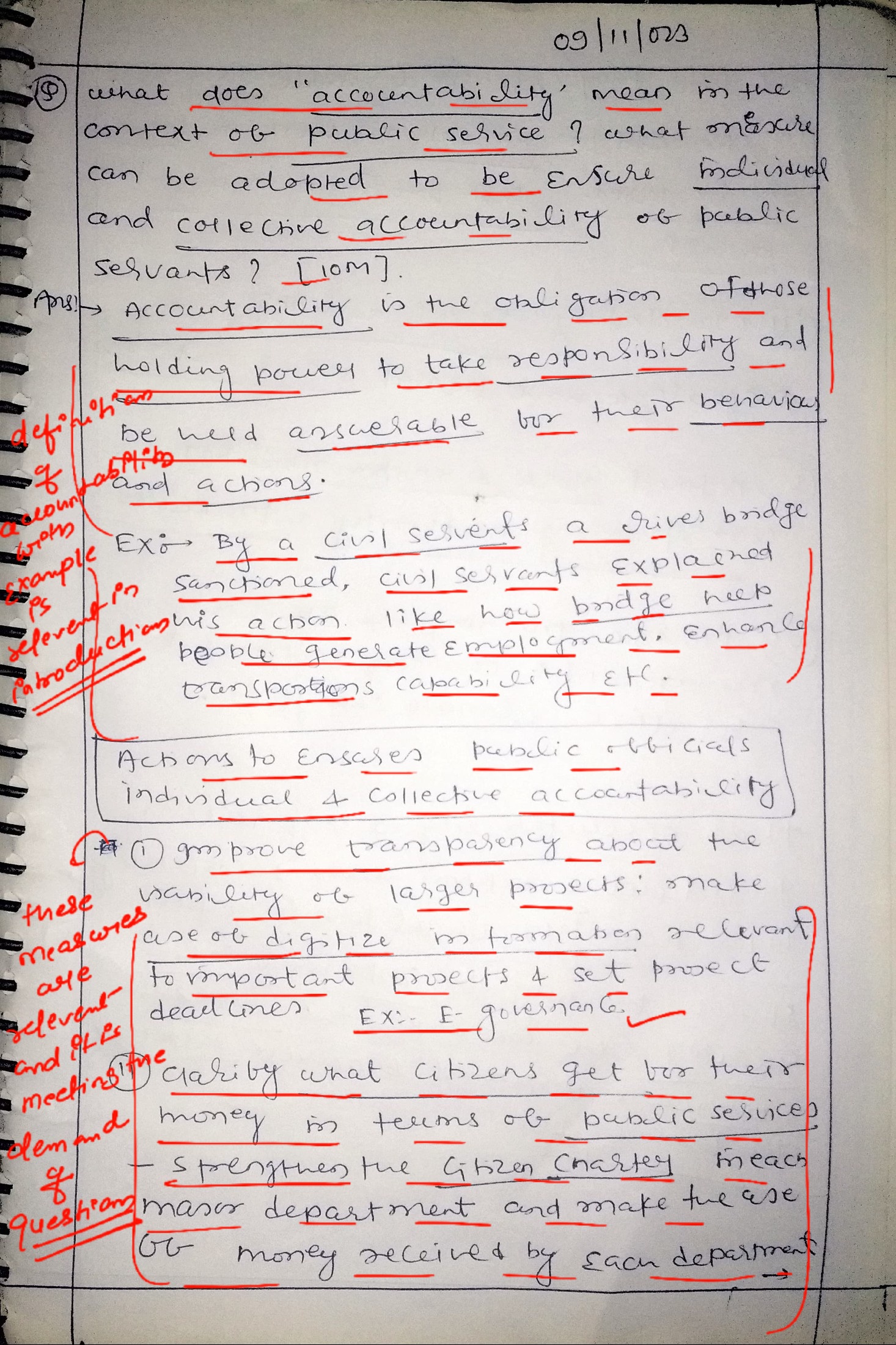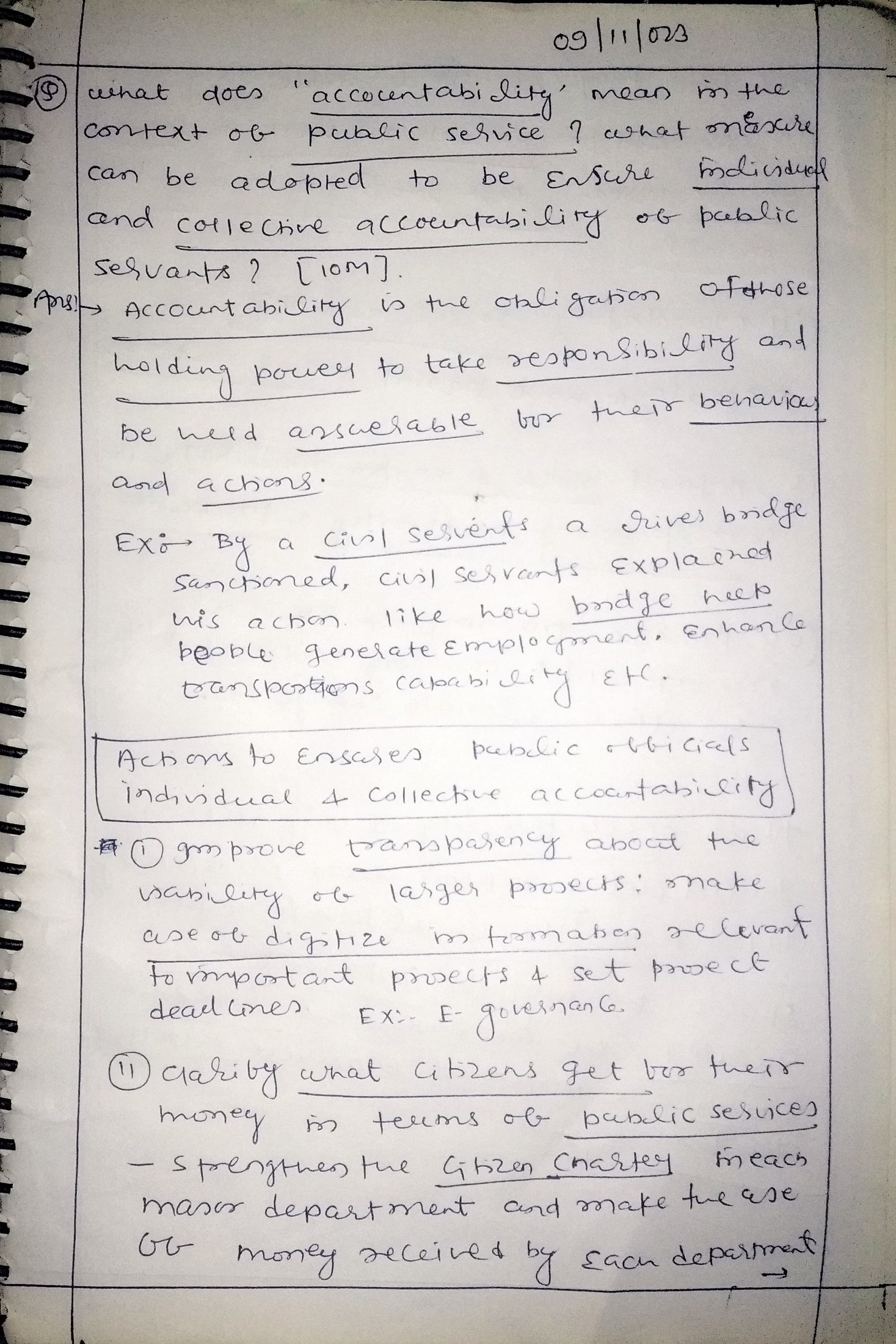 - Explain the steps to be taken to ensure individual and collective accountability of public servants along with proper substantiation.