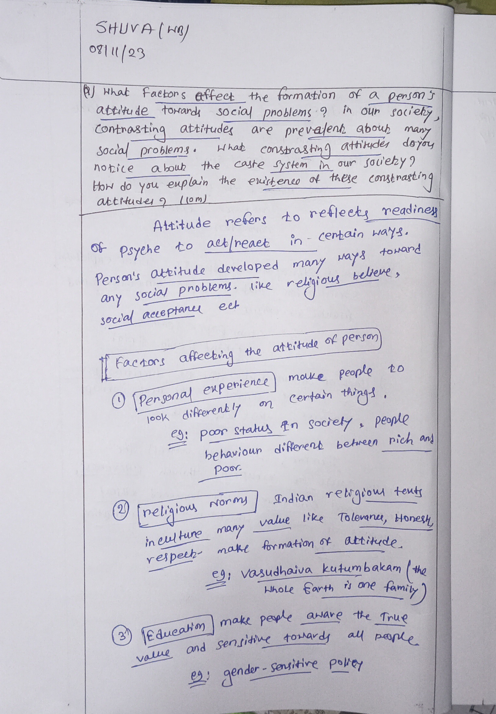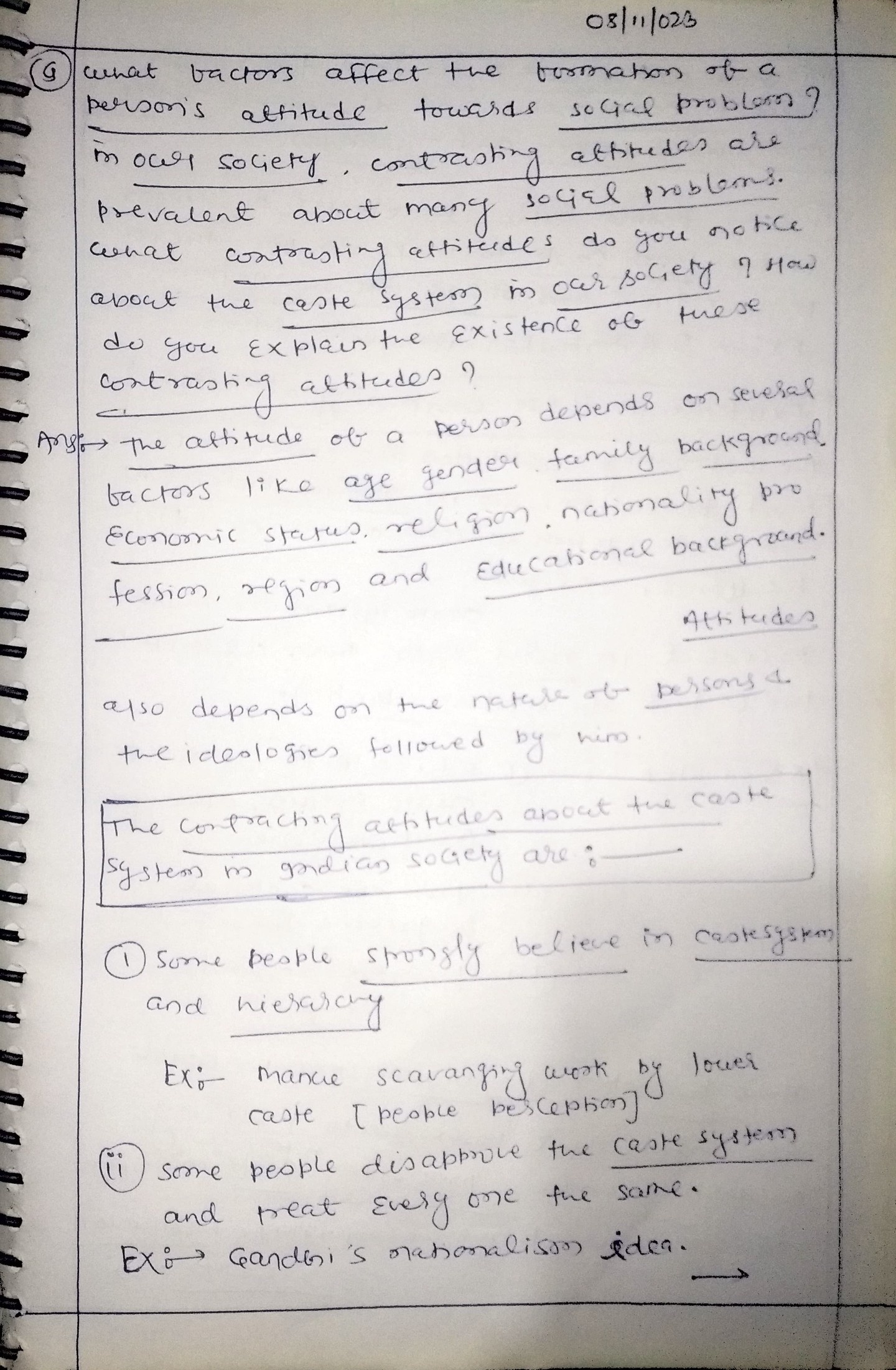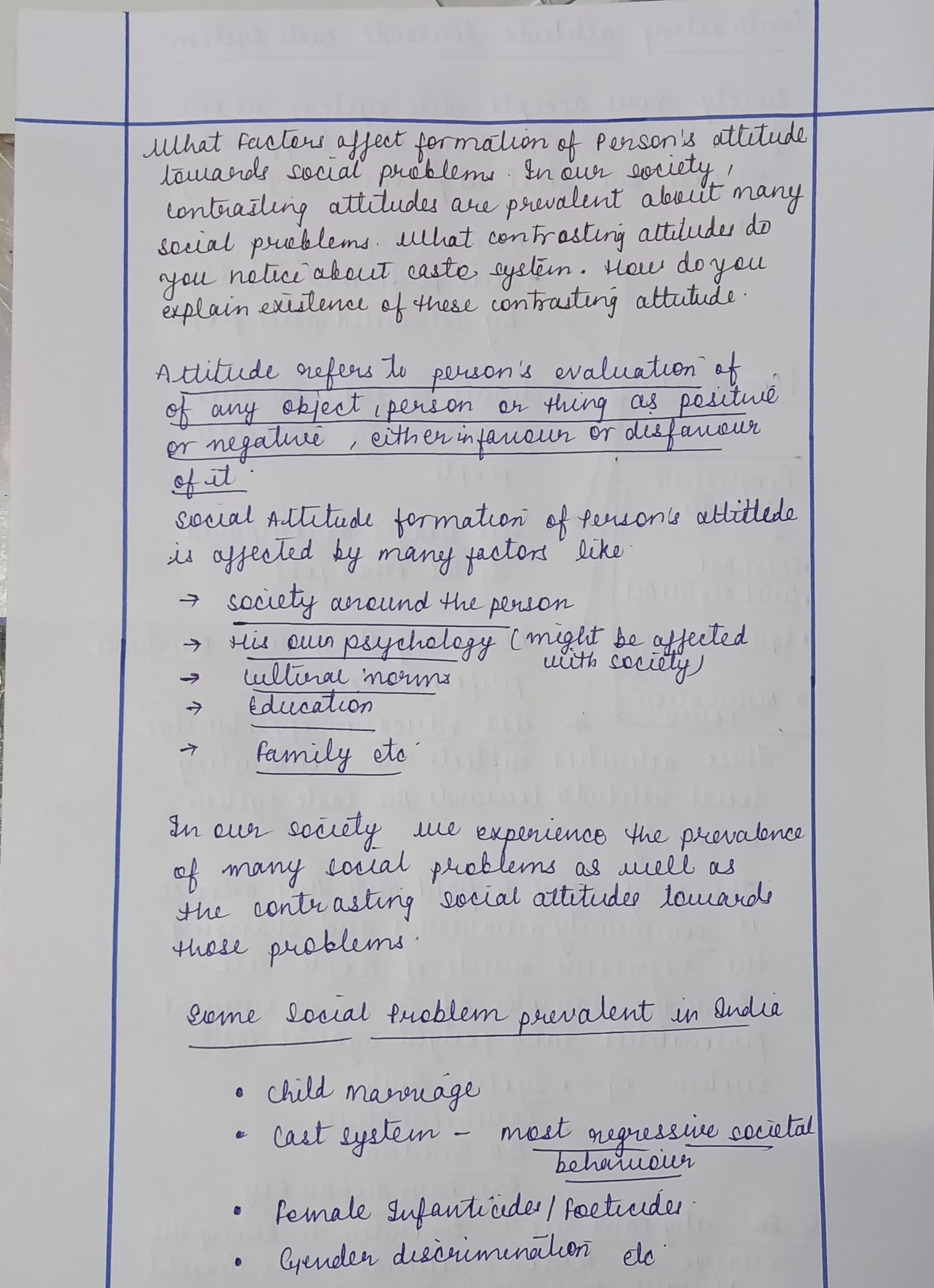 In conclusion, the formation of attitudes towards social problems is complex and influenced by various factors. Contrasting attitudes towards the caste system in Indian society can be attributed to the influence of cultural and societal norms, personal experiences, and education. It is essential to promote education and awareness to address social problems and promote a more equitable and just society.