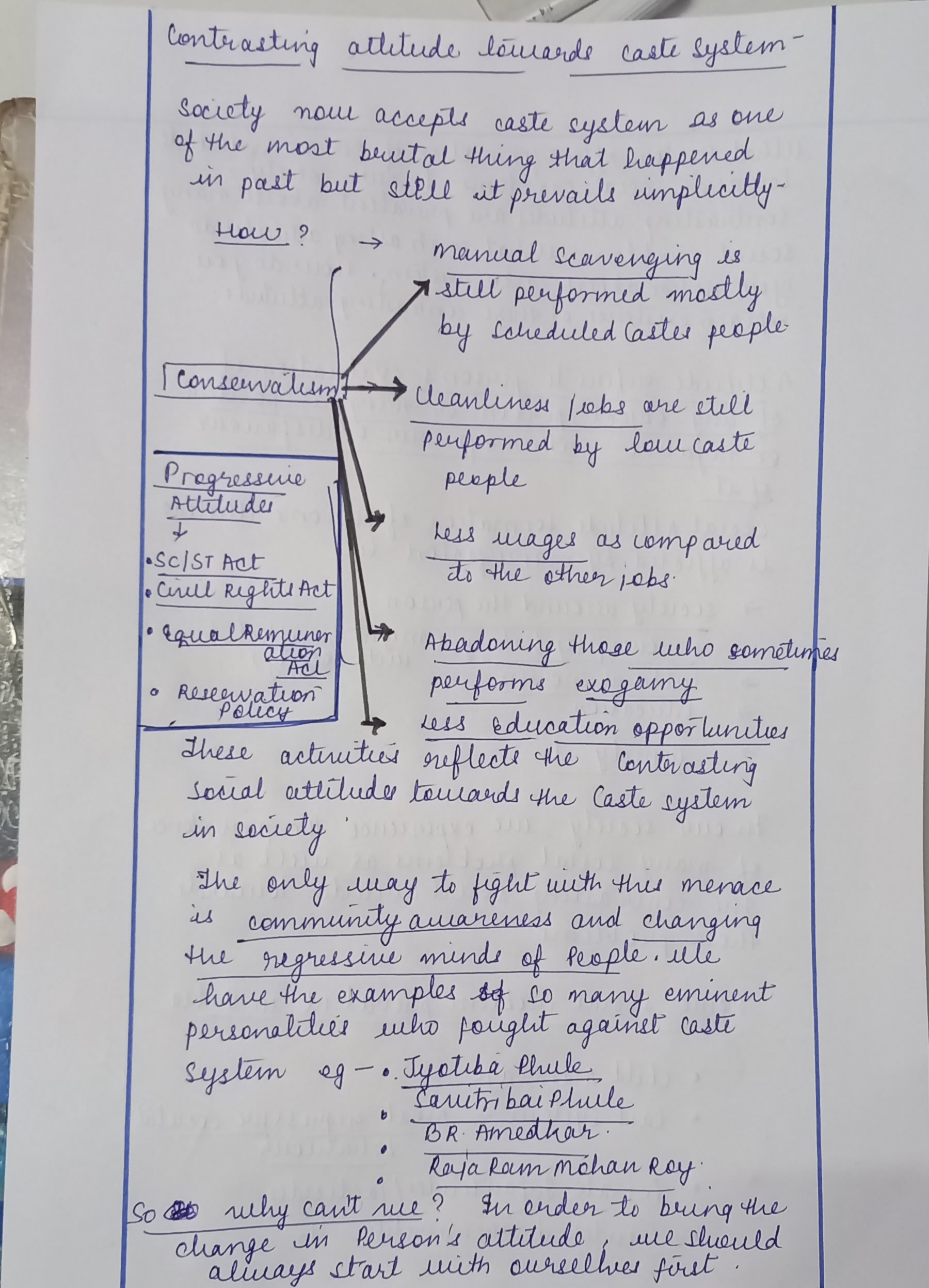 - In our society, contrasting attitudes are prevalent about many social problems, including the caste system.