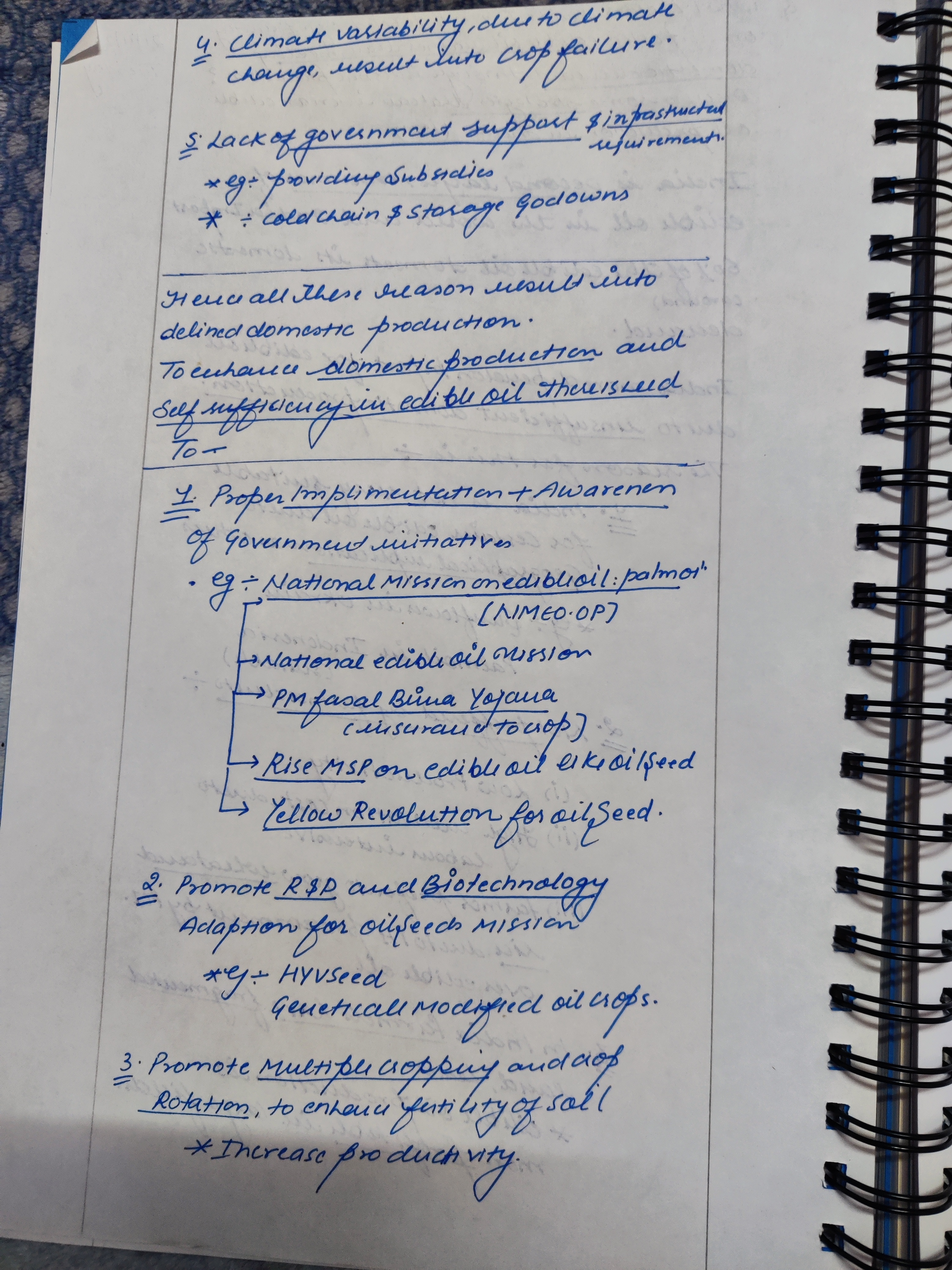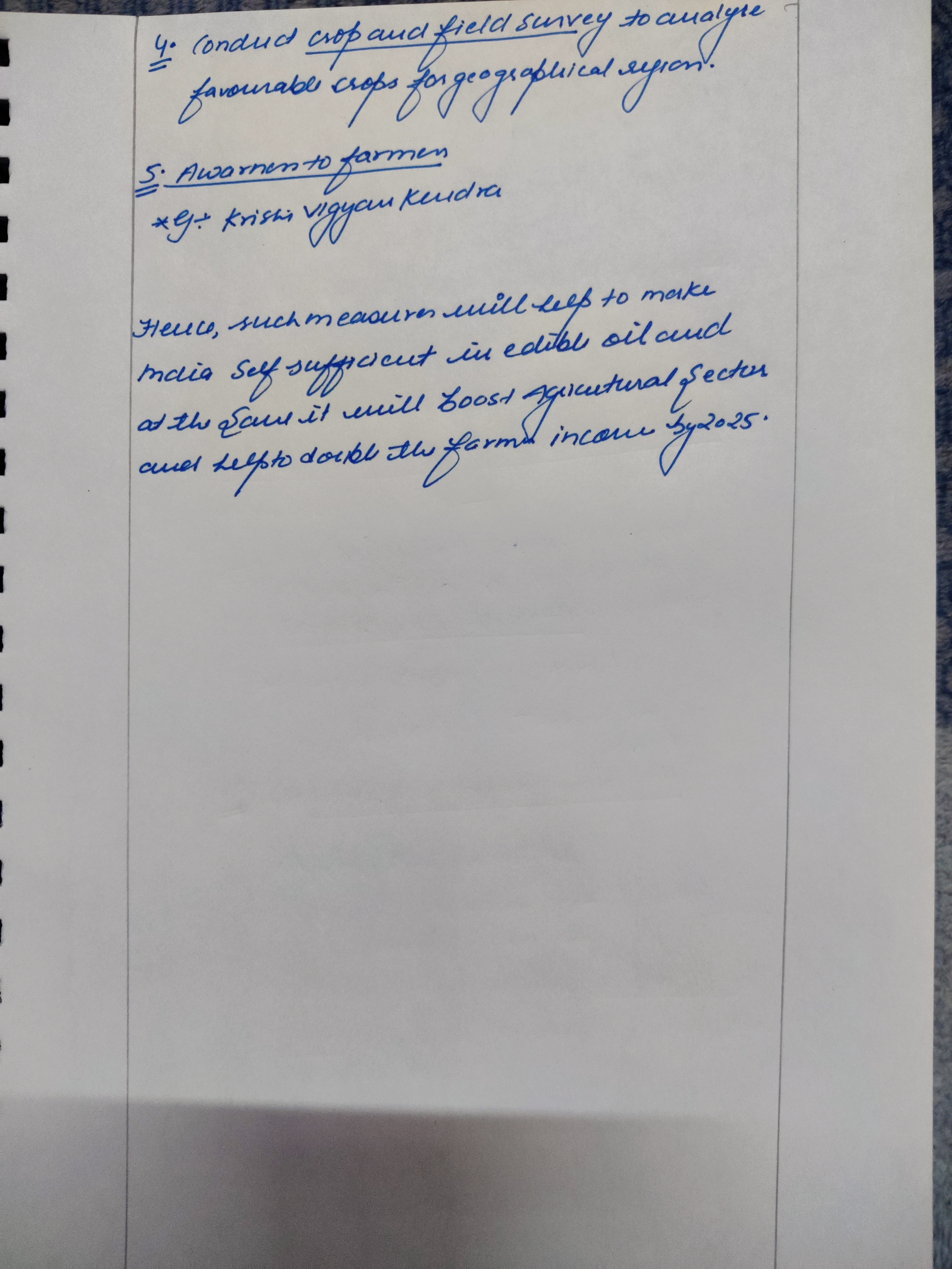 - Mention initiatives like the National Mission on Oil Seeds and Oil Palm (NMOOP) and the Pradhan Mantri Kisan Samman Nidhi (PM-KISAN).