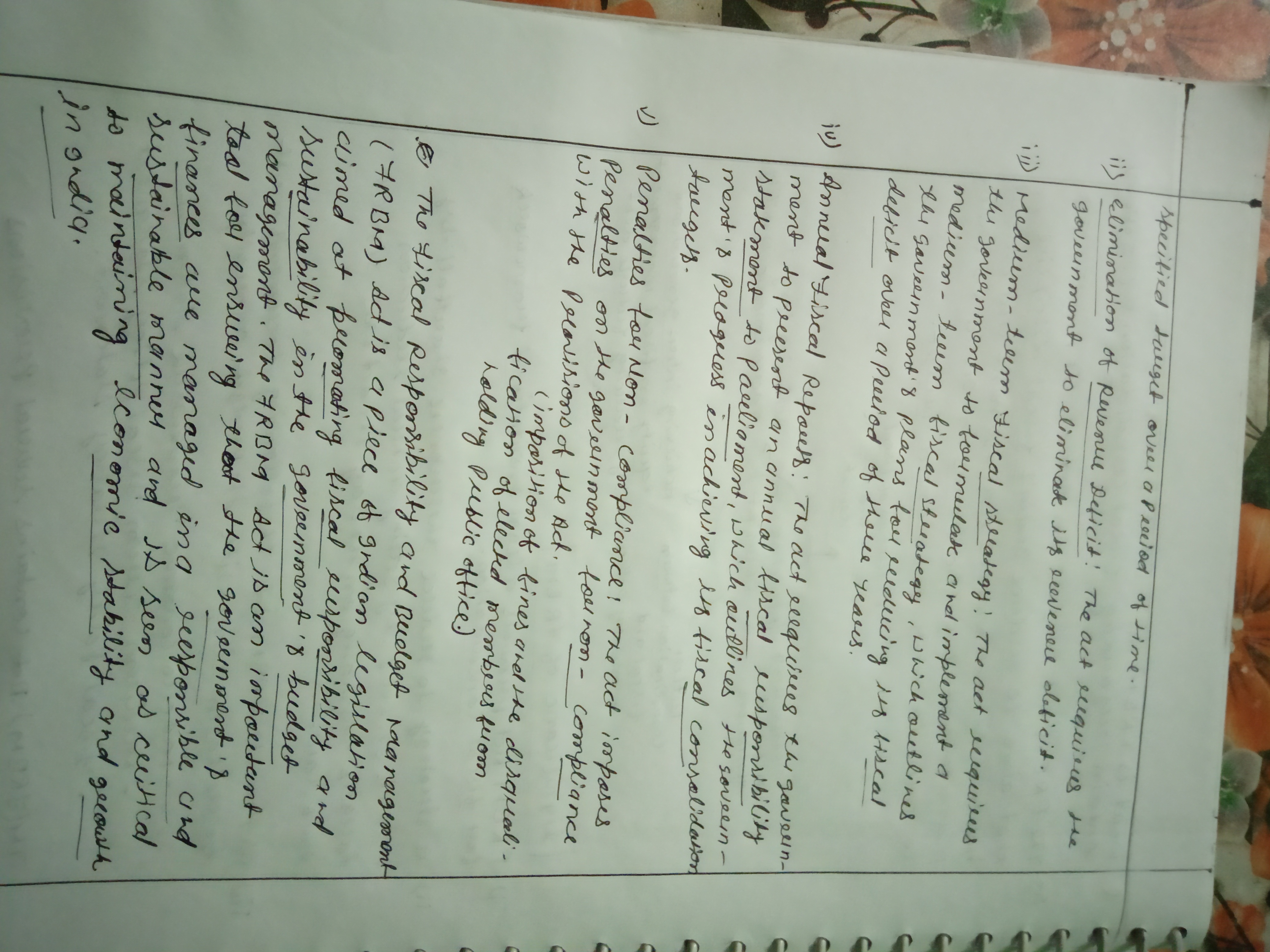 • Limitation of Deficits: The Act focuses on reducing the fiscal and revenue deficits to manageable levels.