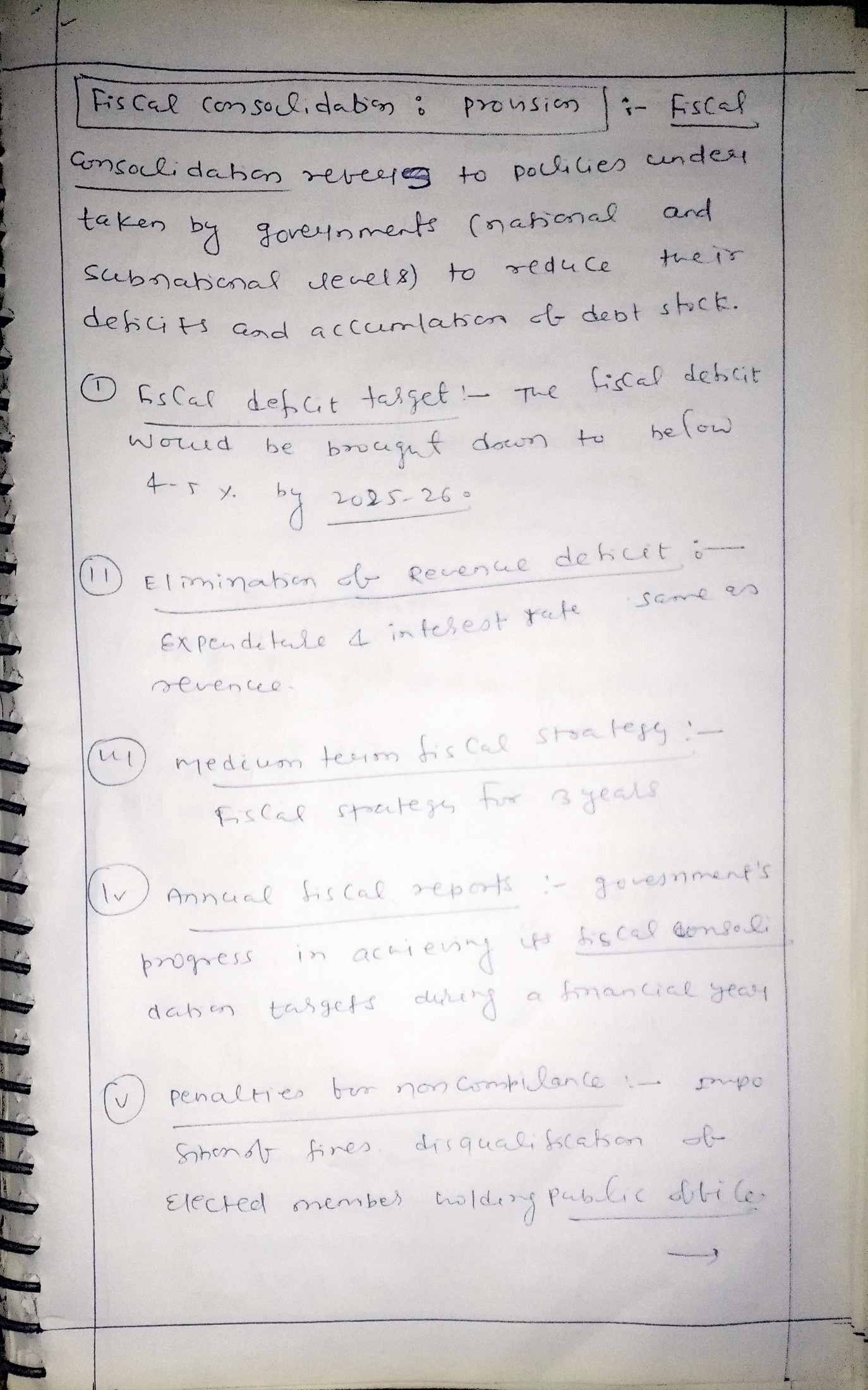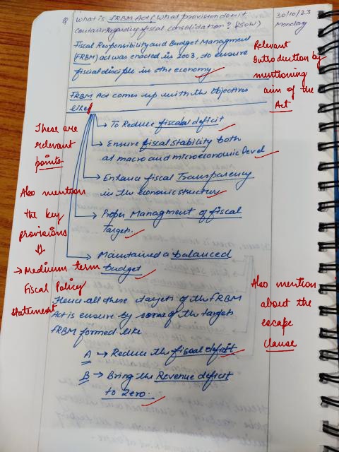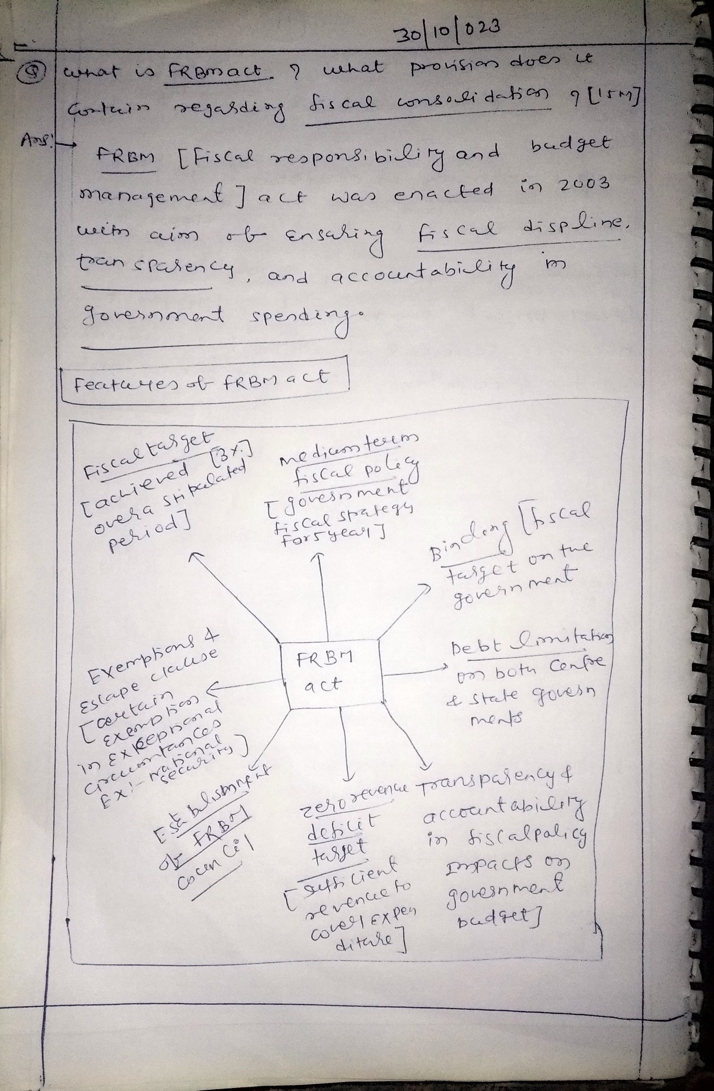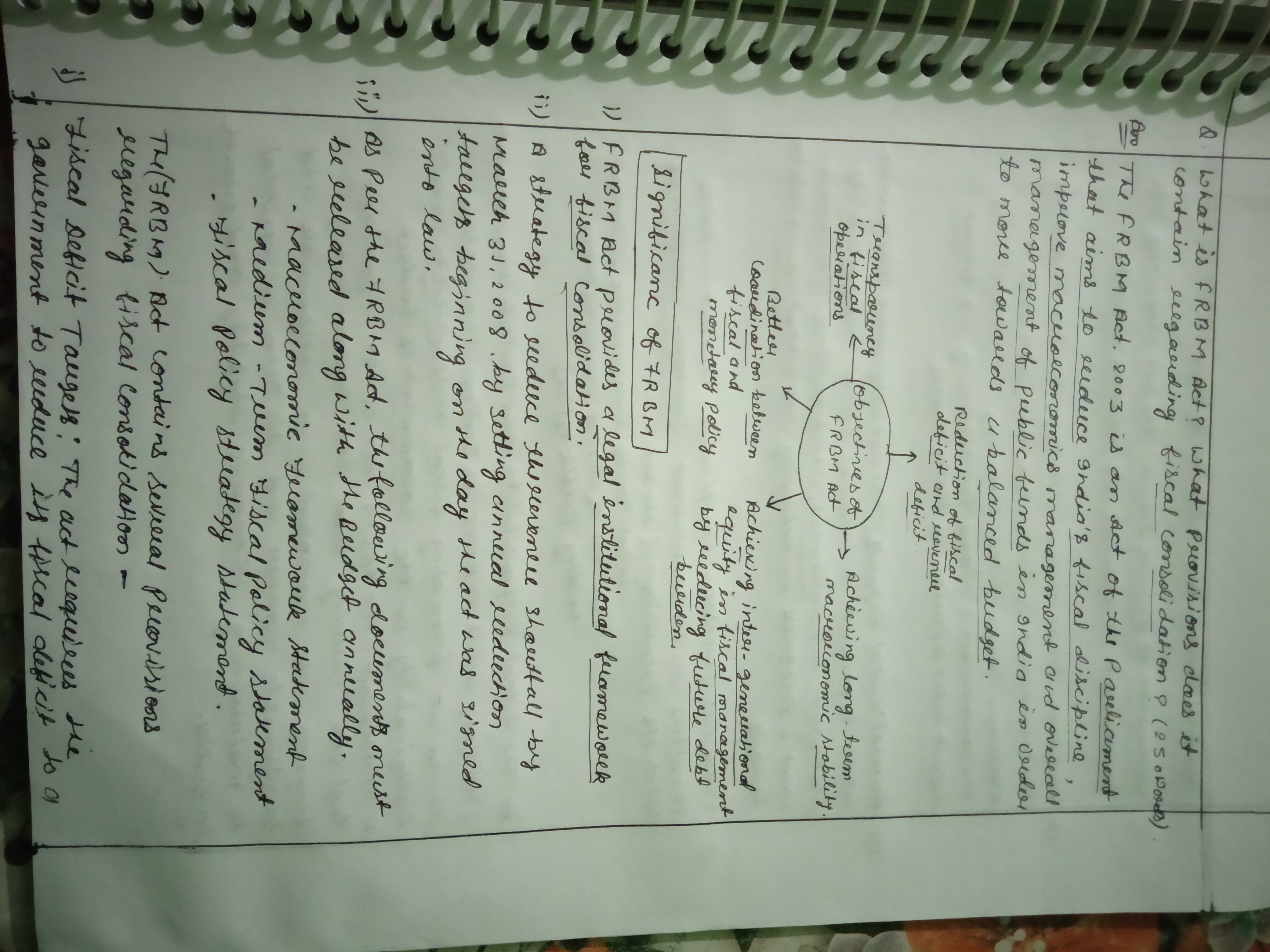 Q. What is FRBM Act? What provisions does it contain regarding fiscal consolidation? (250 words, 15 Marks)