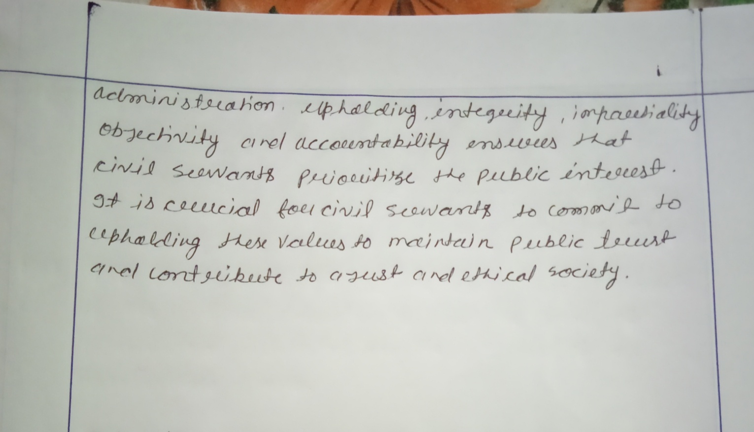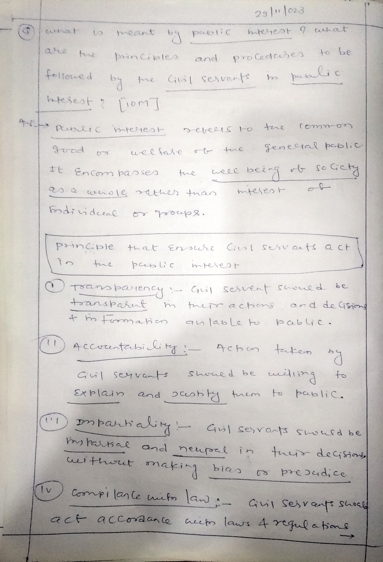 In conclusion, acting in the public interest is a fundamental principle of civil service in India. Civil servants must adhere to certain principles and procedures, including transparency, objectivity, efficiency, and respect for human rights and dignity, to ensure that their actions and decisions are aligned with the best interests of the public they serve.