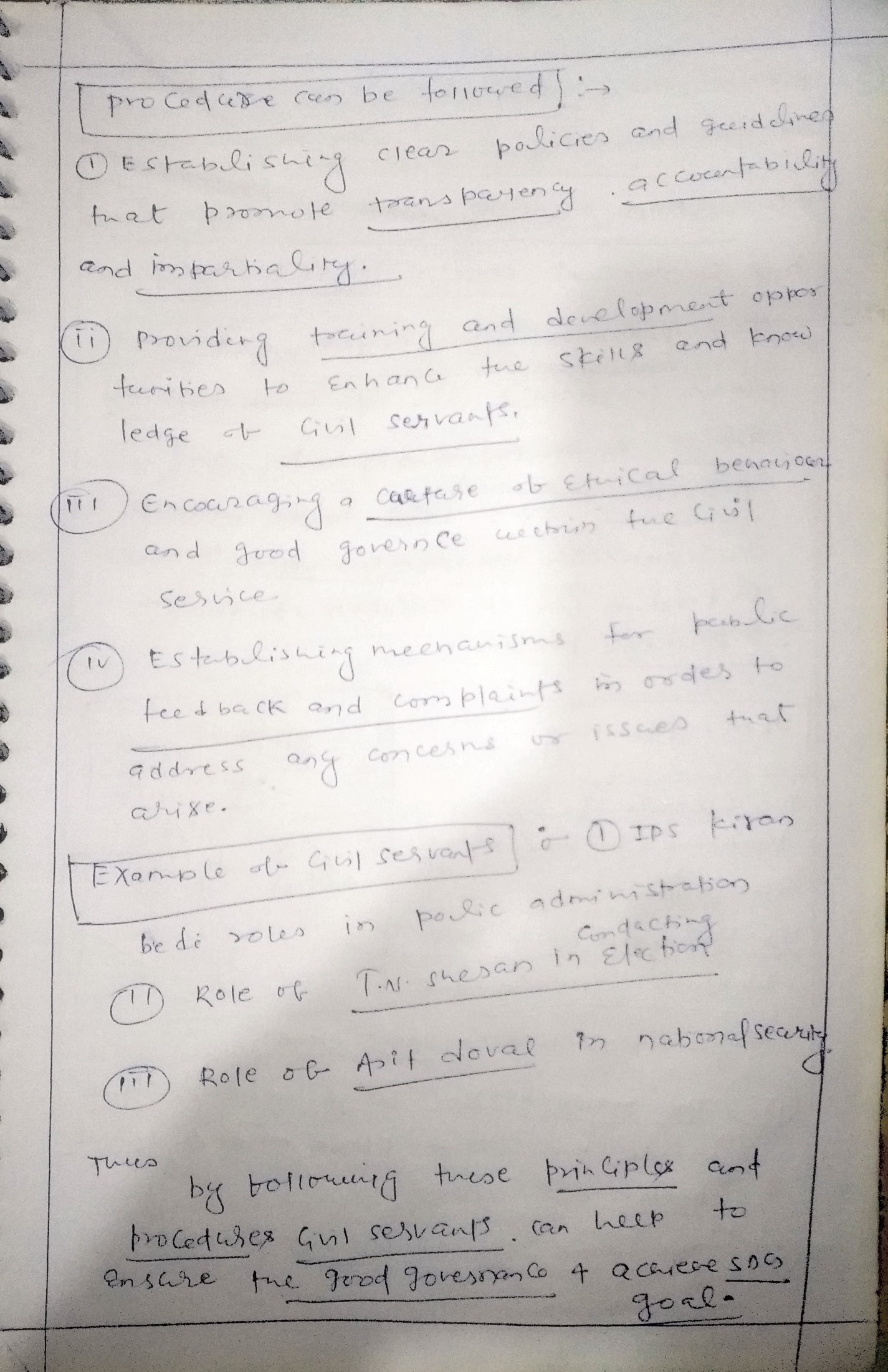 - Mention the principles and procedures to be followed by the civil servants in public interest
