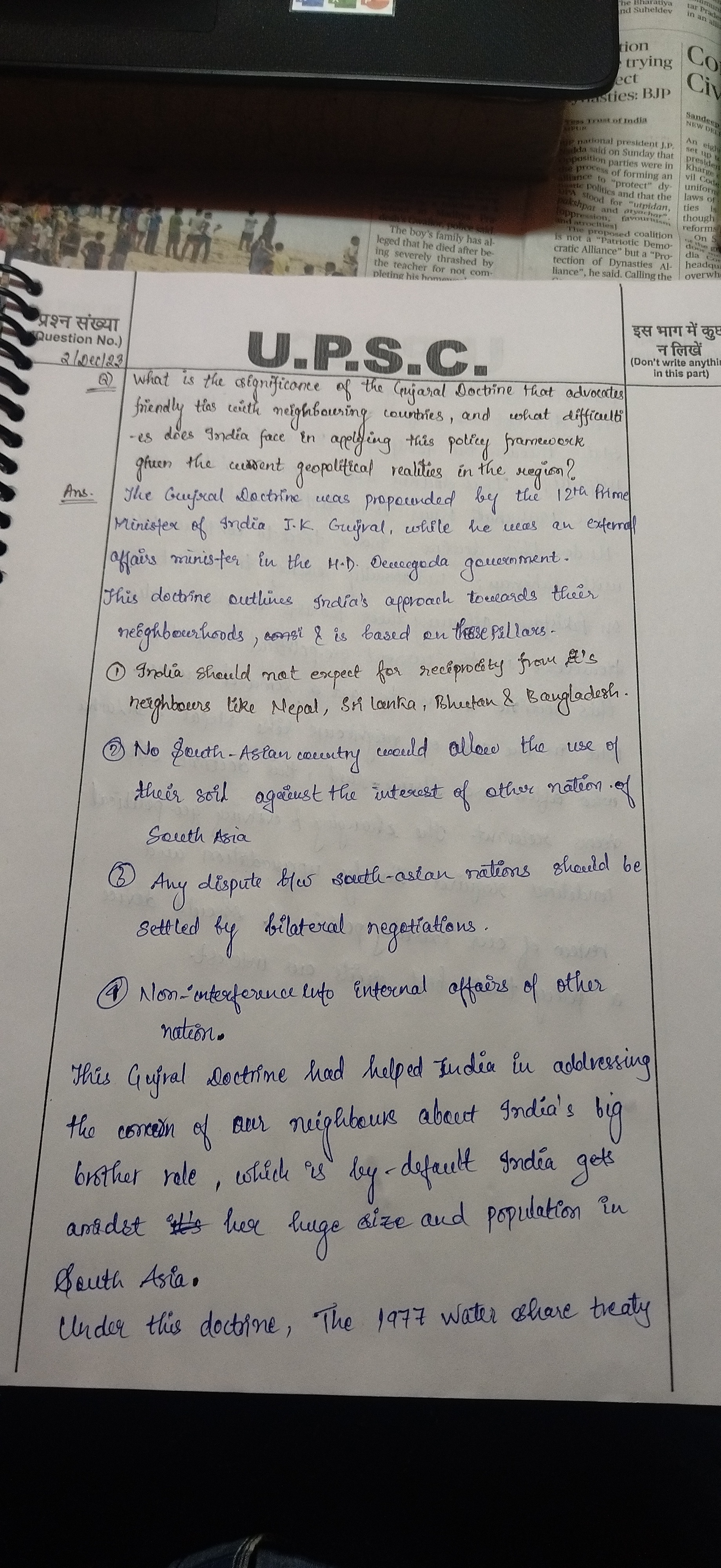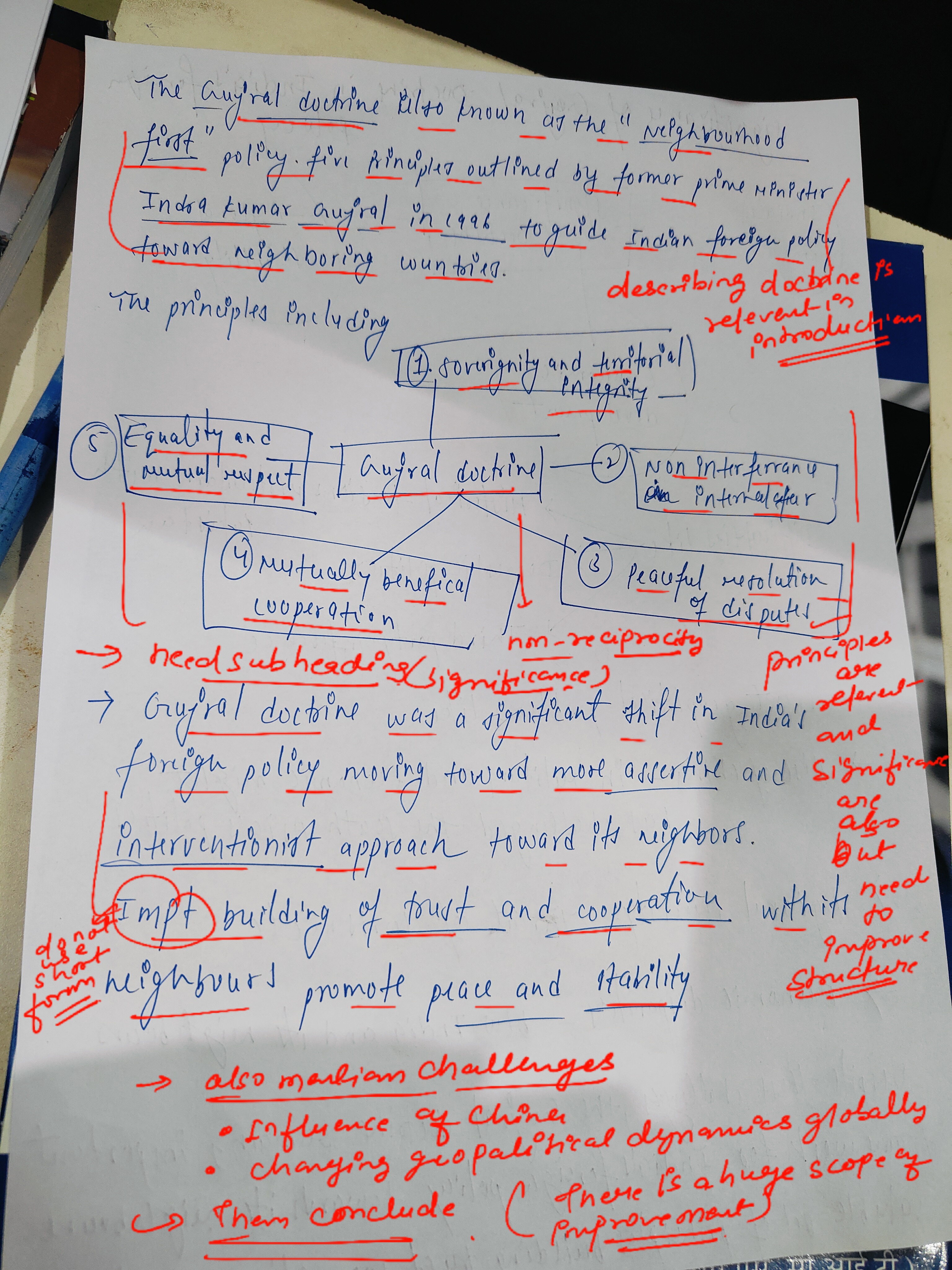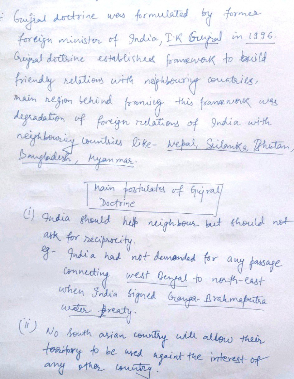 - Conclusion: Summarize the importance of the Gujral Doctrine in India’s foreign policy while acknowledging the challenges in its application, given the current geopolitical scenario.