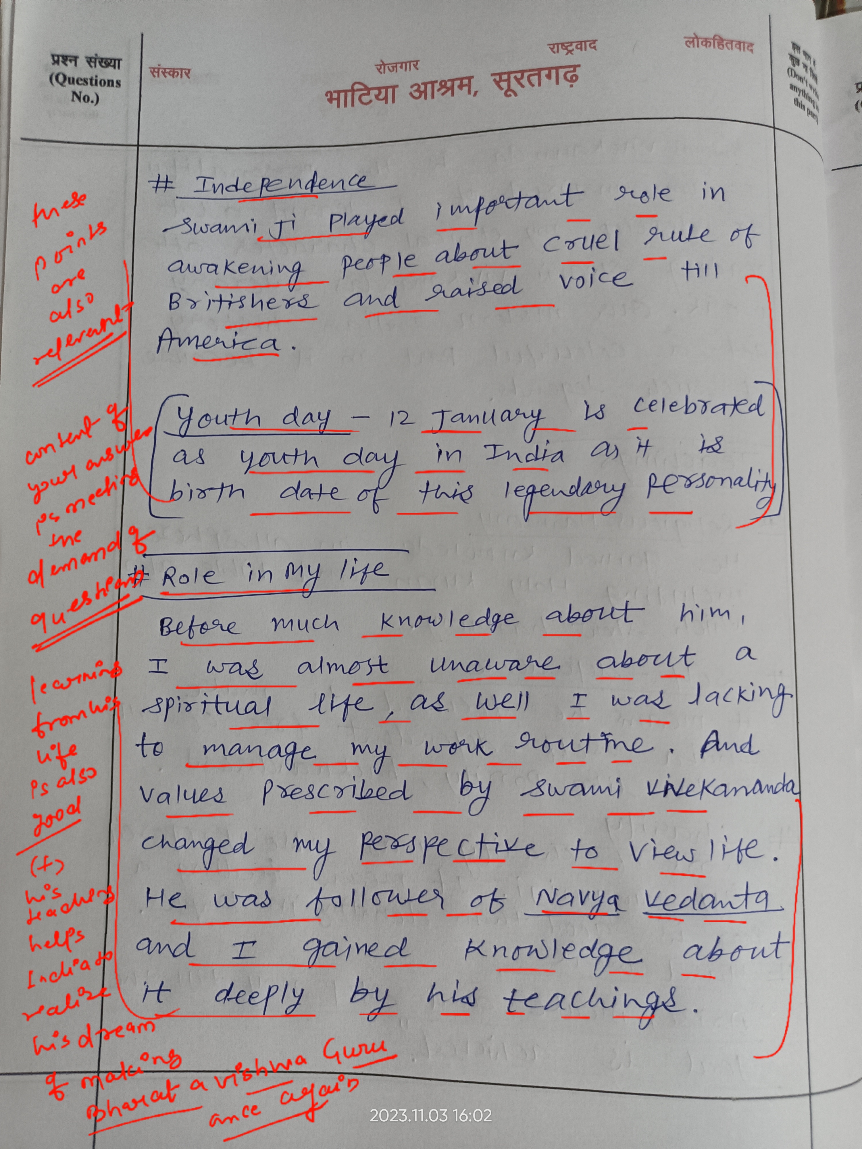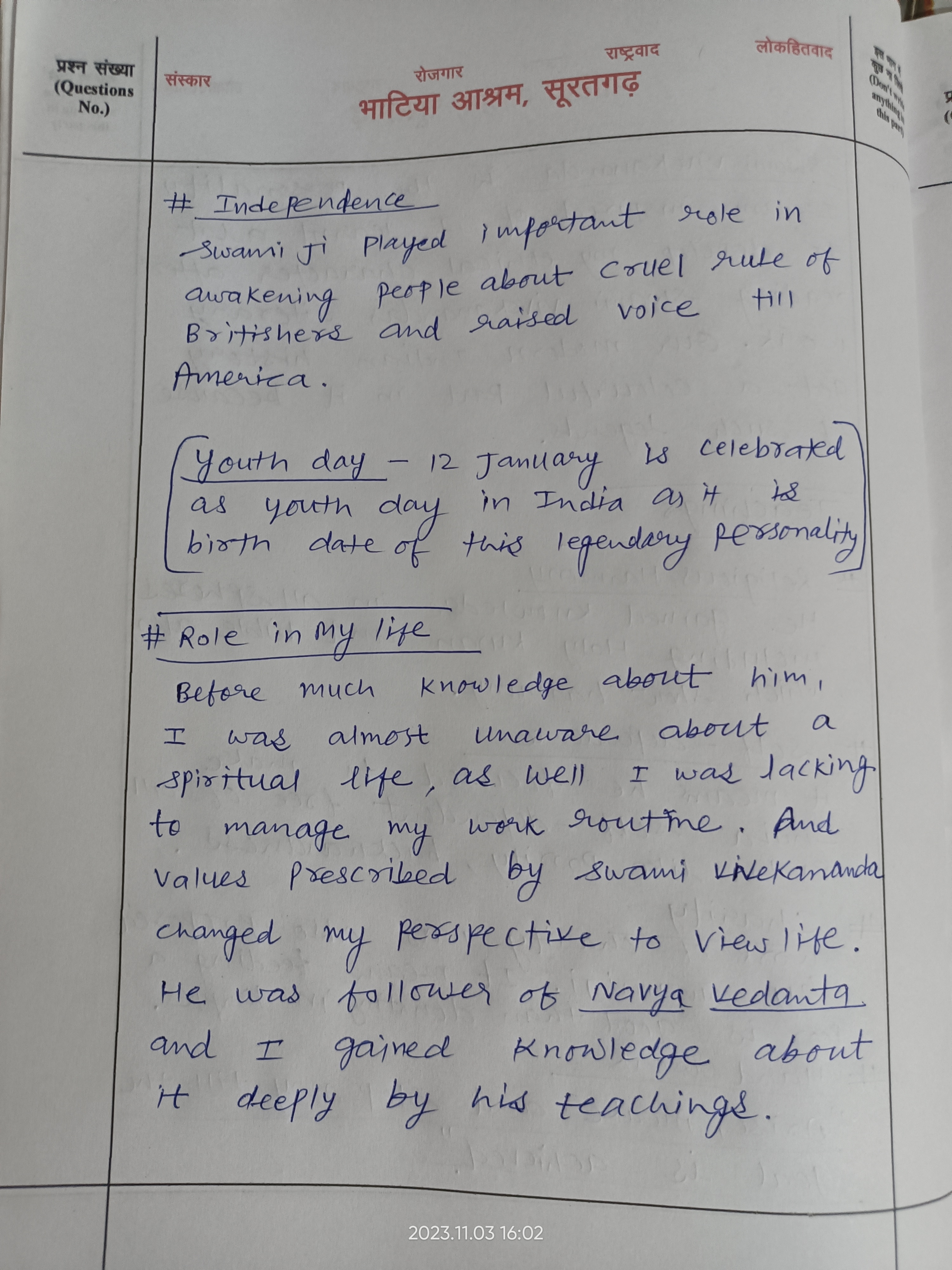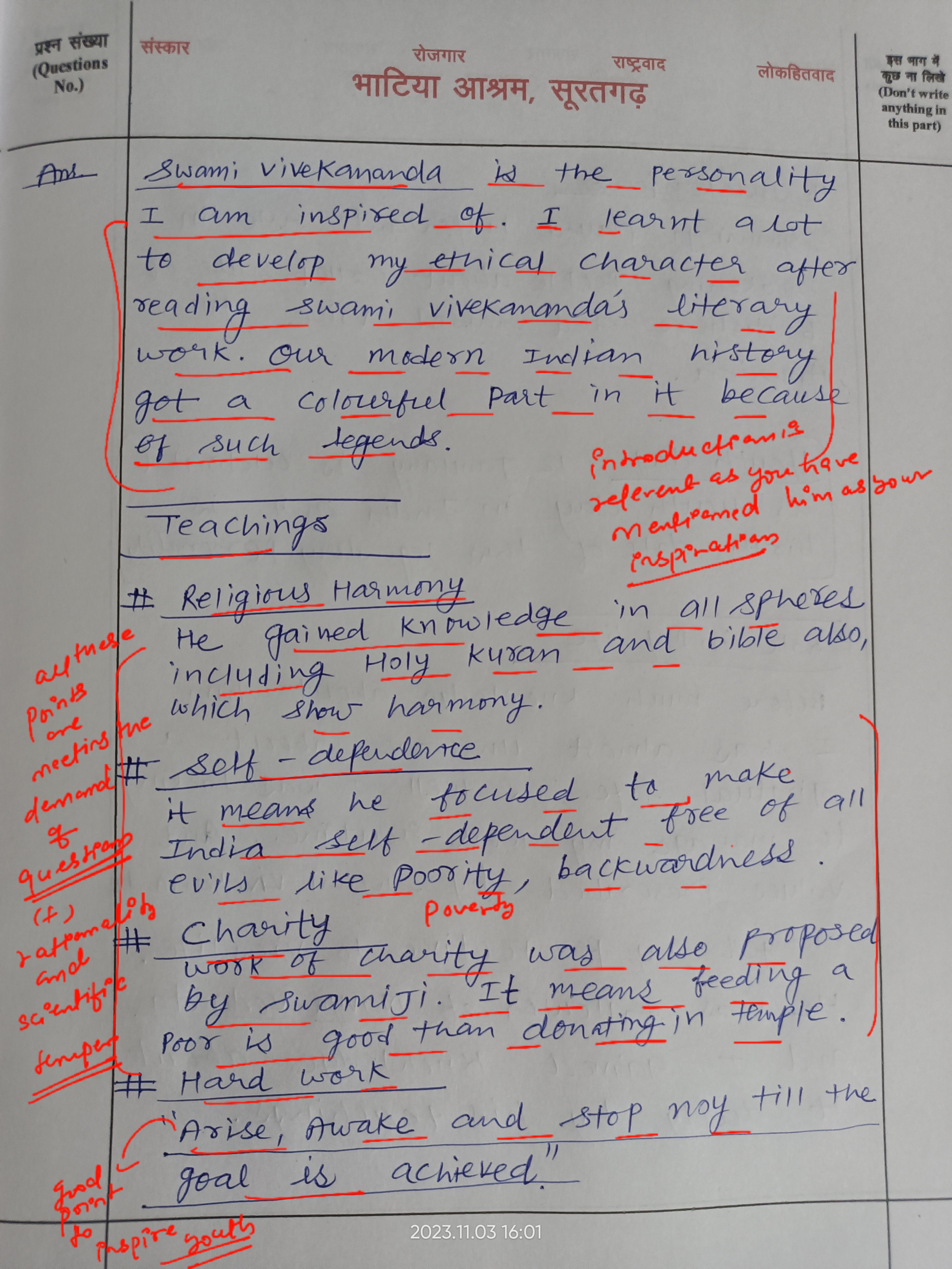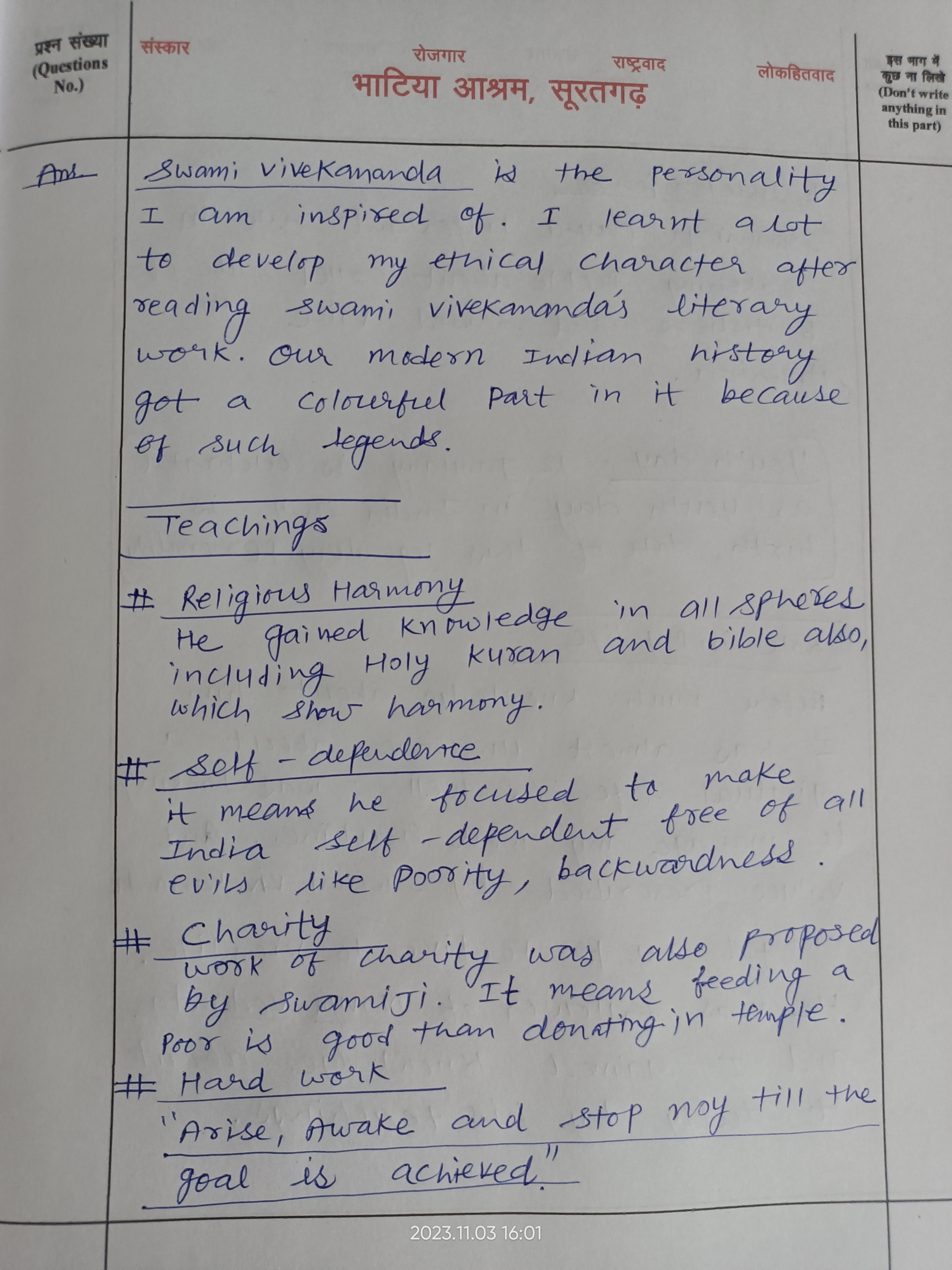 - Mention the teachings of Swami Vivekananda or any other leader who inspires you.