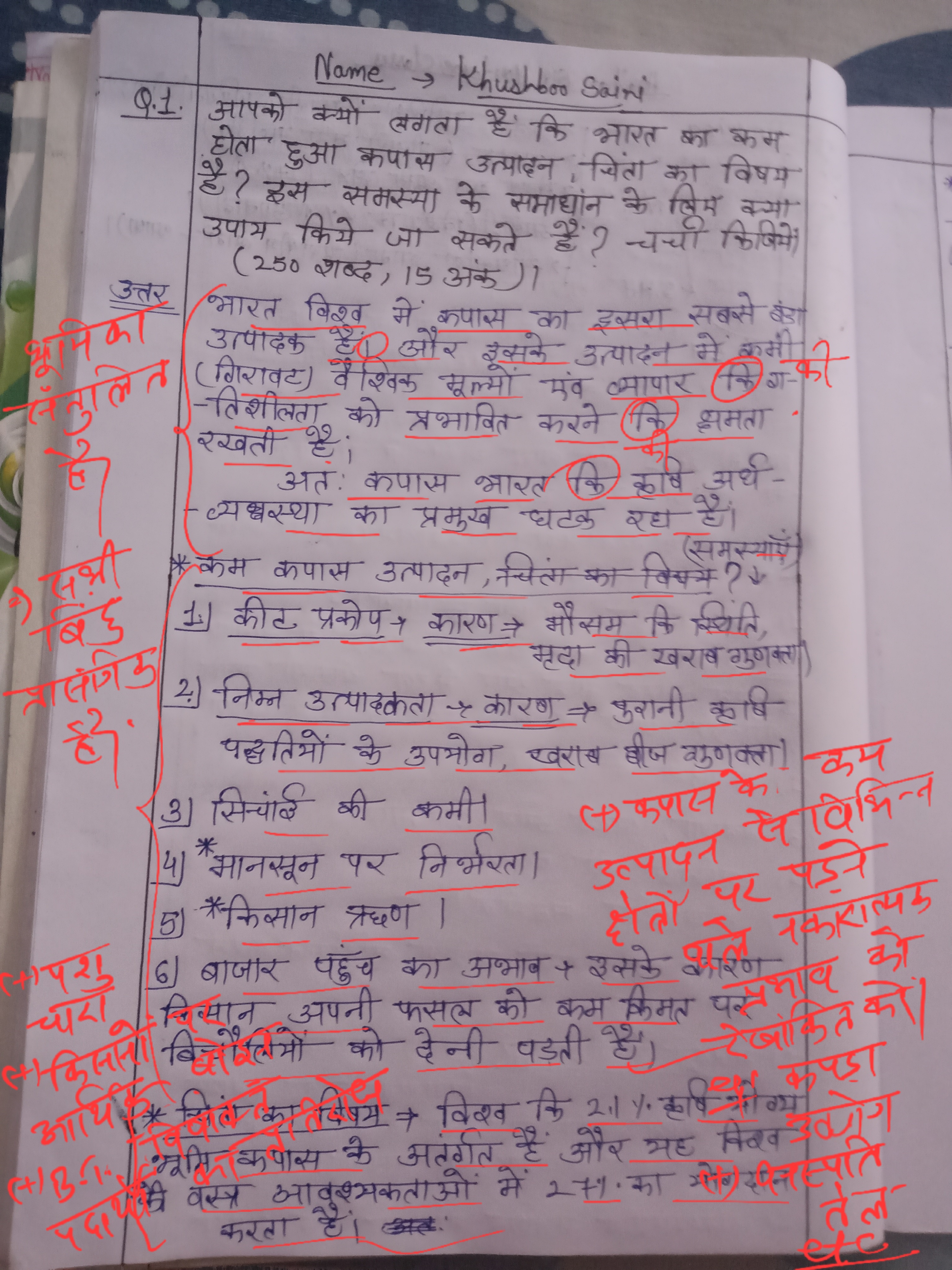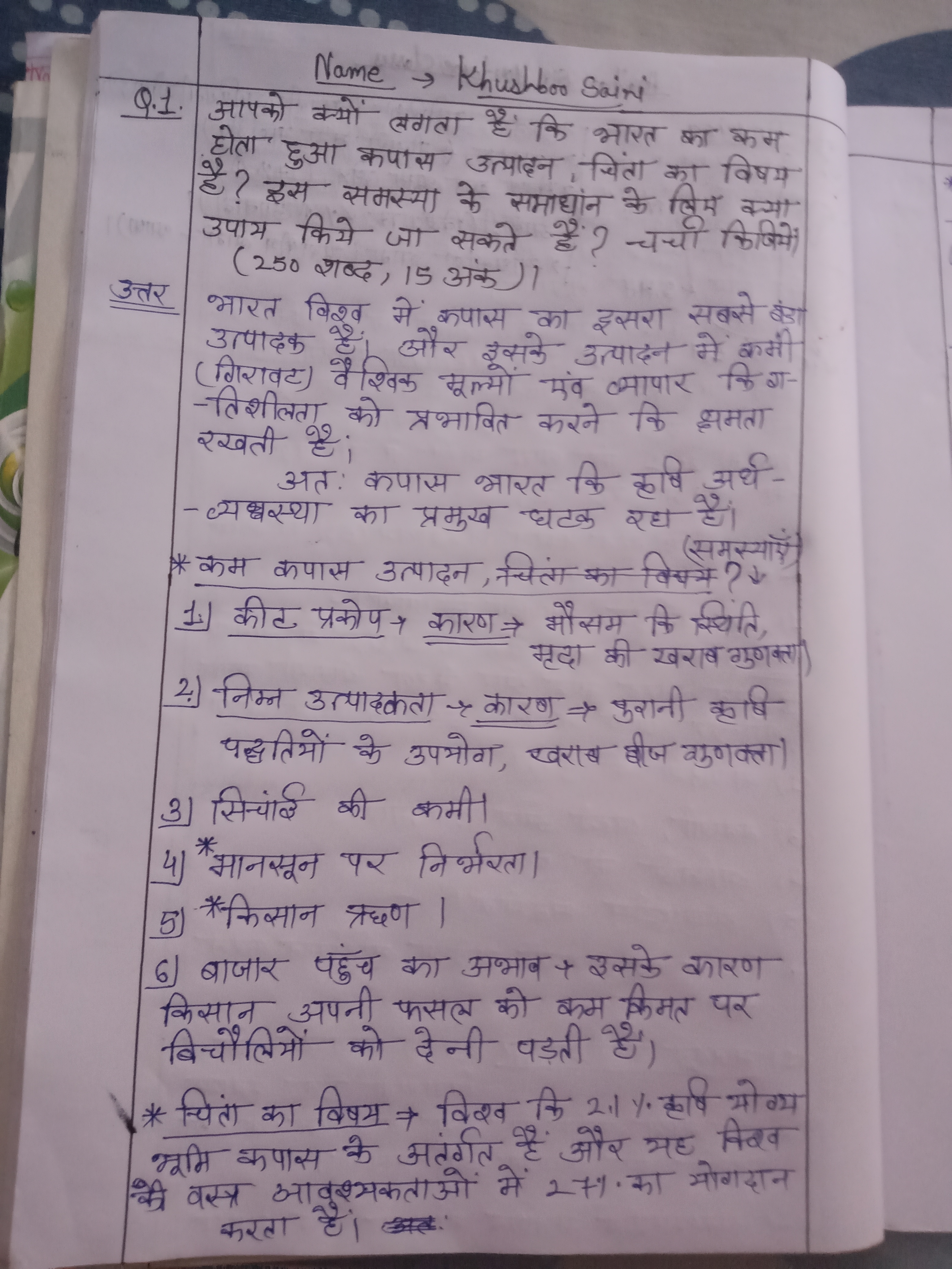 - परिचय: भारत के कृषि और औद्योगिक क्षेत्रों में कपास के महत्व का परिचय देते हुए इसके बहुमुखी उपयोग पर प्रकाश डालिए।