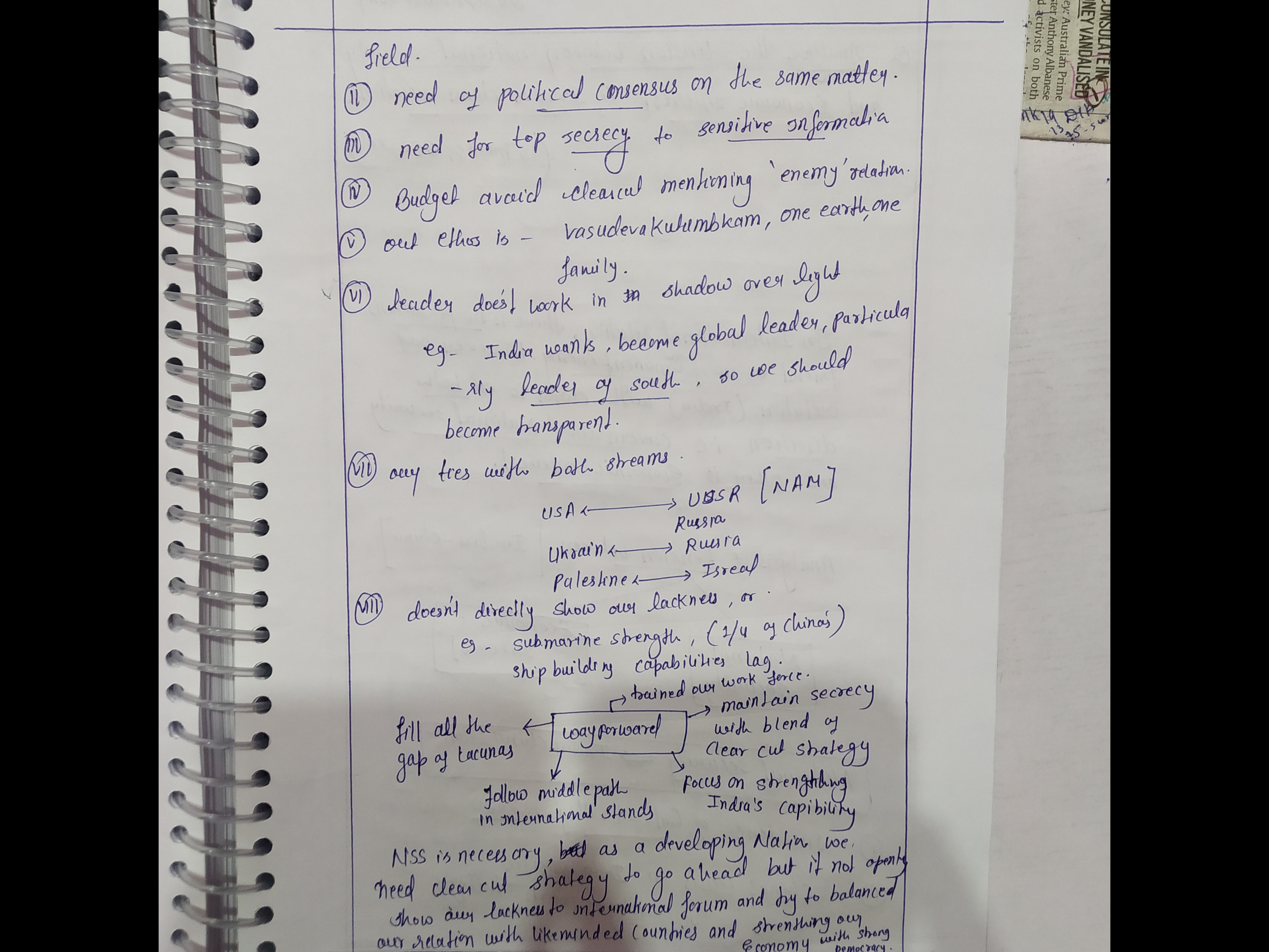 For example: Countries like the U.S. regularly publish their NSS to inform citizens about security policies, and India can adopt a similar approach.