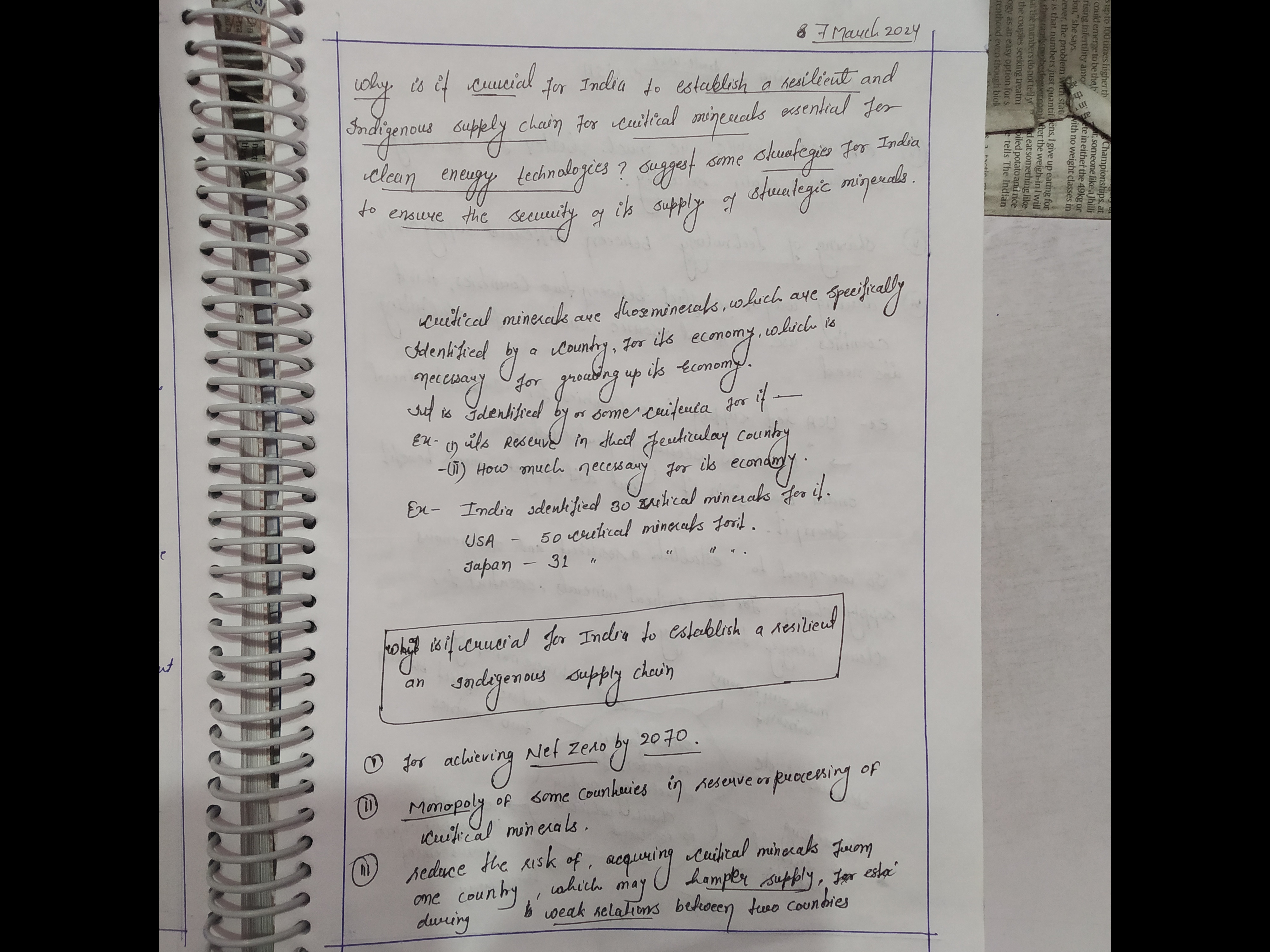 - Introduction: Highlight the urgency of establishing a resilient, indigenous supply chain for critical minerals in India for clean energy technologies and national security.