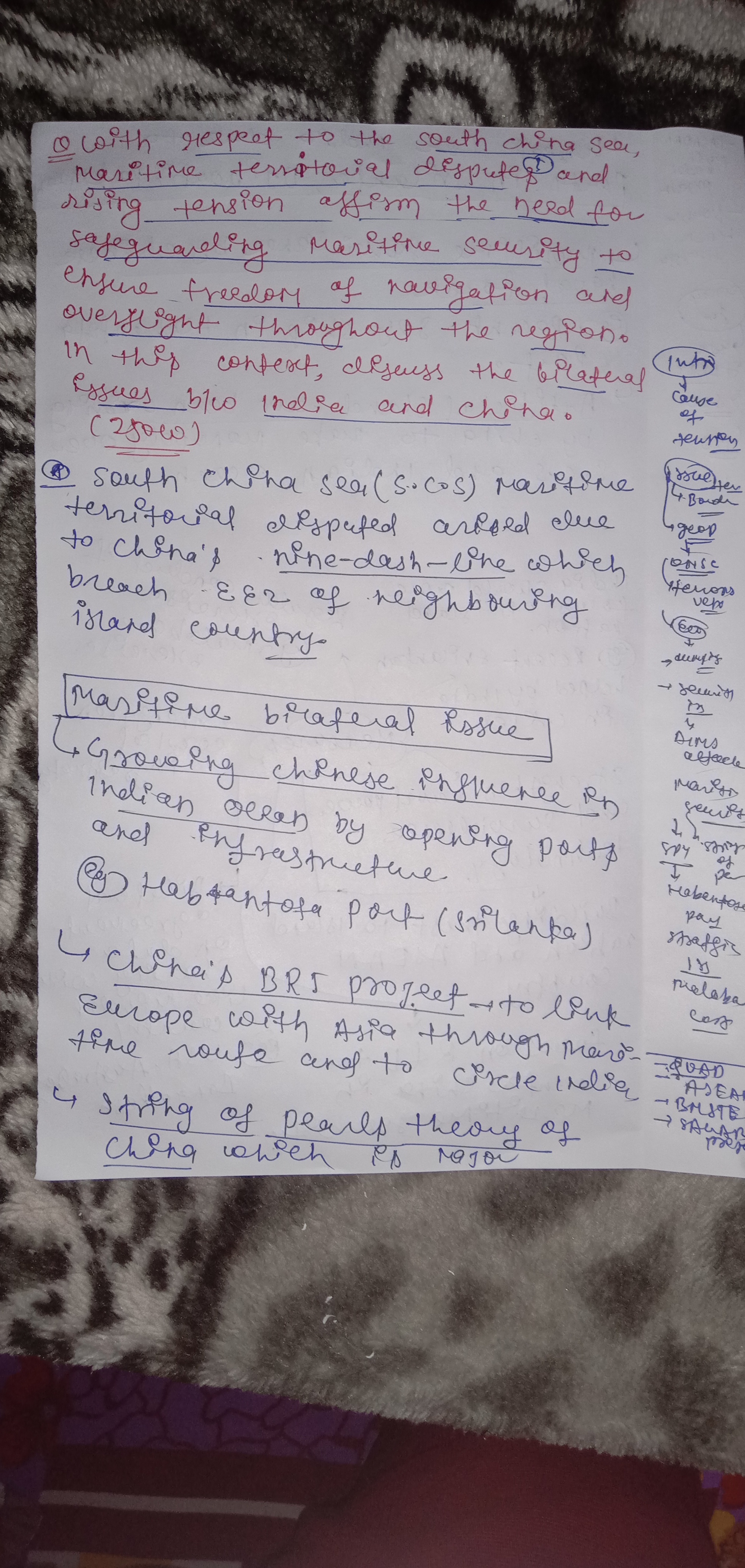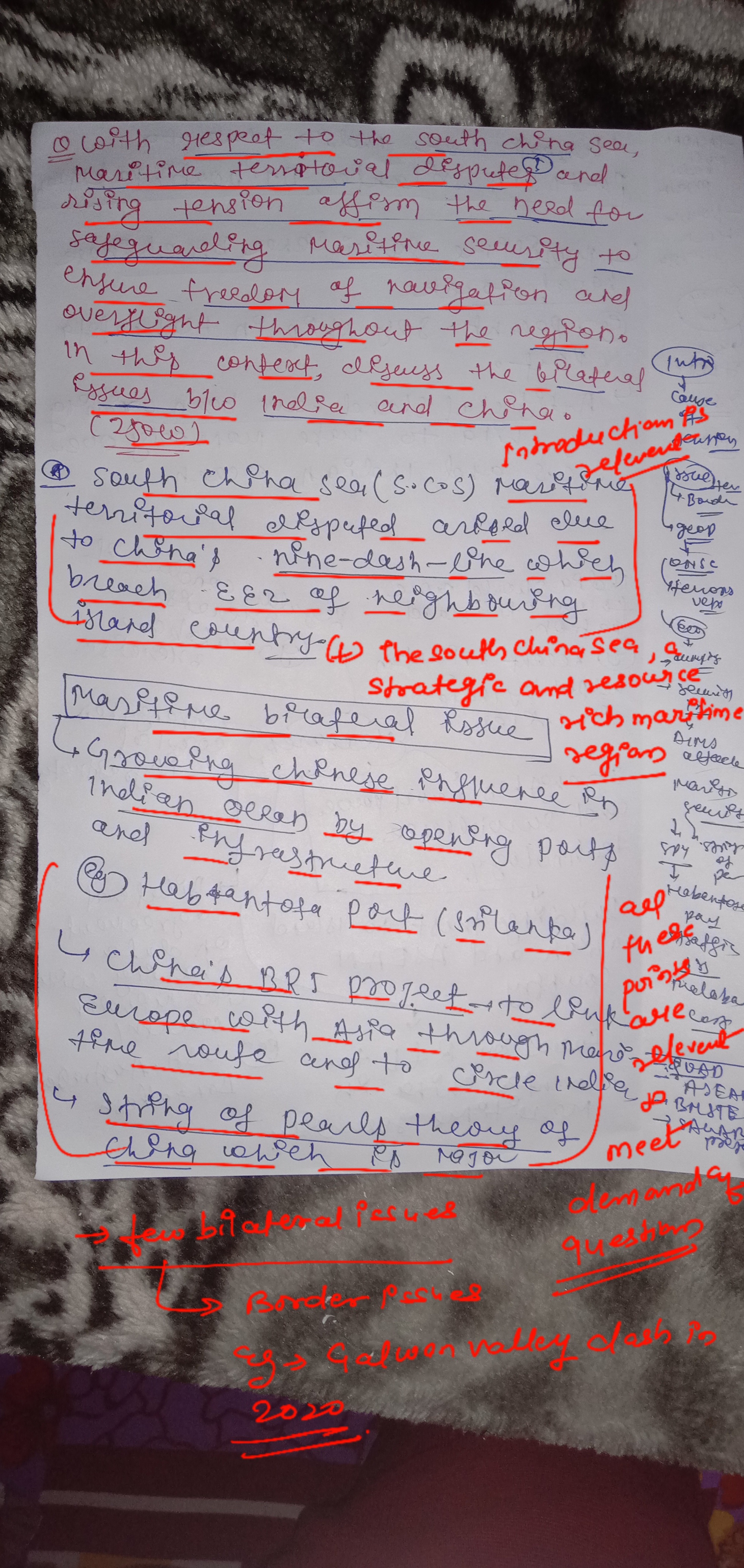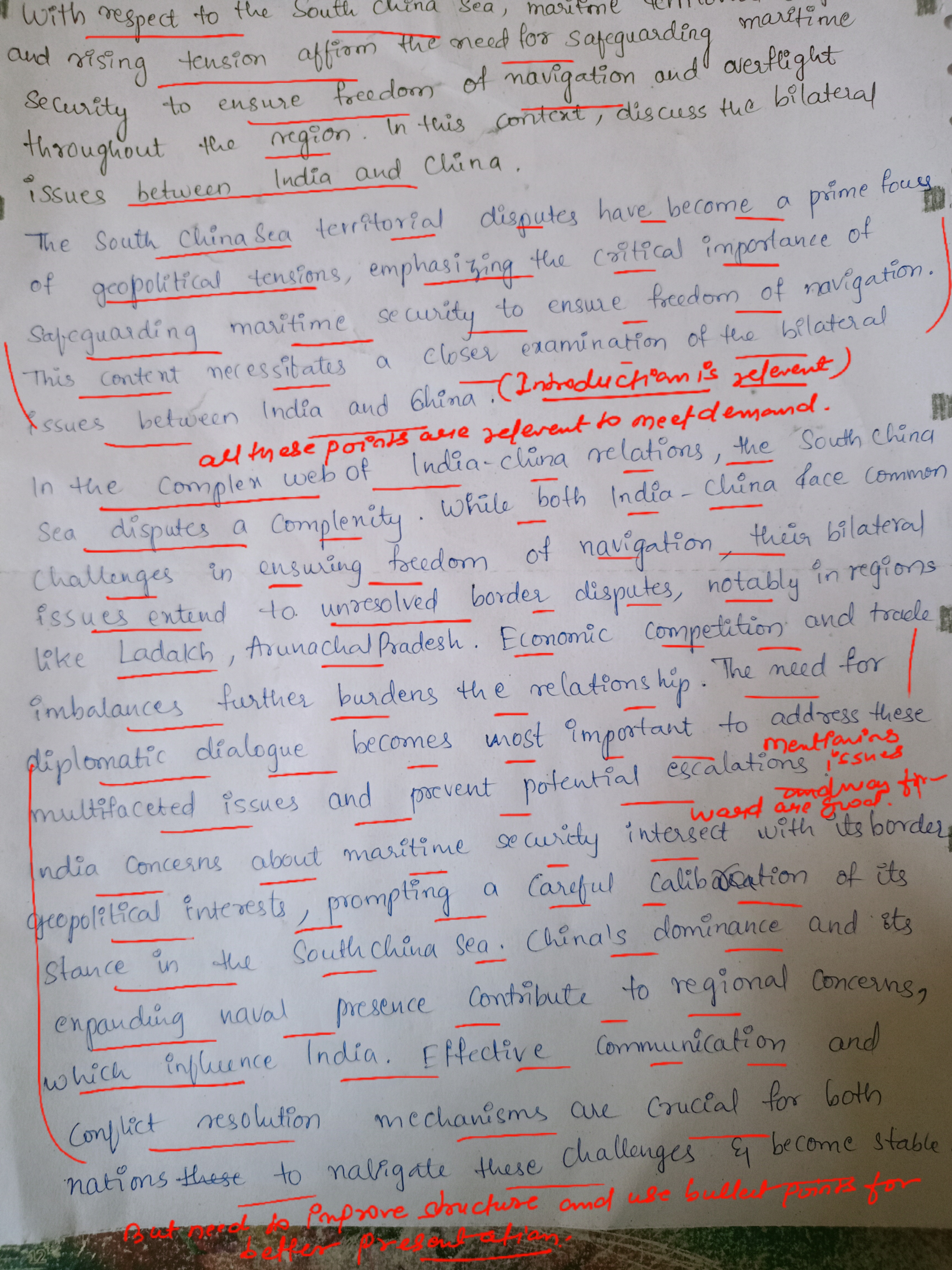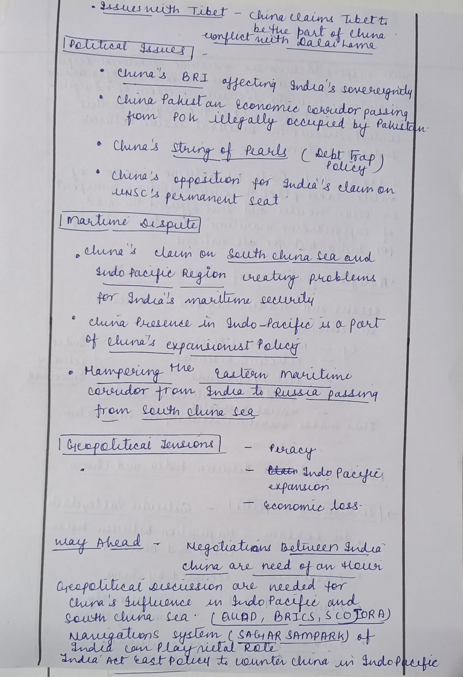 - Cover the key aspects of India-China relations, focusing on the border dispute, the Tibet issue, and strategic perceptions, including the impact of these issues on their respective policies in the South China Sea.
