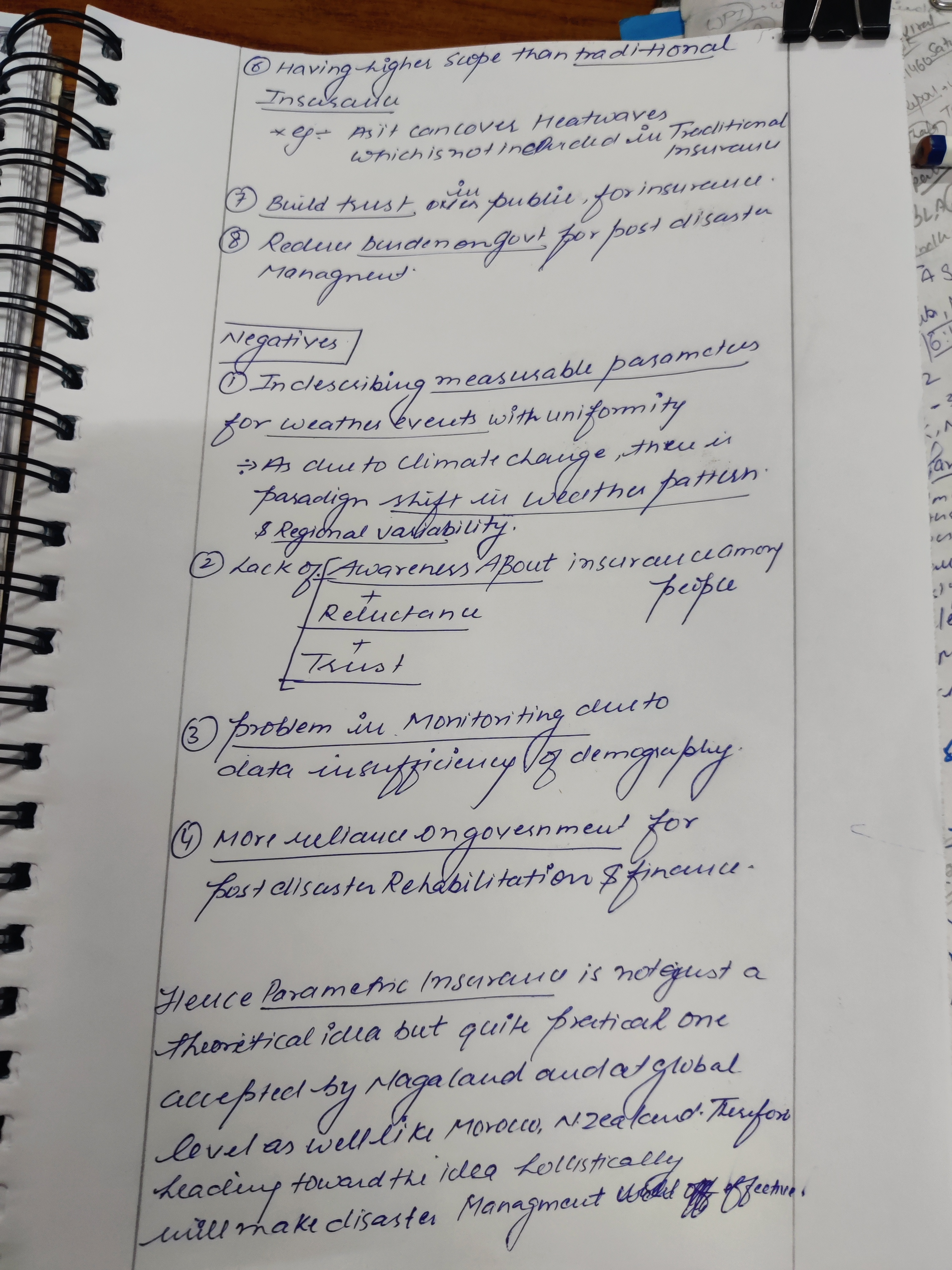 - Discuss the need to enhance disaster resilience by parametric insurance coverage for the insurance industry.