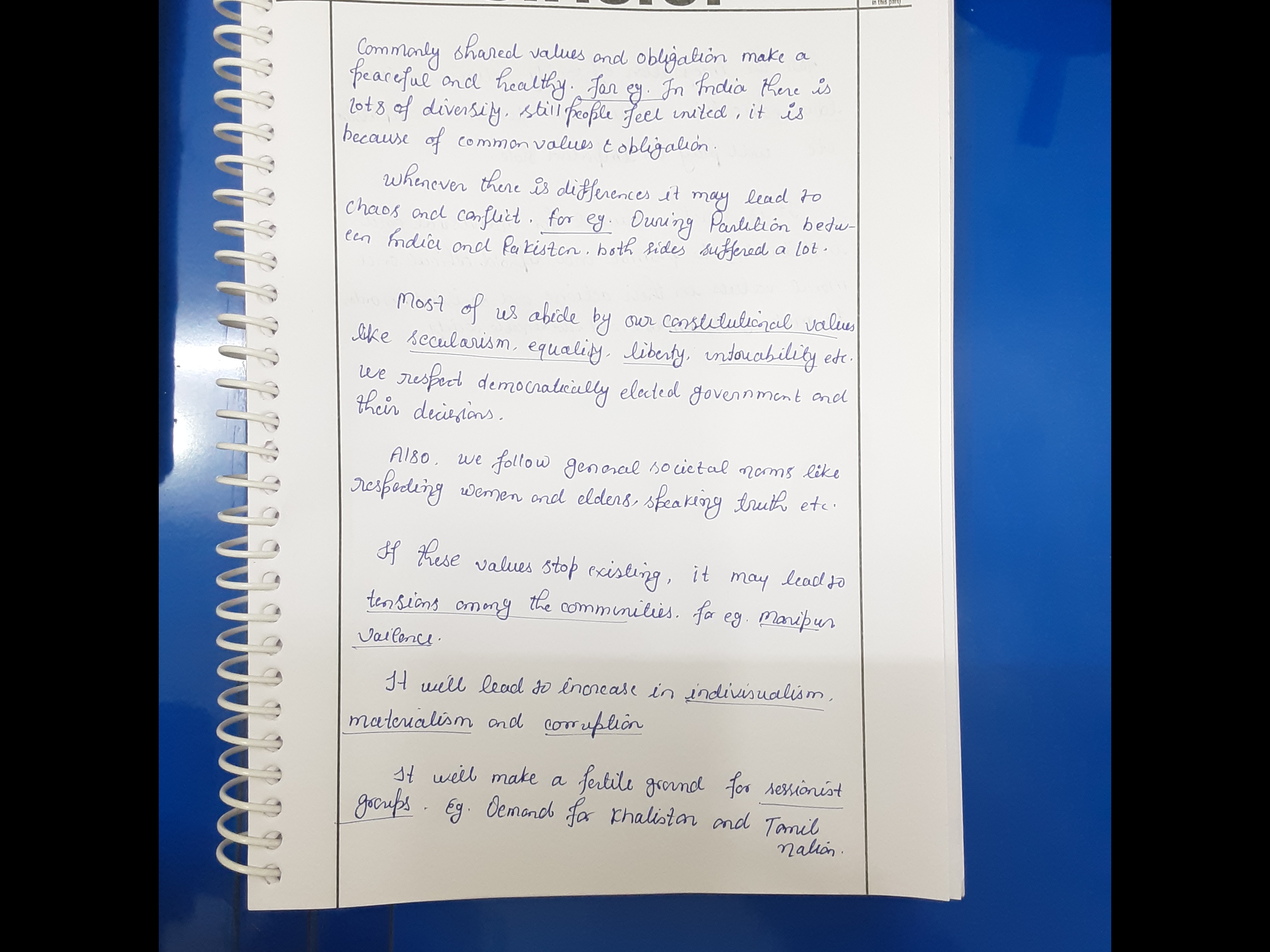 This statement emphasizes the importance of ethical and moral values in the functioning of any society. In contemporary times, we see numerous examples of how a lack of shared moral values can lead to dysfunction in different areas of society.
