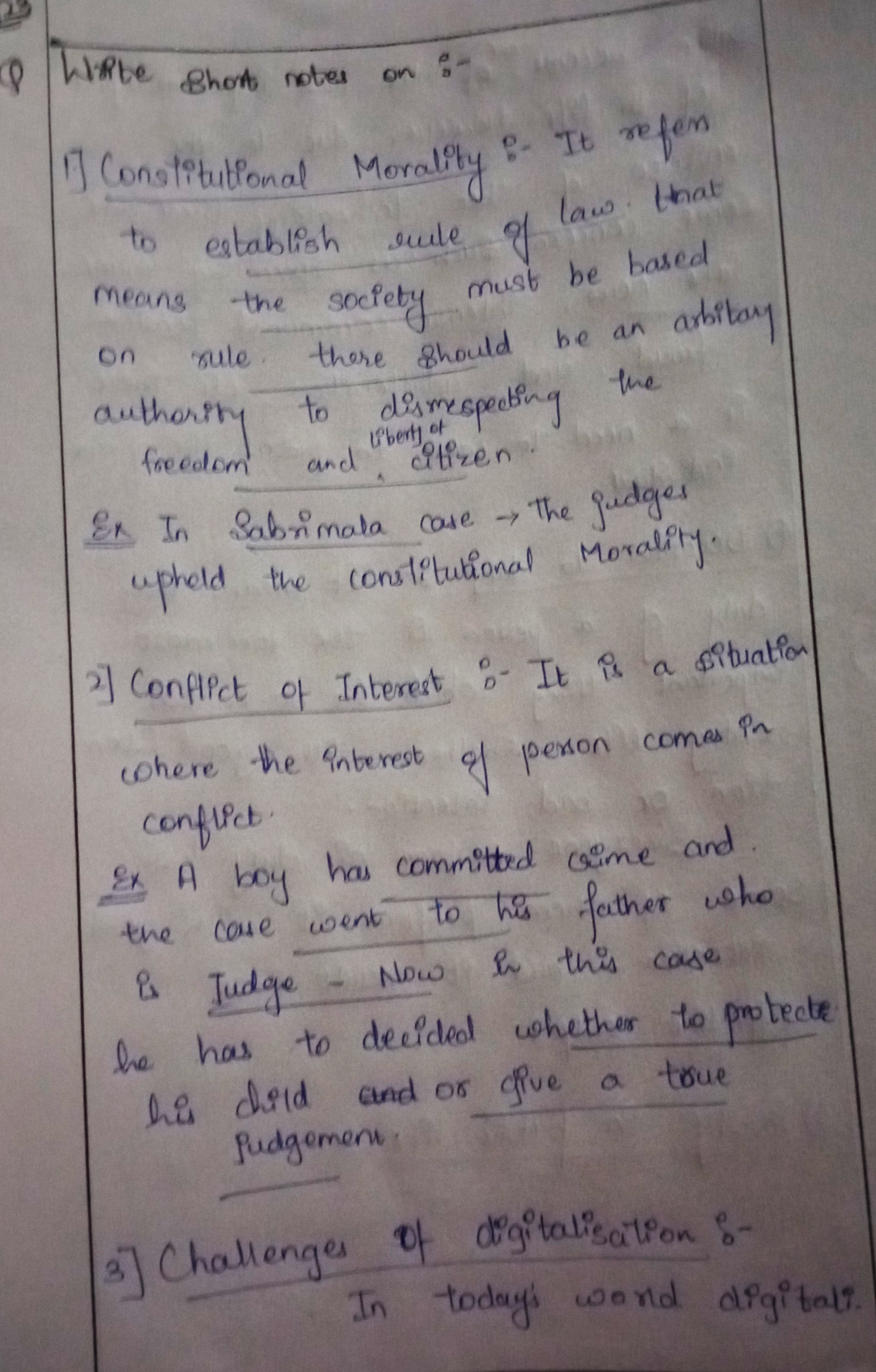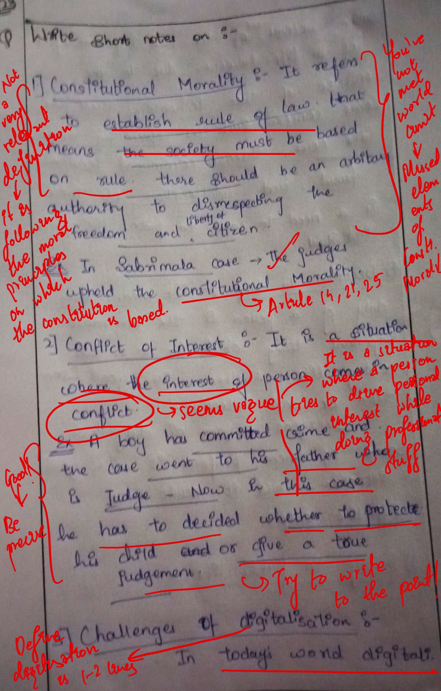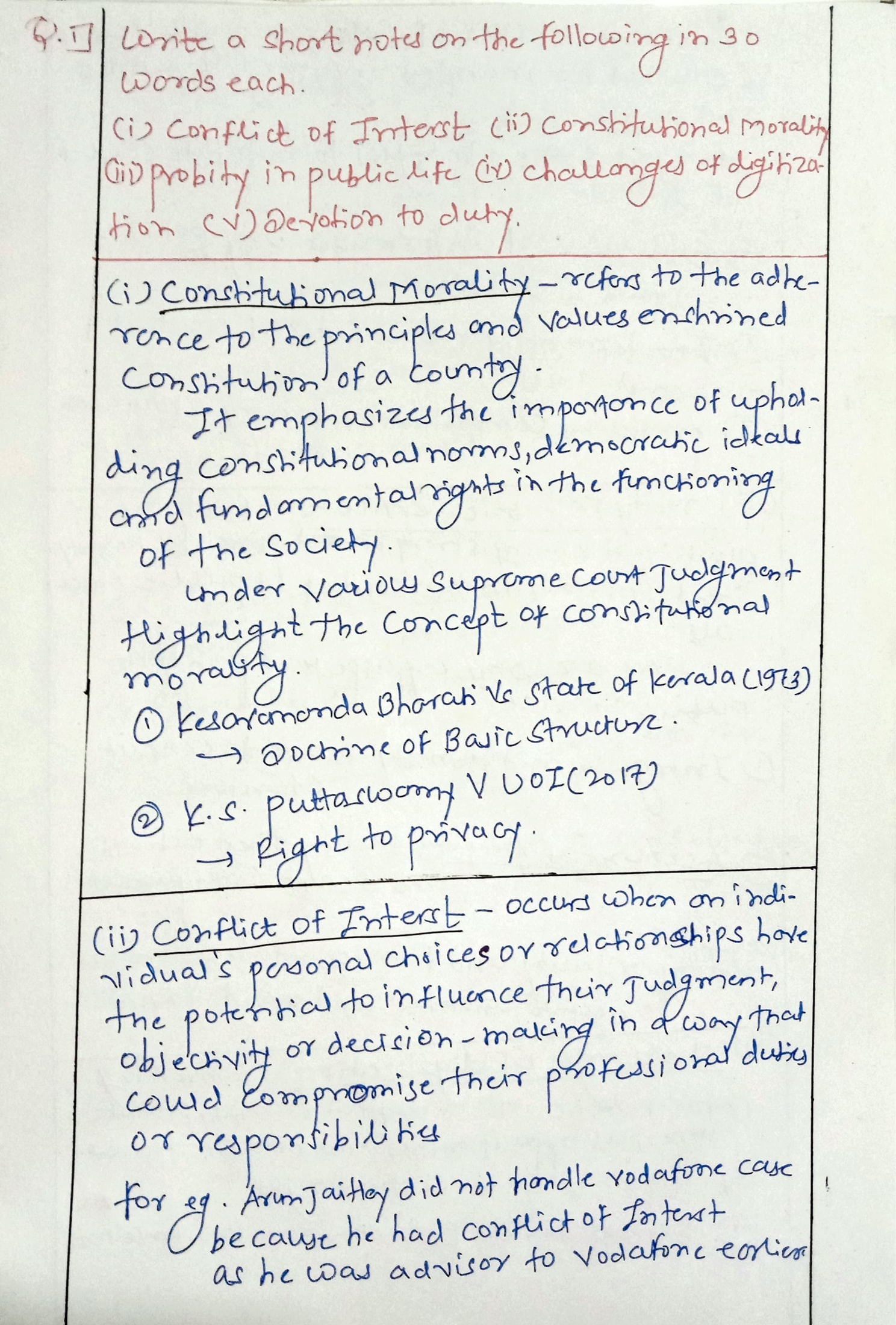 - Constitutional morality: Constitutional morality is the adherence to the principles and values enshrined in the Constitution.