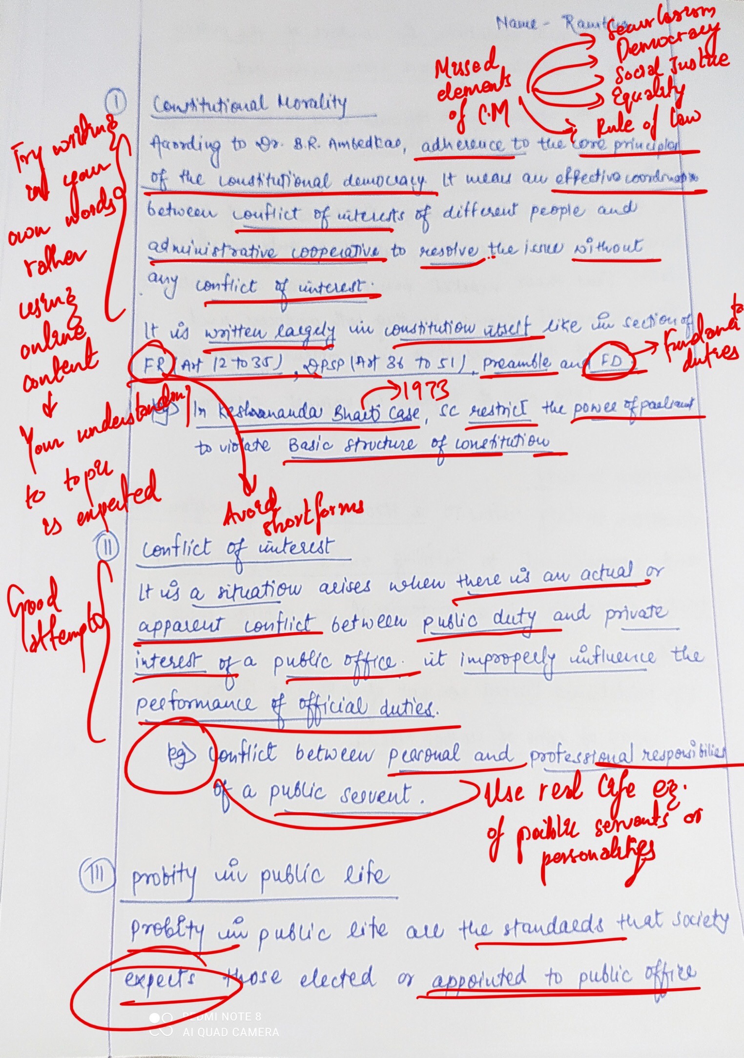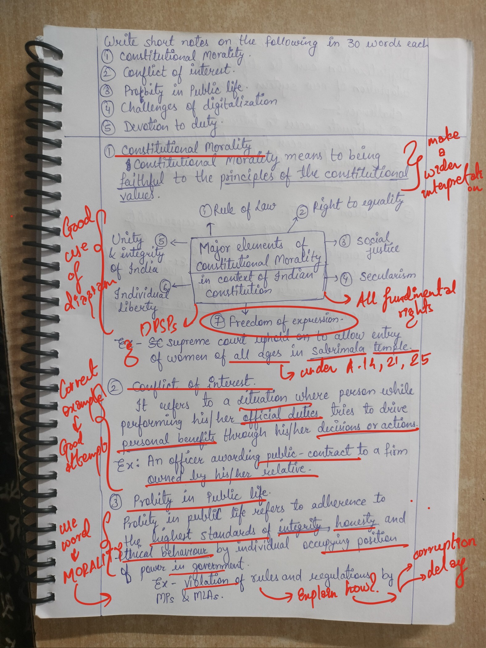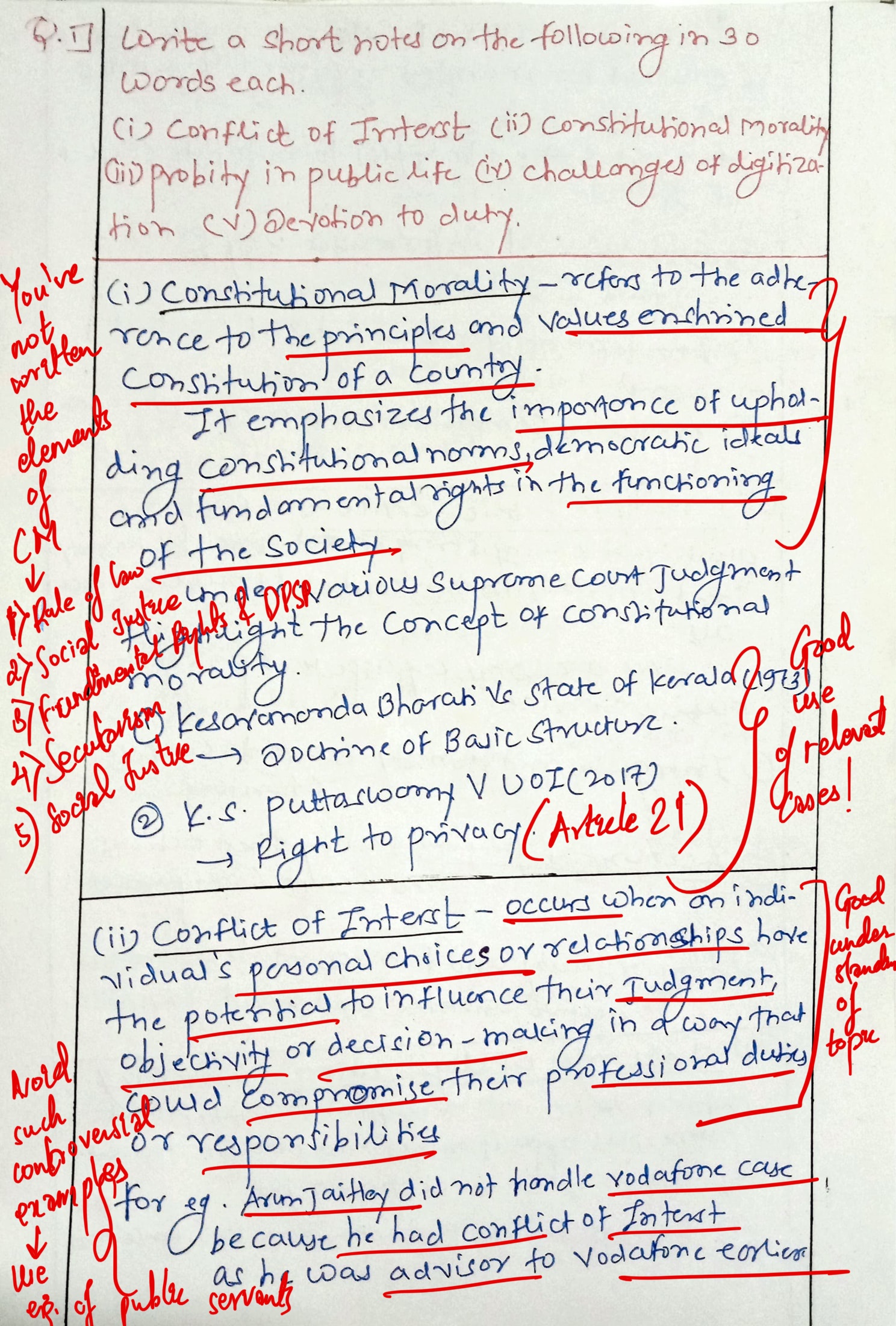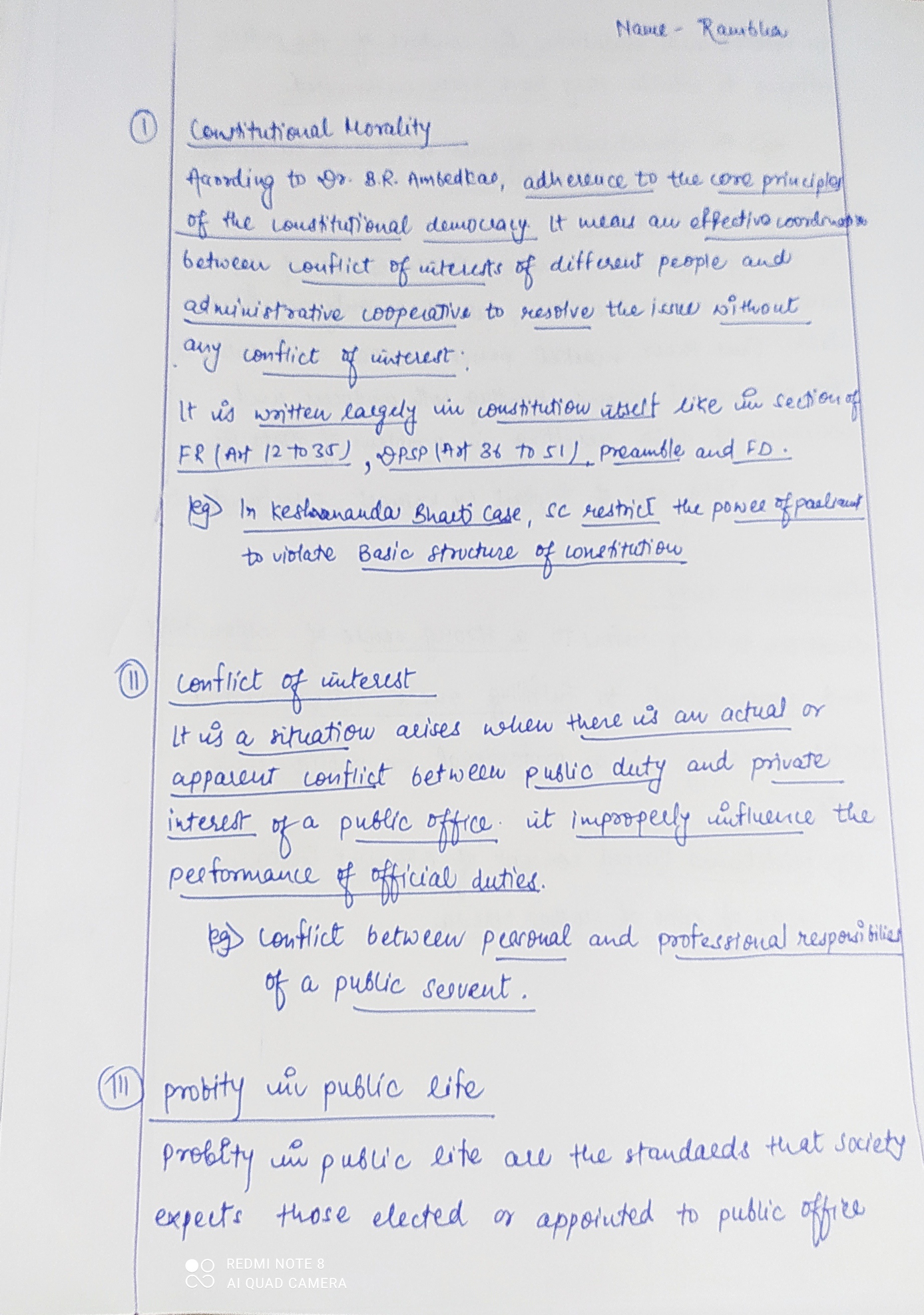 - Constitutional morality: Constitutional morality is the adherence to the principles and values enshrined in the Constitution.