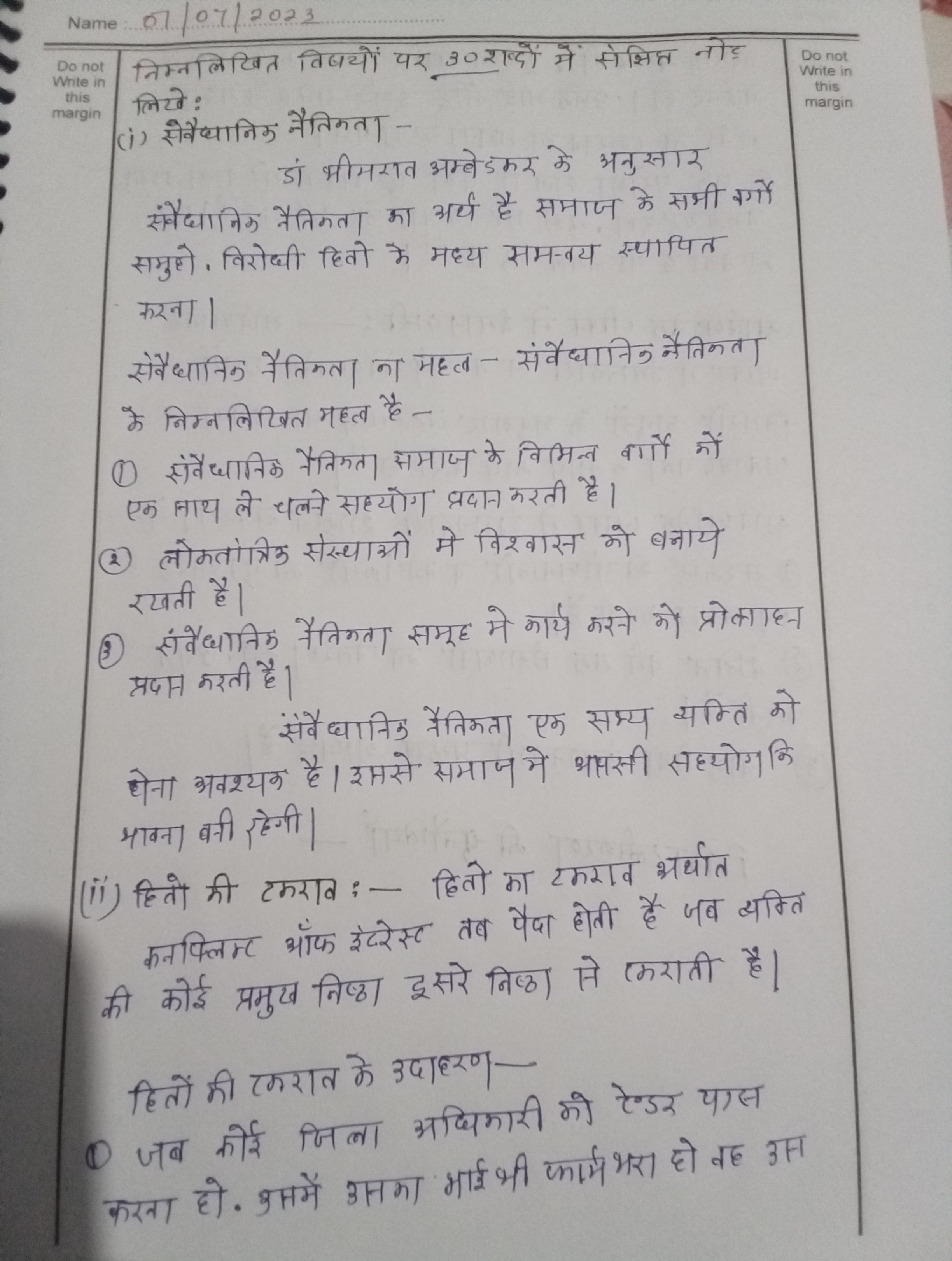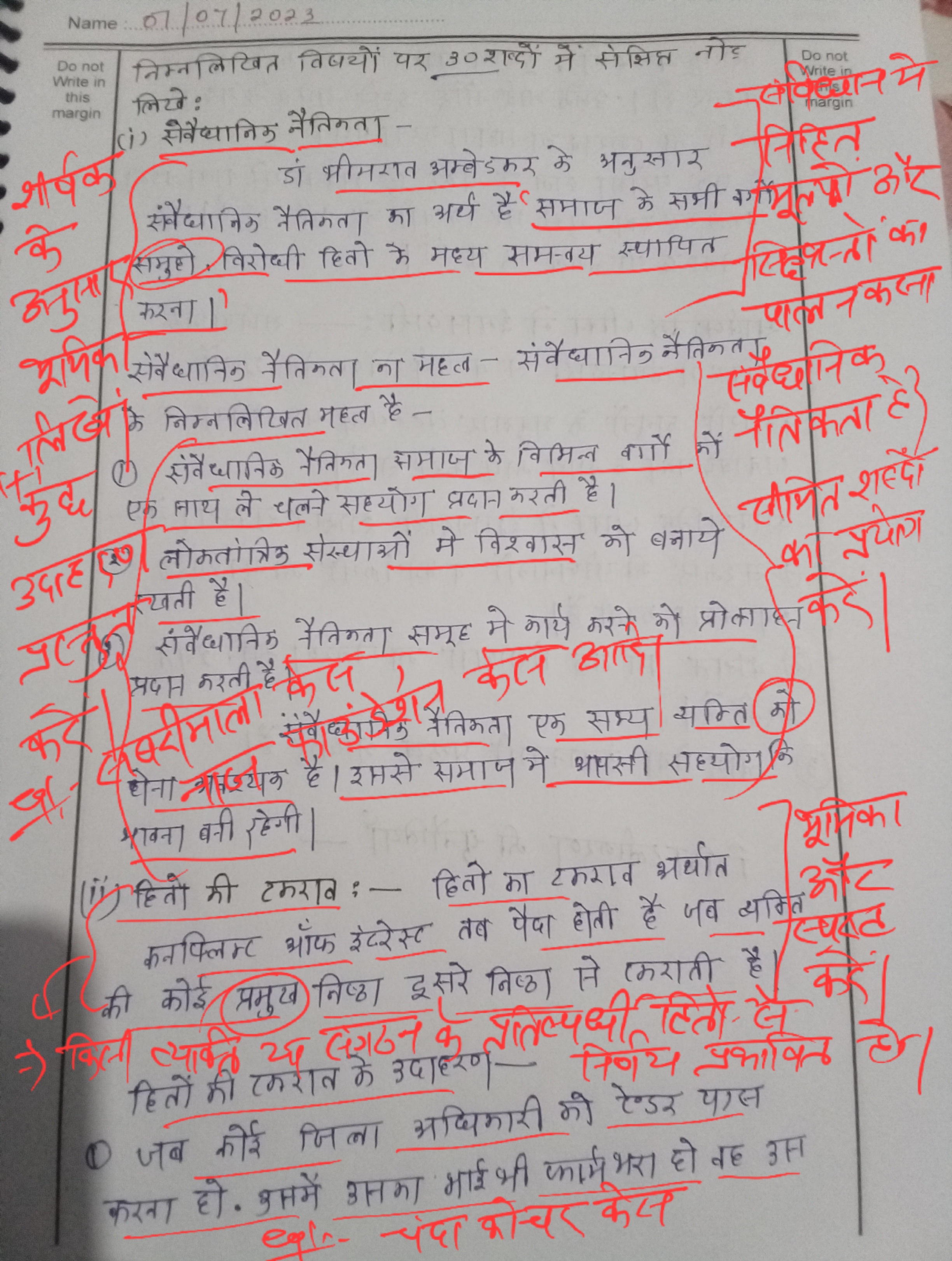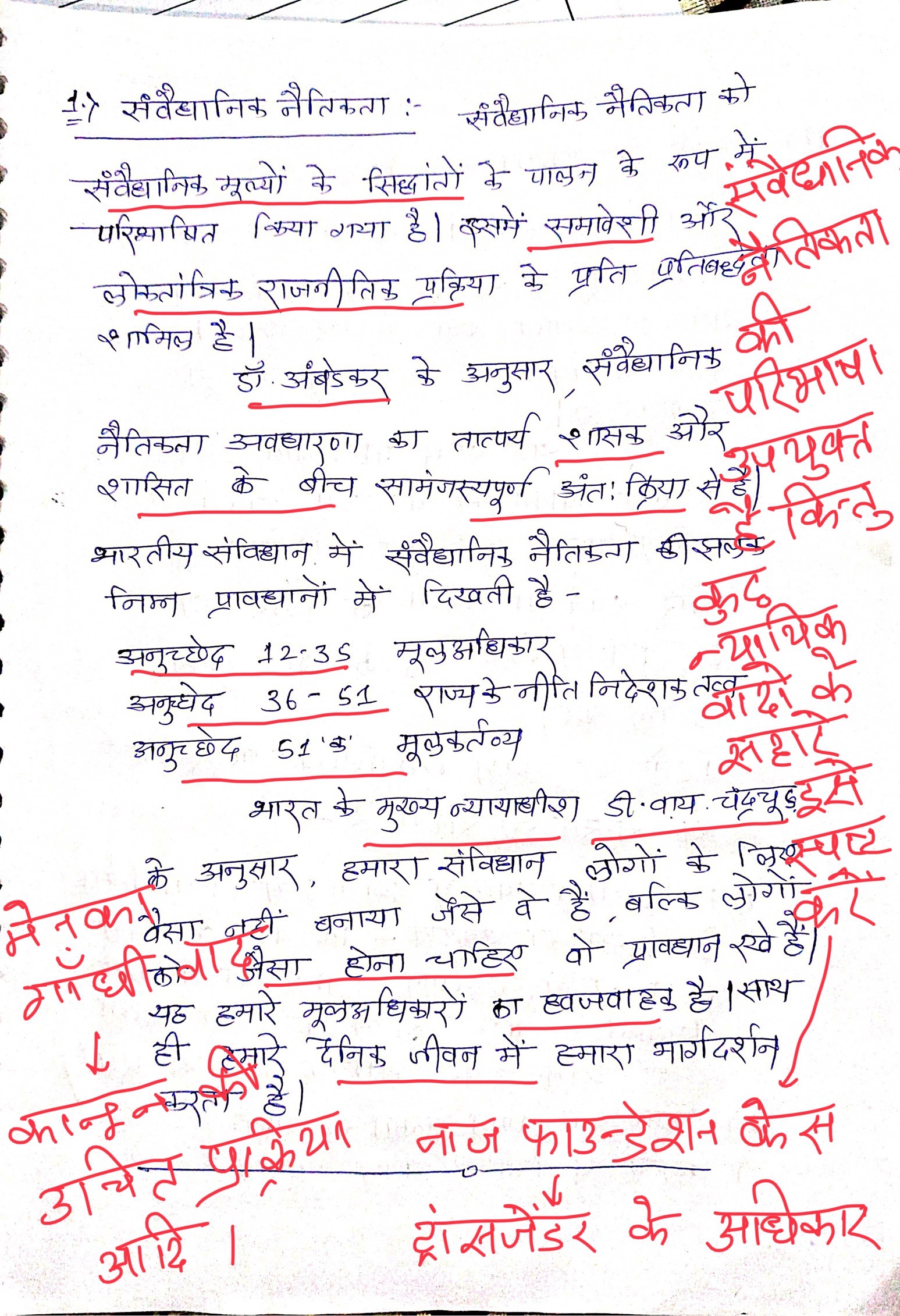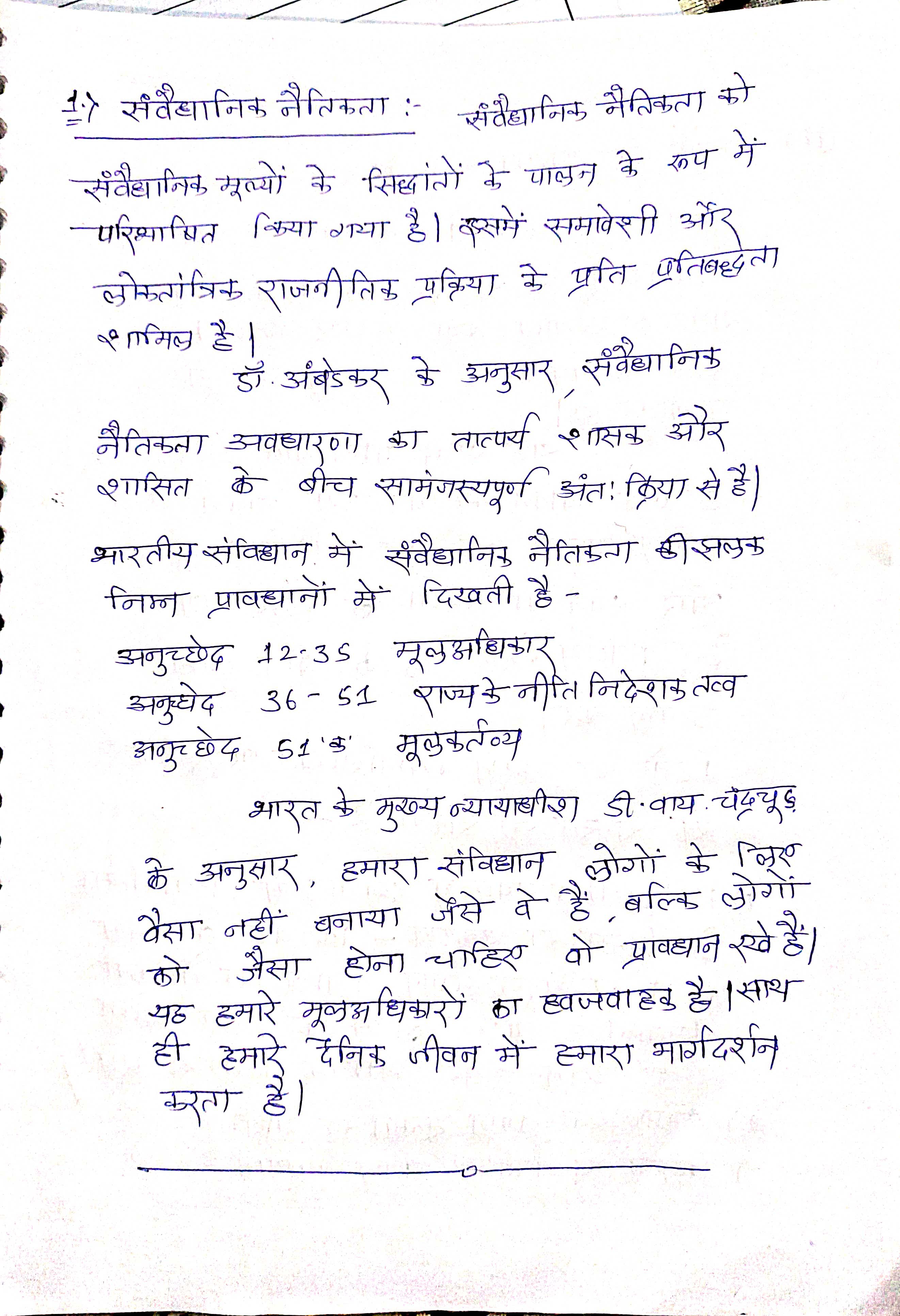 - संवैधानिक नैतिकता: संविधान में निहित सिद्धांतों और मूल्यों का पालन ही संवैधानिक नैतिकता है।