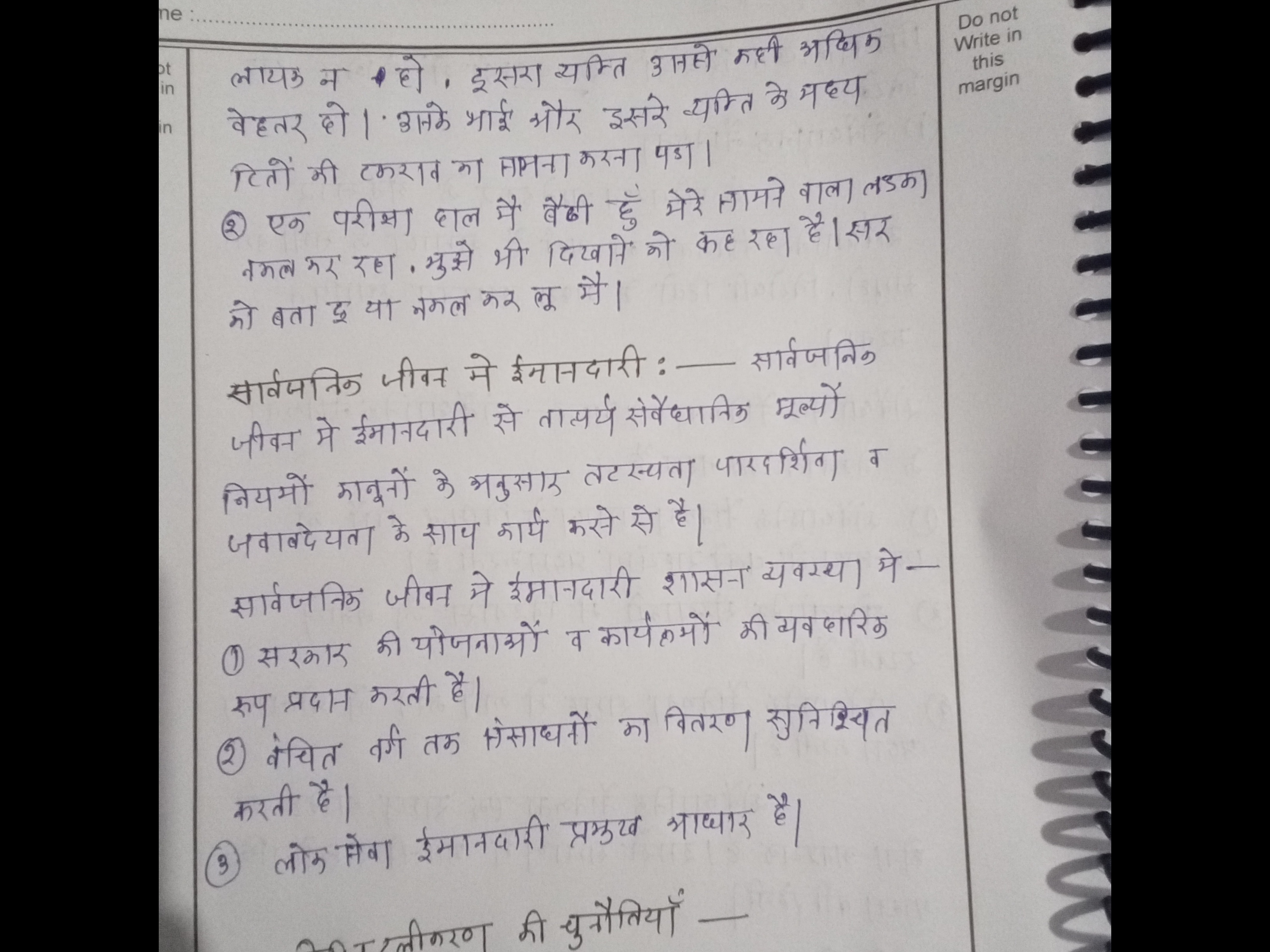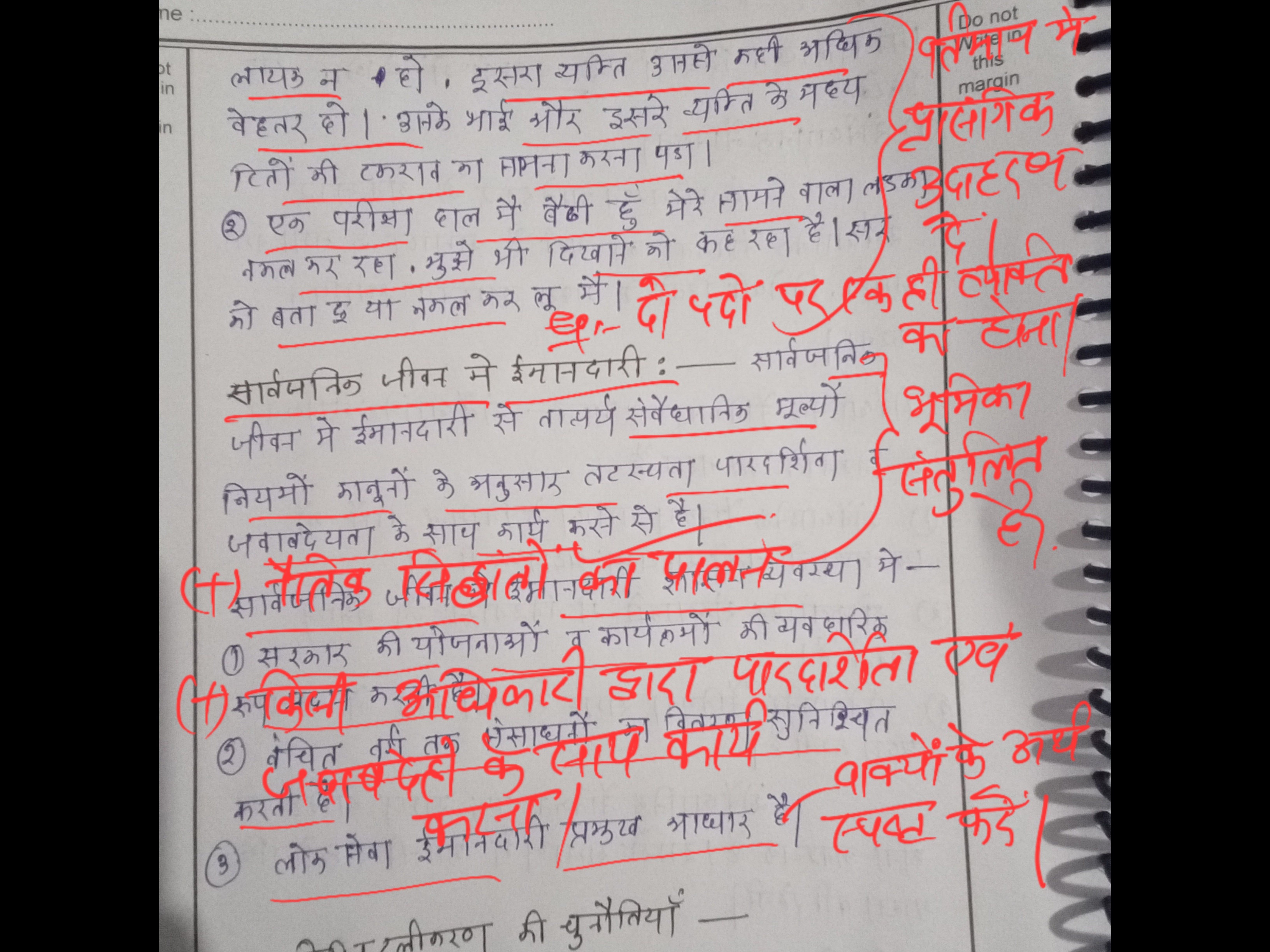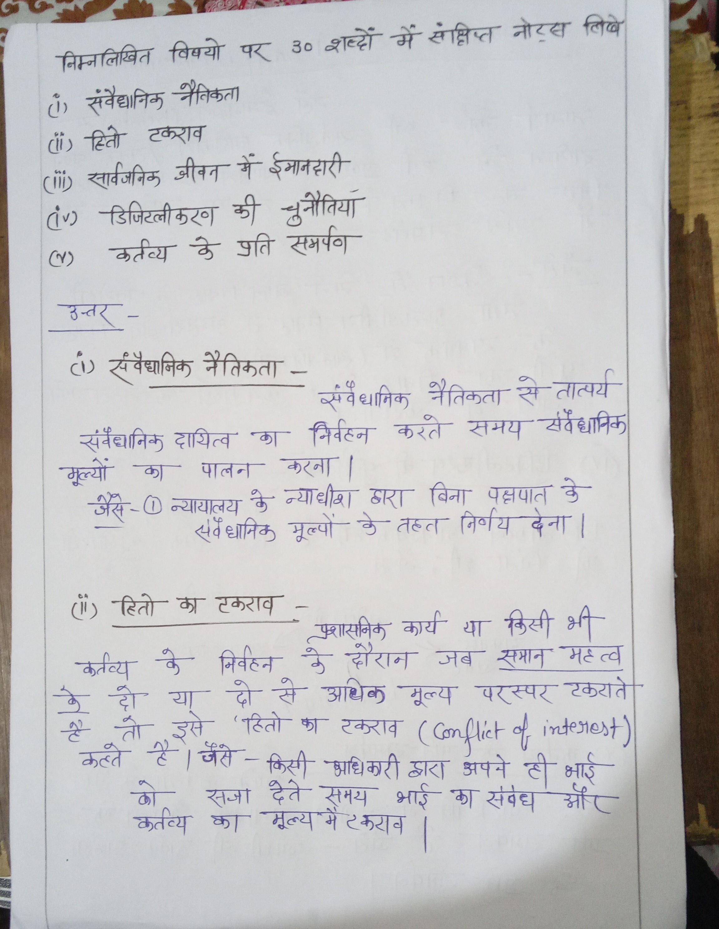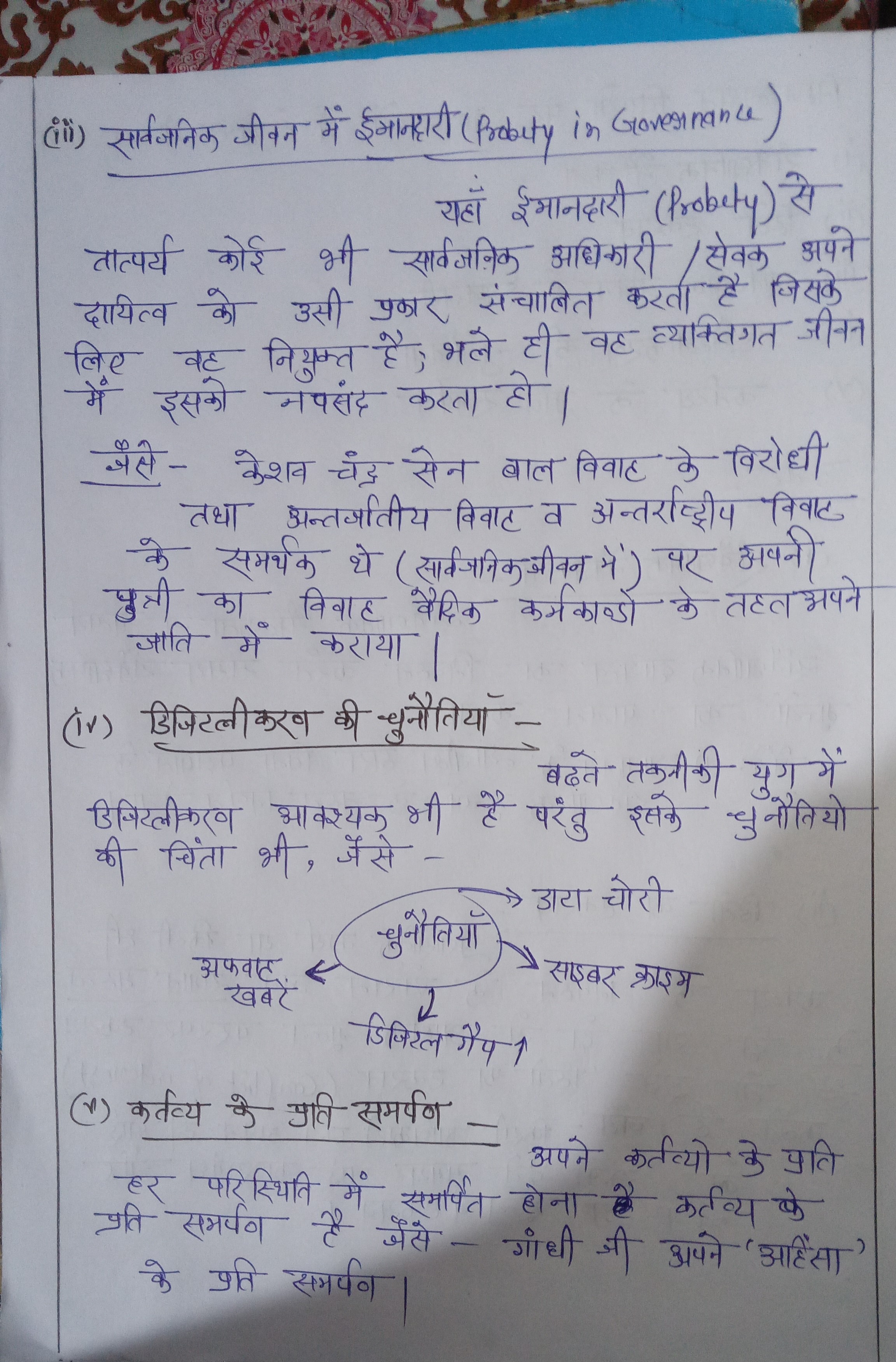 - सार्वजनिक जीवन में ईमानदारी: सार्वजनिक जीवन में ईमानदारी का तात्पर्य सार्वजनिक अधिकारियों द्वारा नैतिक और नैतिक सिद्धांतों के पालन से है।