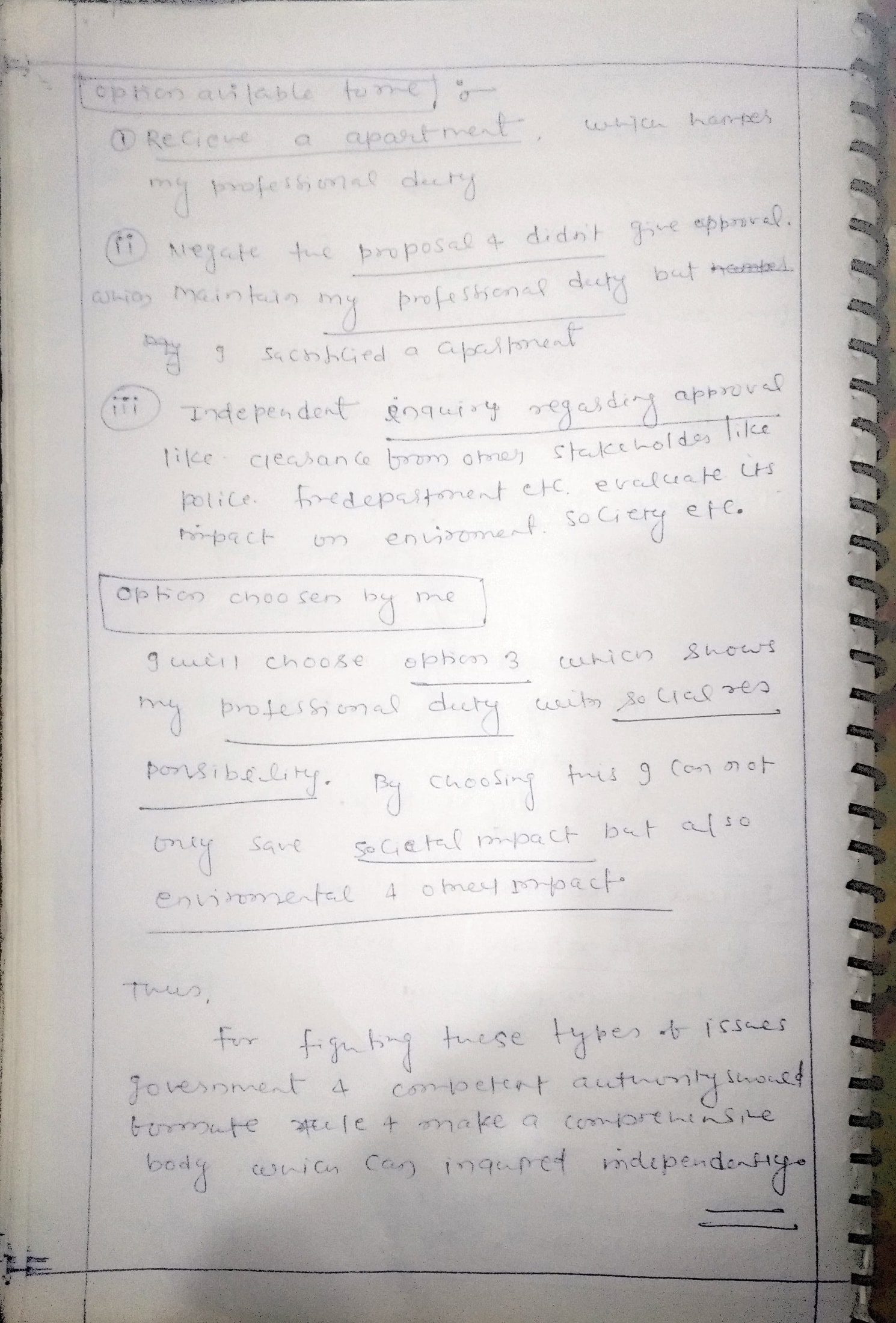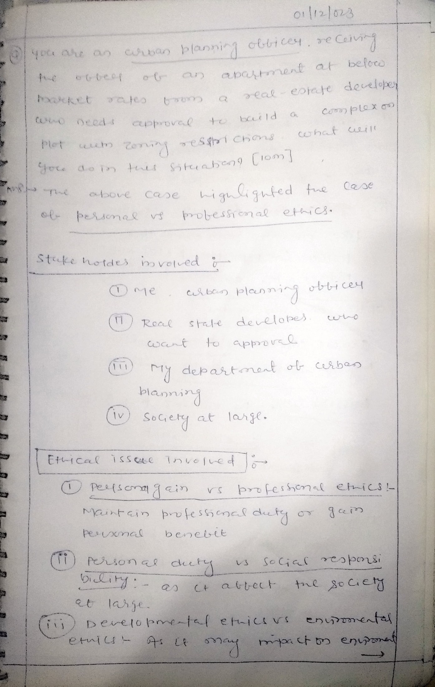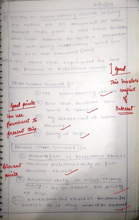 Q. You are an urban planning officer, receiving the offer of an apartment at below market rates from a real- estate developer who needs approval to build a complex on a plot with zoning restrictions. What will you do in this situation? (10 marks, 150 words)