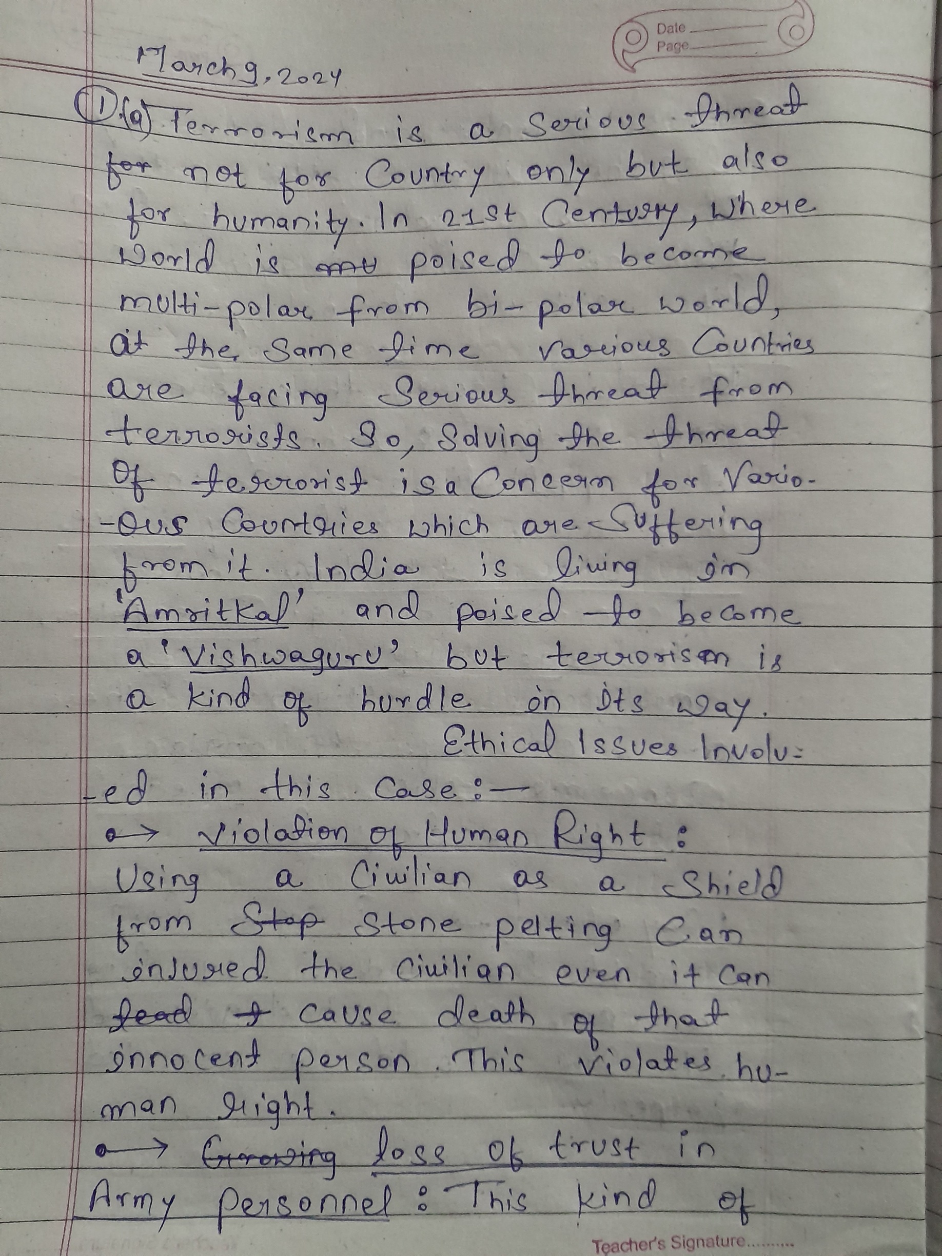 The case study presents a challenging situation involving an army Major who used a civilian as a human shield during a counter-terrorist operation in a state facing internal security problems. The major’s action, although successful in apprehending terrorists, has raised ethical concerns and sparked public criticism.
